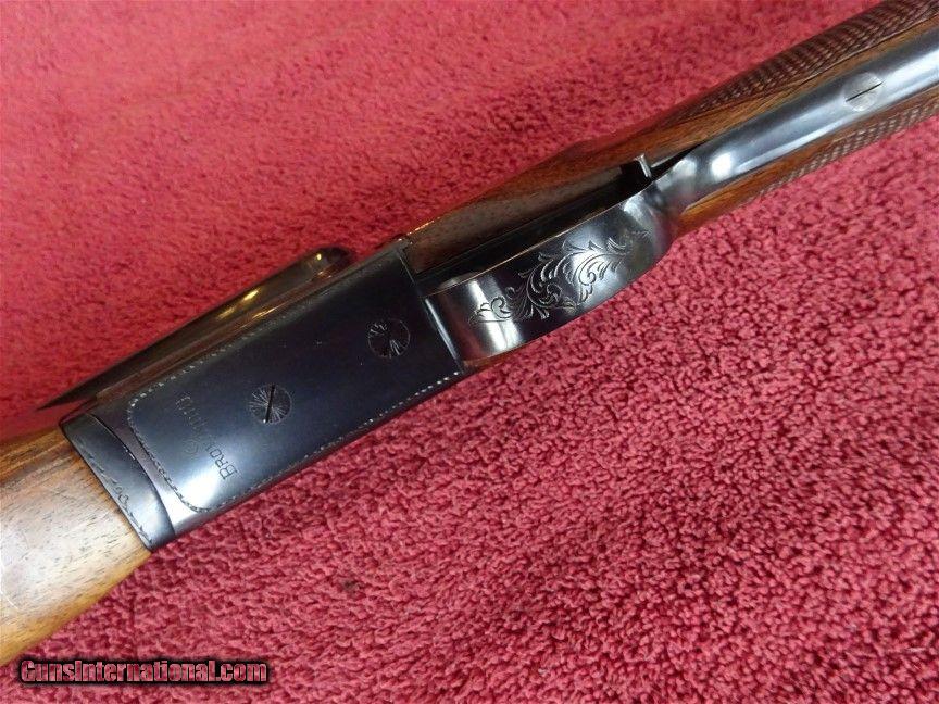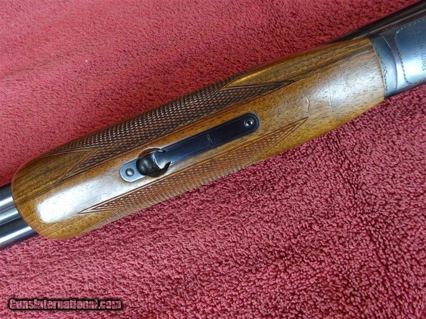 Description: BROWNING BSS SPORTER, 20 GAUGE, 26" BARRELS, IC AND MODIFLED. 99% BRIGHT BLUE, MIRROR BORES, AUTOMATIC EJECTORS. SINGLE SELECTIVE TRIGGER, SCROLL ENGRAVED FRAME, TOP LEVER AND TRIGGERGUARD WITH NO BLUE WEAR. STRAIGHT GRIP STOCK, BROWNING MARKED BUTTPLATE, BEAVERTAIL FOREARM, OIL WOOD FINISH WITH ONLY MINOR HANDLING MARKS AND PERFECT CHECKERING. 1 1/2" X 2 1/2" X 14", 6 1/2 POUNDS, MADE IN 1980'S. CASED IN ORIGINAL BROWING TRUNK CASE, WITH KEY IN EXCELLENT CONDITION. $2250.00 + $50.00 Insured shipping to an FFL address. See all Pats listings We also have hundreds of pieces of ORIGINAL gun company advertising & memorabilia available for sale. We have no reprints or reproductions. Email for more information. SOLD |