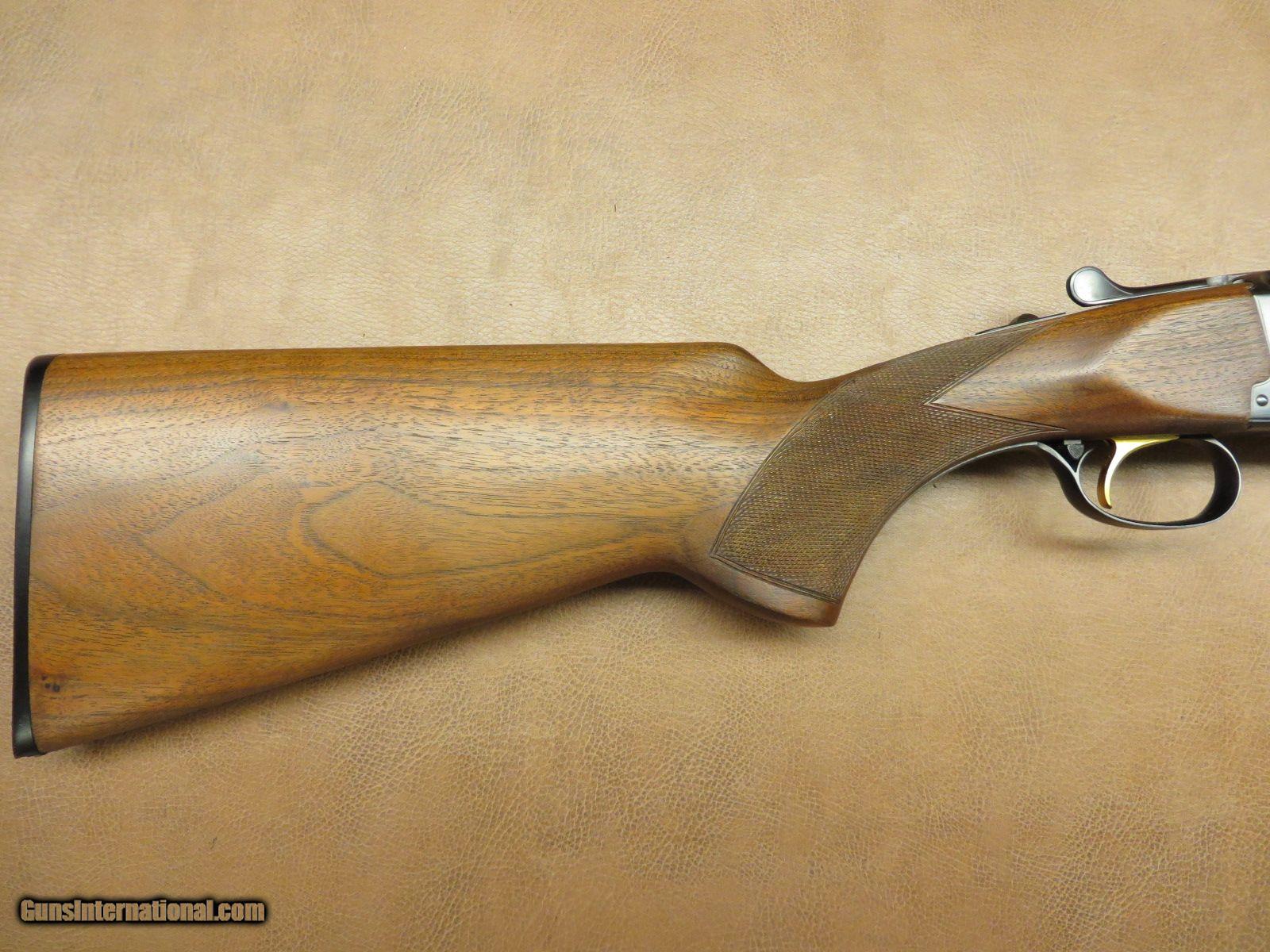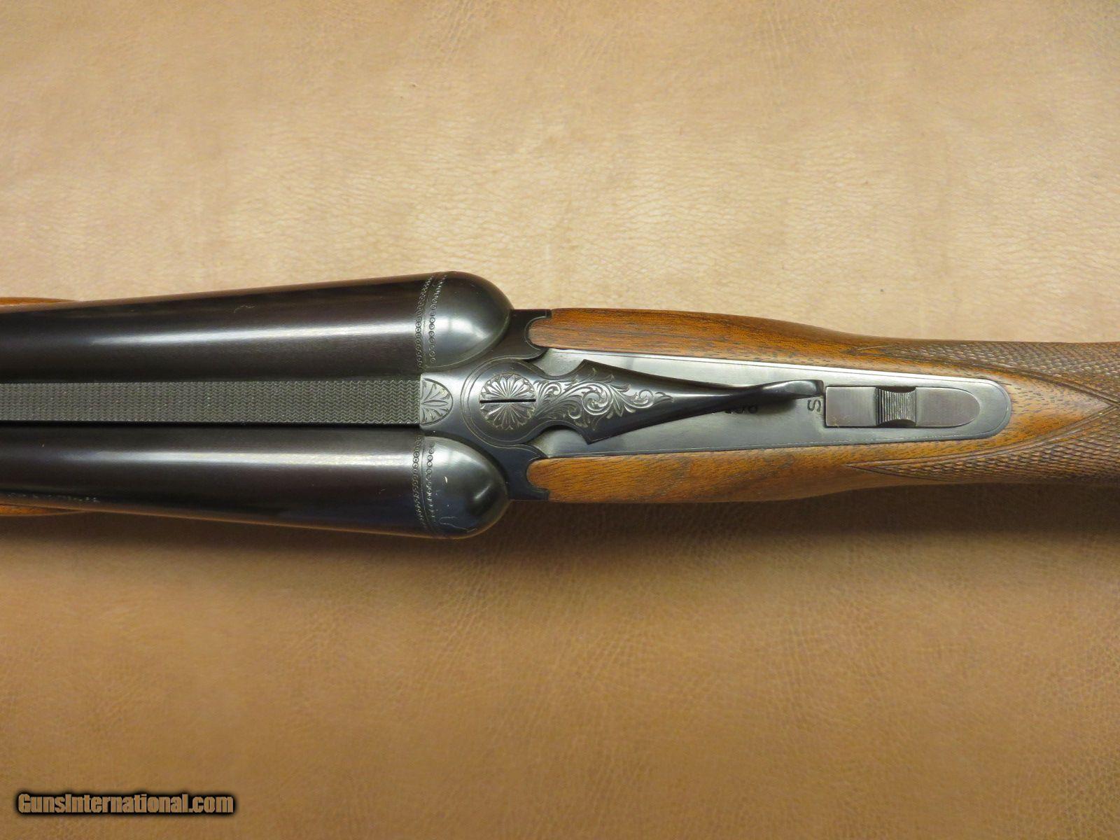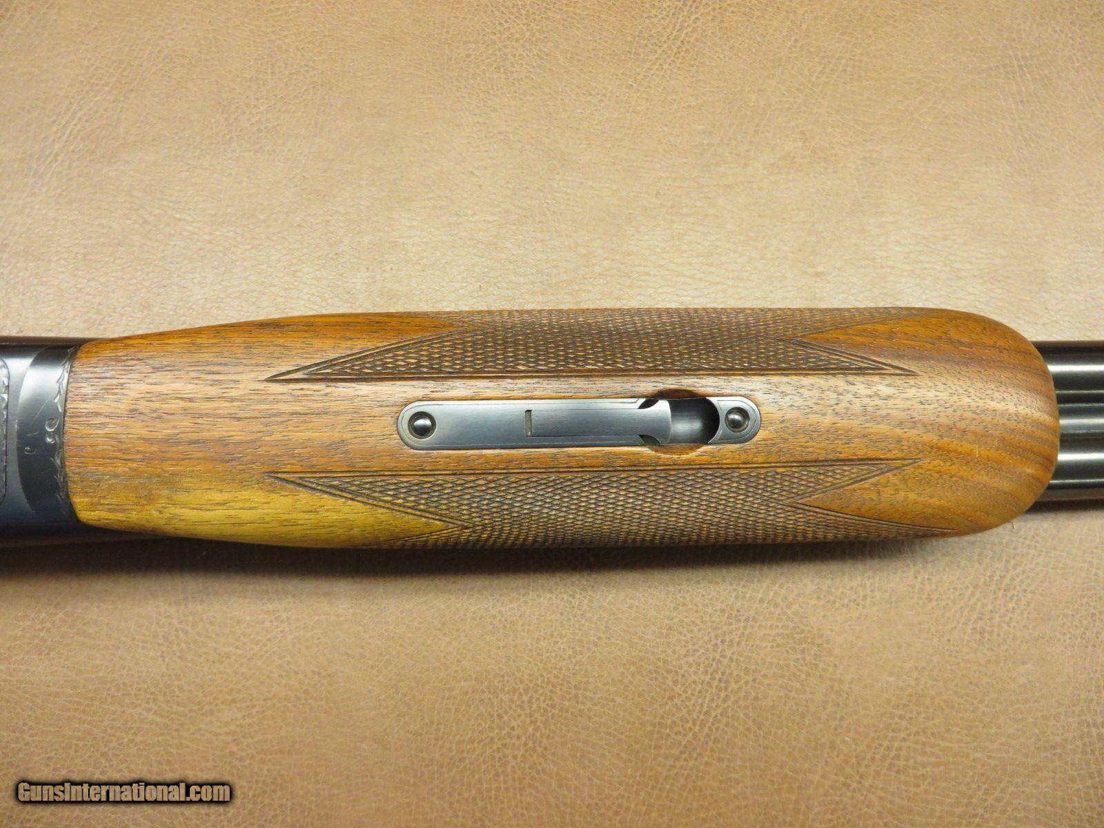 Description: 12 ga. for 2 3/4 and 3 inch shells has 26 inch barrels choked improved cylinder and modified. Engraved receiver with gold single selective trigger and automatic ejectors. Checkered walnut beavertail forend and stock with original butt plate have had an oil finish professionally applied. Action is tight as new and blue and wood are both 99%. There is a 1/4 inch chip at toe of butt plate with no damage to the wood. SOLD |