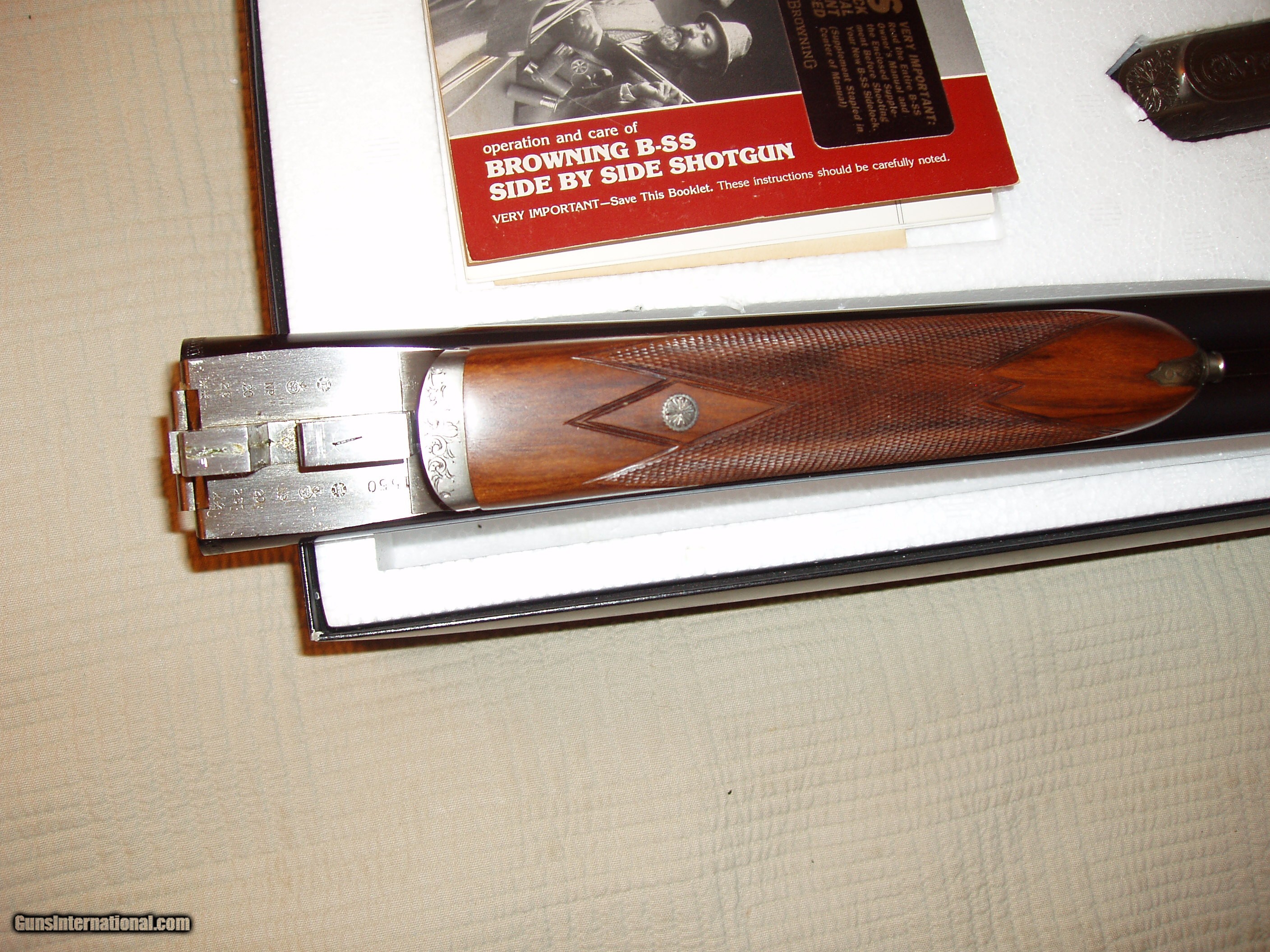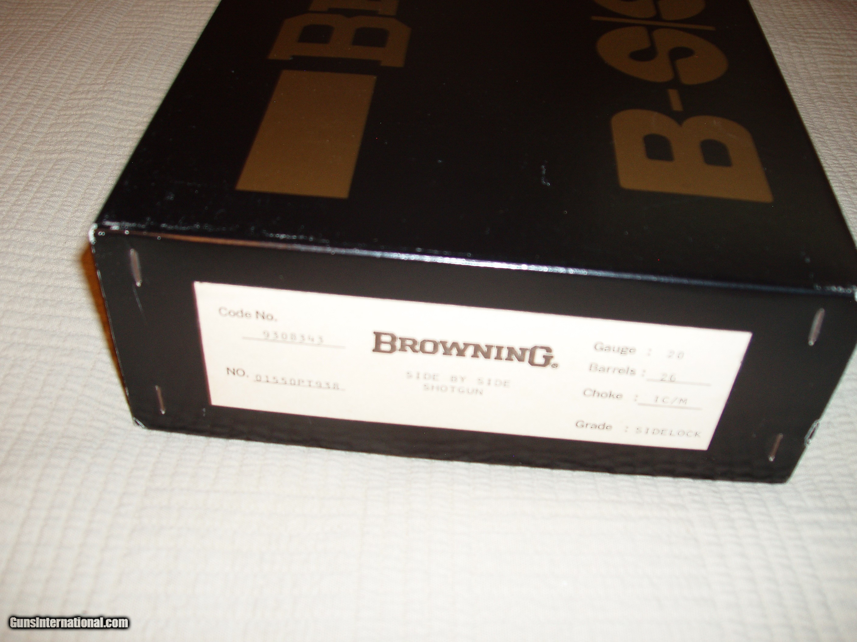Description: Sidelock 20 ga Browning, 26" , ic/mod barrels, 2 3/4" chambers, New in Box with Book, manufactured in 1986 only 451 20 ga sidelocks made and only 60 were 26" barrels $6,200.00 with book and box. Call Ron 585-671-8810 Eastern Standard Time SOLD |