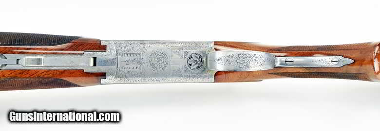 Browning Superposed P1 Gold 12 Gauge shotgun. Rare presentation model P1 H with gold, signed by master engraver I. Baerten. Made in 1977, the first year of the presentation models. Only a few of the P1 first year guns were engraver signed, before going to etched designs later. This is a 26” skeet gun with 14 3/8” LOP over a Browning pad. Excellent condition with a few marks in the stock with Browning case. From the Rod Fuller collection.