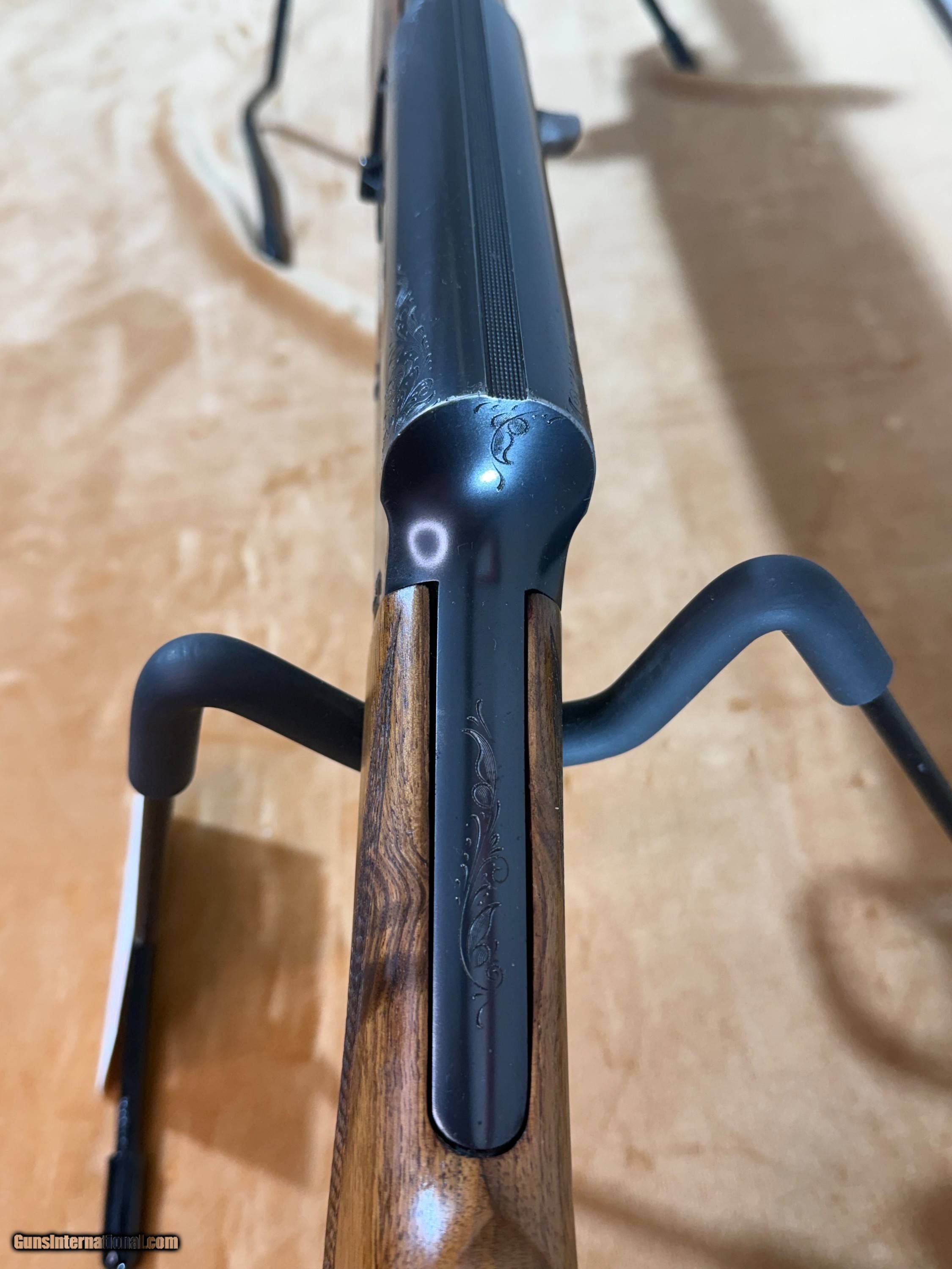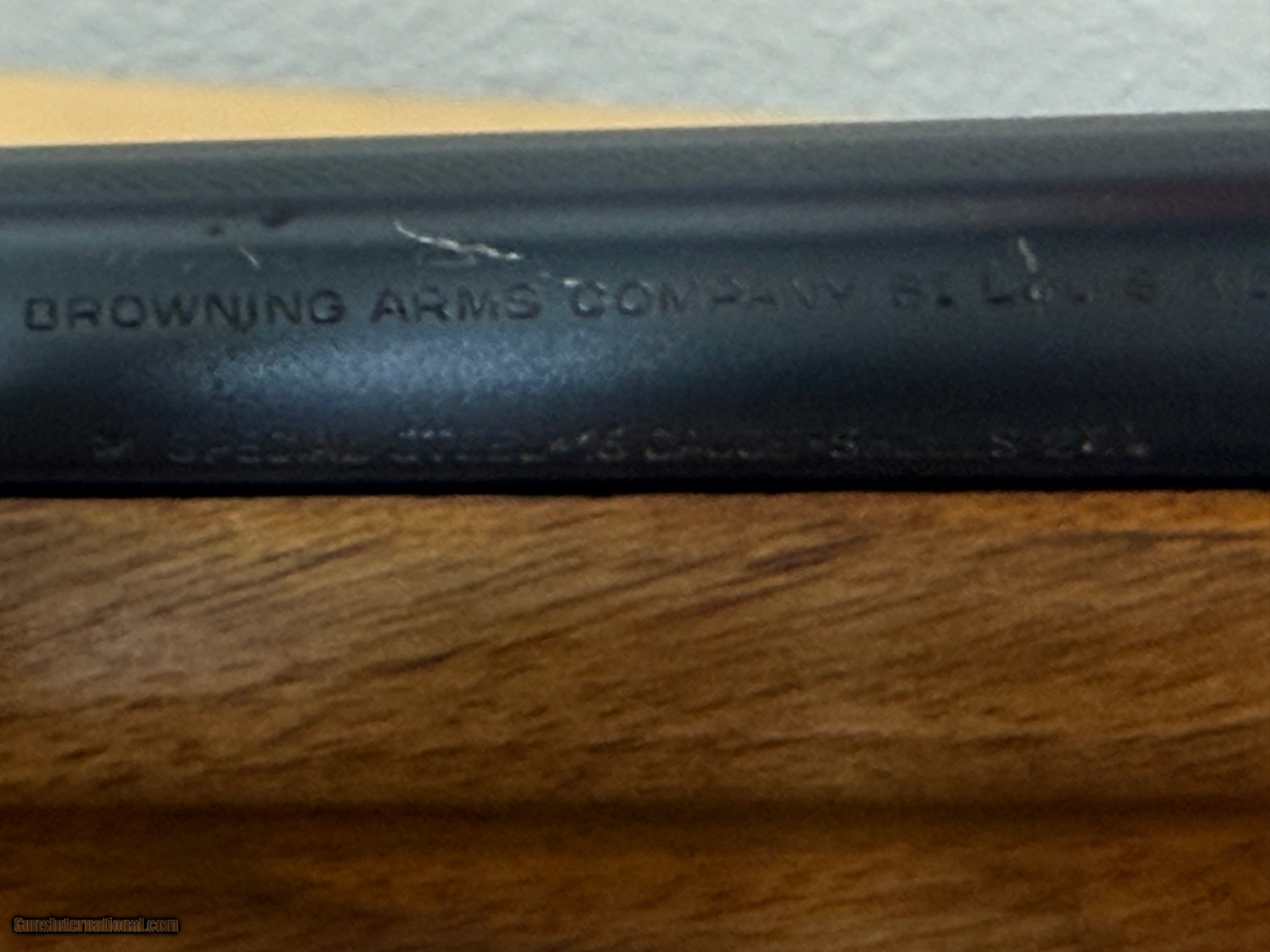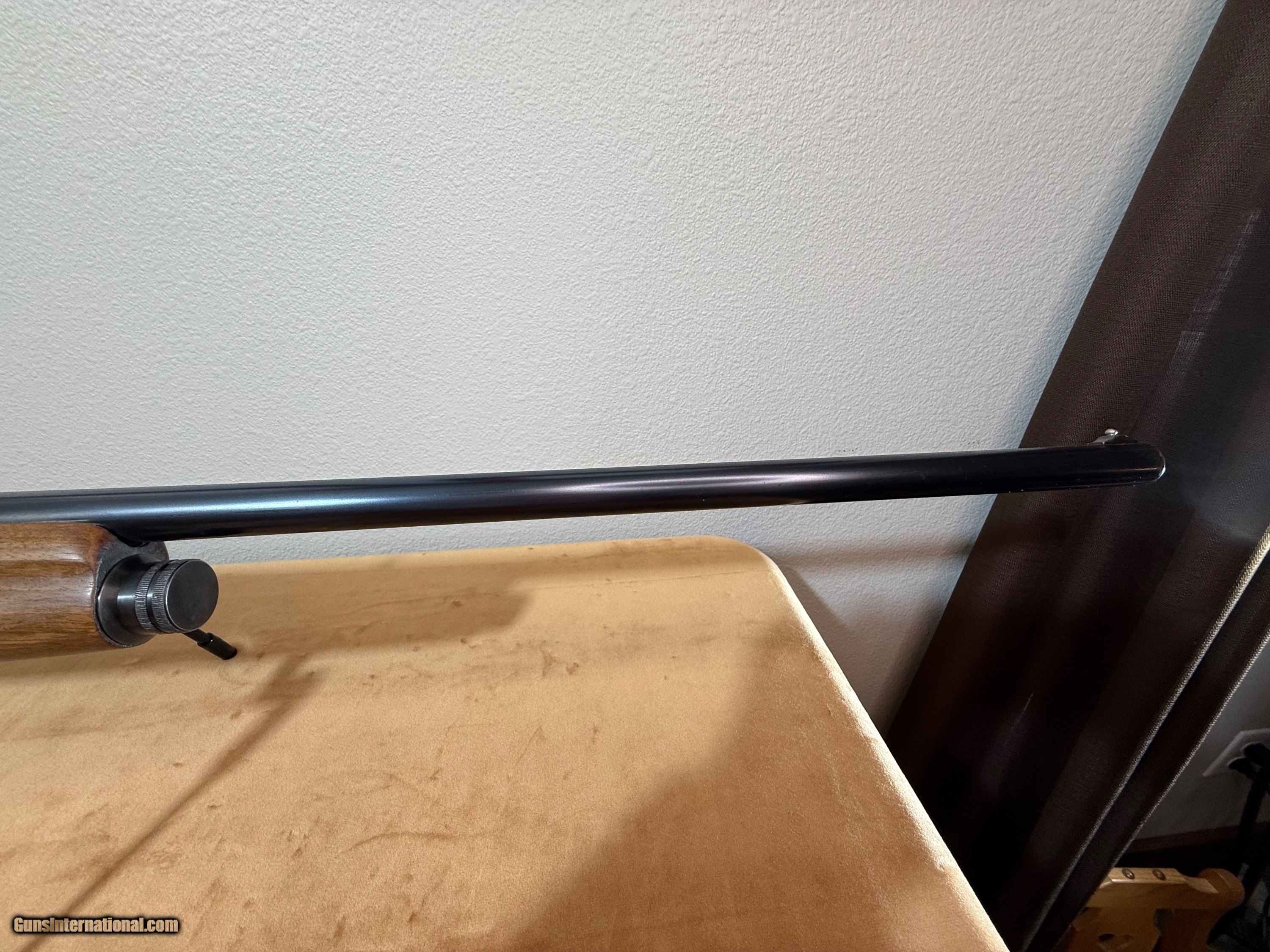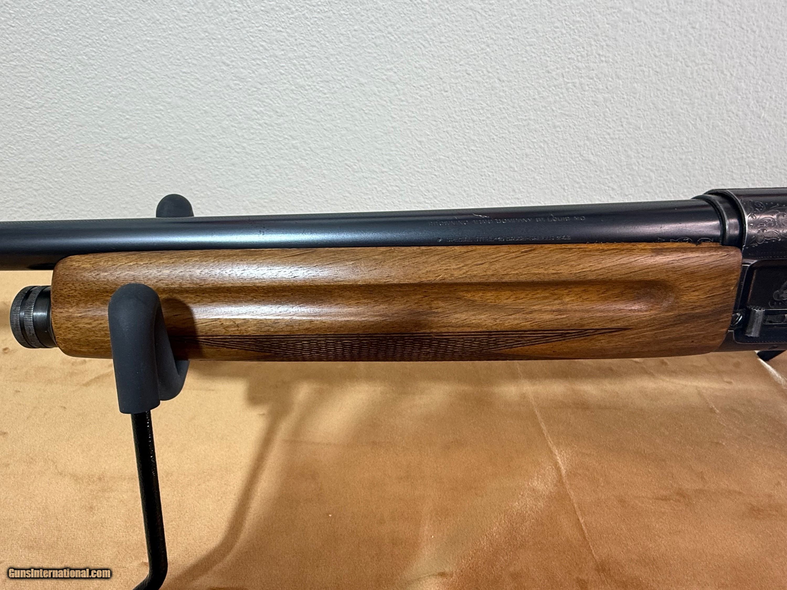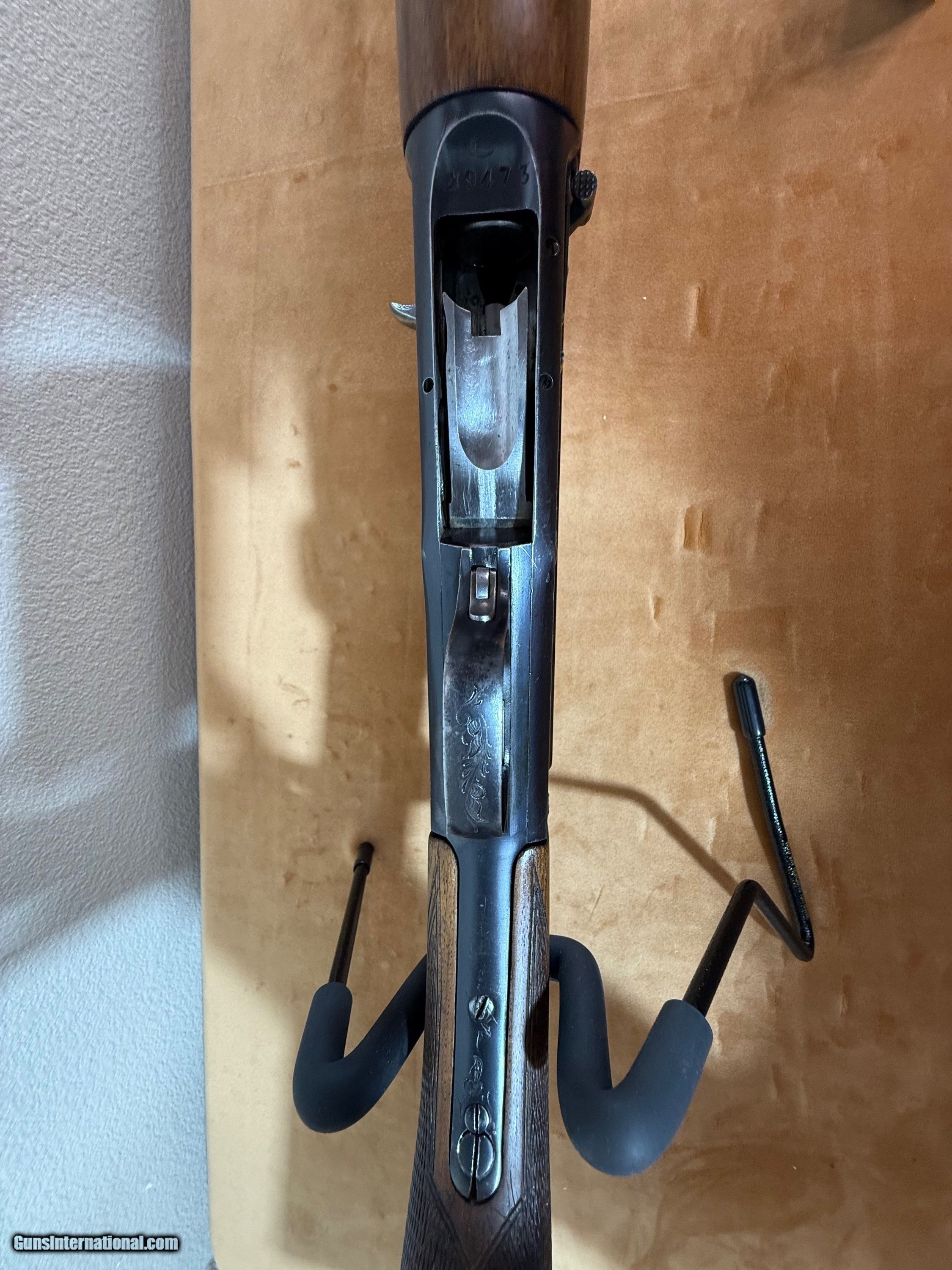 Description: This FN Belgian Sweet Sixteen Auto 5 is special in that 1947 was the first year that the 16ga was chambered in 2 3/4" and it is also the last year that "Sweet Sixteen" is not enscribed on the left side of the receiver. This bueaty also represents the first year of the revered "X series" serial numbers that ran from 1947-1953. The wood on this Automatic 5 shows very nicely and the bluing is also very good. This is just a great, classic shotgun from a historic time of FN Belgian production. Featuring both a gold trigger and a gold safety, this Browning A5 has a FULL choke 28" barrel and is ready for all your live and clay bird needs. s/n - X9473