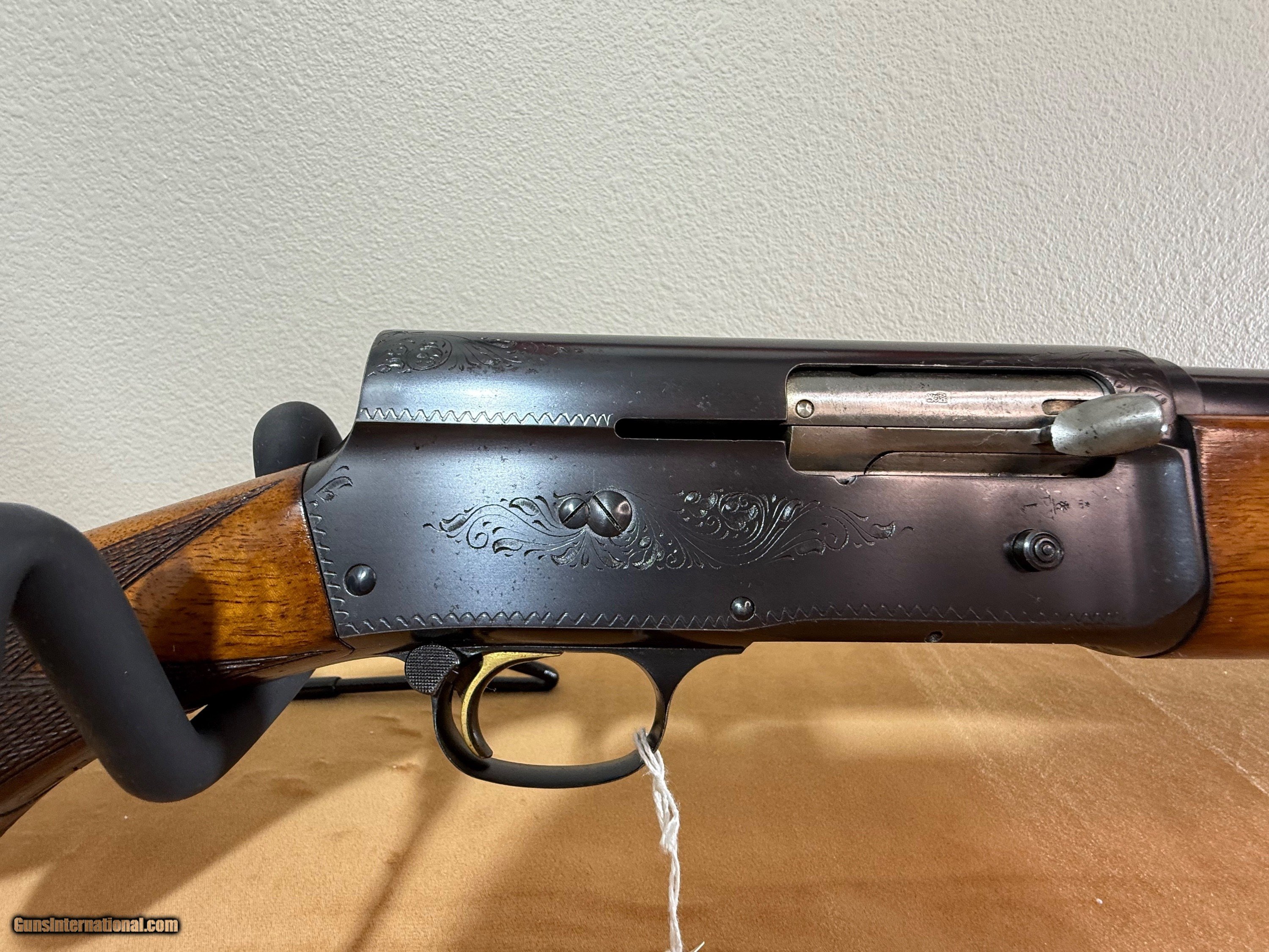 Description: This Belgian beauty Automatic 5 comes with a 28" FULL choke barrel, a 26" Improved Cylinder Barrel, a nice Airways case (with keys), and an Auto 5 owner's manual. 1958 was the first year that the "S" for the Sweet 16 Browning A5 was incorporated in the serial number. Beautiful wood on this classic piece of FN Belgium craftsmanship. s/n - 8S 23515