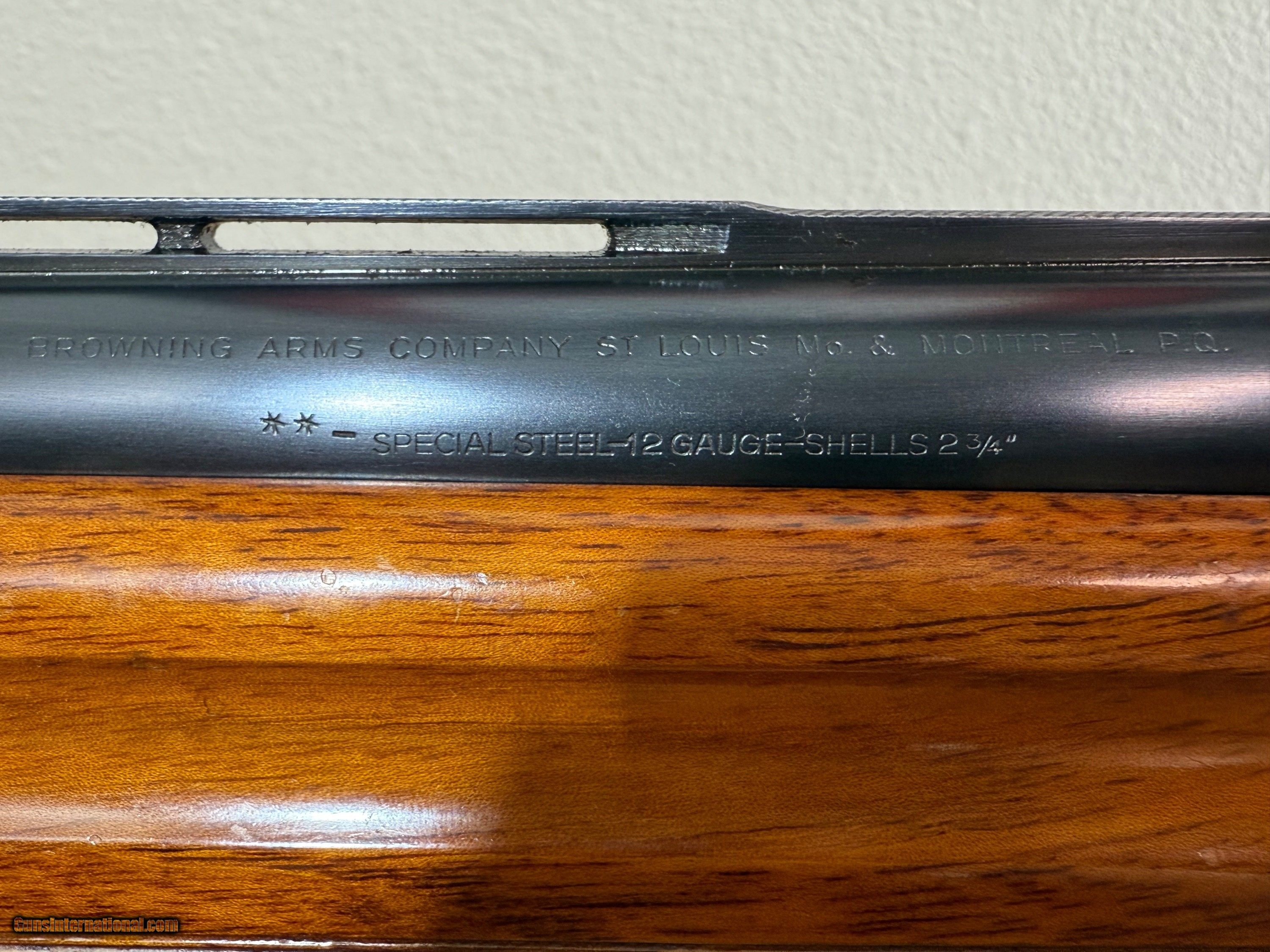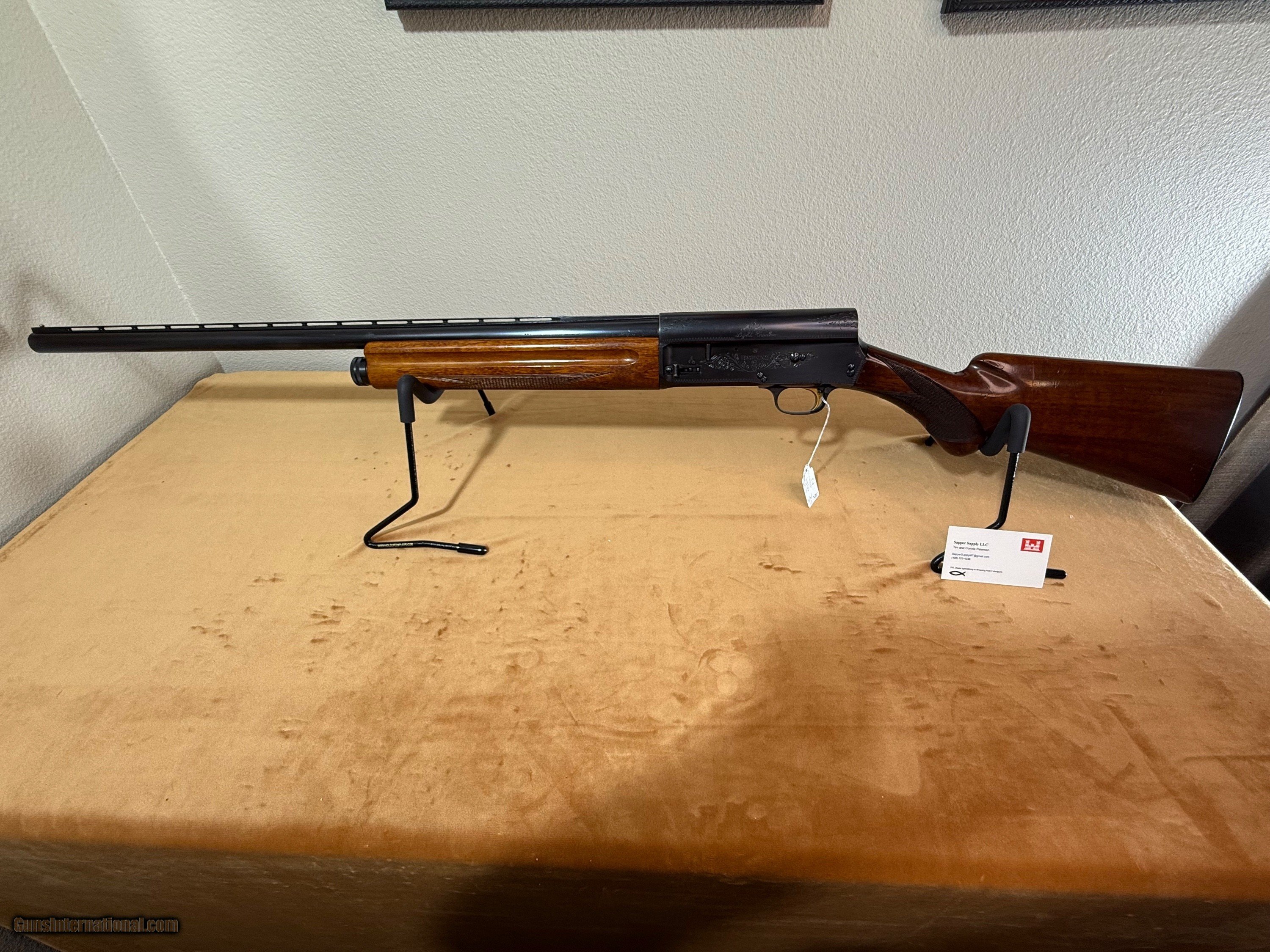 Description: This is just a good solid FN Belgian 12 gauge light 2 3/4” Browning Auto 5. Sports a 26” Improved Cylinder Ventilated rib barrel. This Automatic 5 has a few scars because it’s a bird slayer and that is what happens in the field. If you’re looking for a nice solid Browning A5 12 ga you have found it here. s/n- 1G 38817 -$795 - shipping/insurance- $65 - payment by GunTab, credit card (3.5%), check, money order - layaway available with 1/3 down - we are an FFL Shotgun Gauge: 12 Gauge Price: $795.00 Shipping: $65.00 Pay with