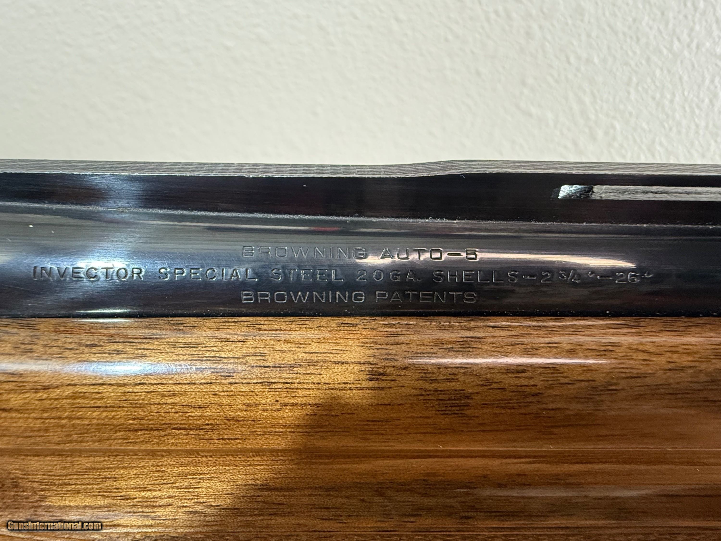 Description: Very nice Browning 2 3/4” Light 20 gauge Auto-5 with nice wood (no cracks/chips) and nice bluing. 26” ventilated rib barrel comes with 2 Invector chokes - Improved Cylinder installed, FULL, and a choke wrench. Just a really nice Auto 5 that is ready for your hunting adventures. s/n - 25501 PP231 - $1,995 -$85 shipping/insurance -payment via GunTab, credit card (3.5%), check, money order - layaway offered with 1/3 down - we are an FFL Shotgun Gauge: 20 Gauge Price: $1,995.00 Shipping: $85.00 Pay with