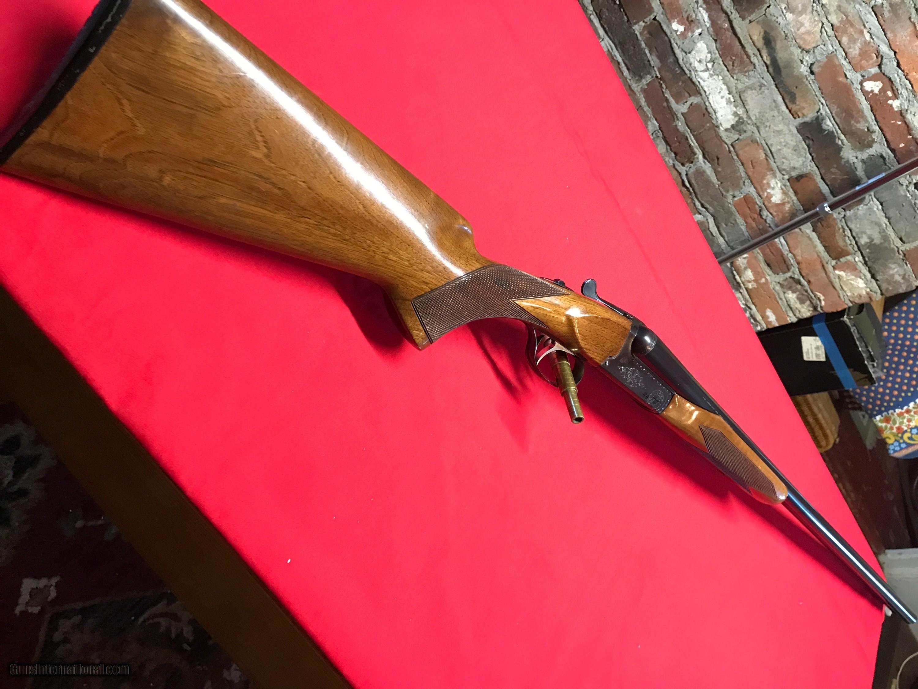 Description: Scarce 28" barrels are choked mod and full. 3" chambers, excellent bores...Single non selective trigger with automatic ejectors...Drops are 1 1/2 by 2 1/2 "...Weighs 7 pounds...Excellent overall condition...Made in 1974...Ship to ffl or c&r... SOLD Curio/Relic: Yes |
