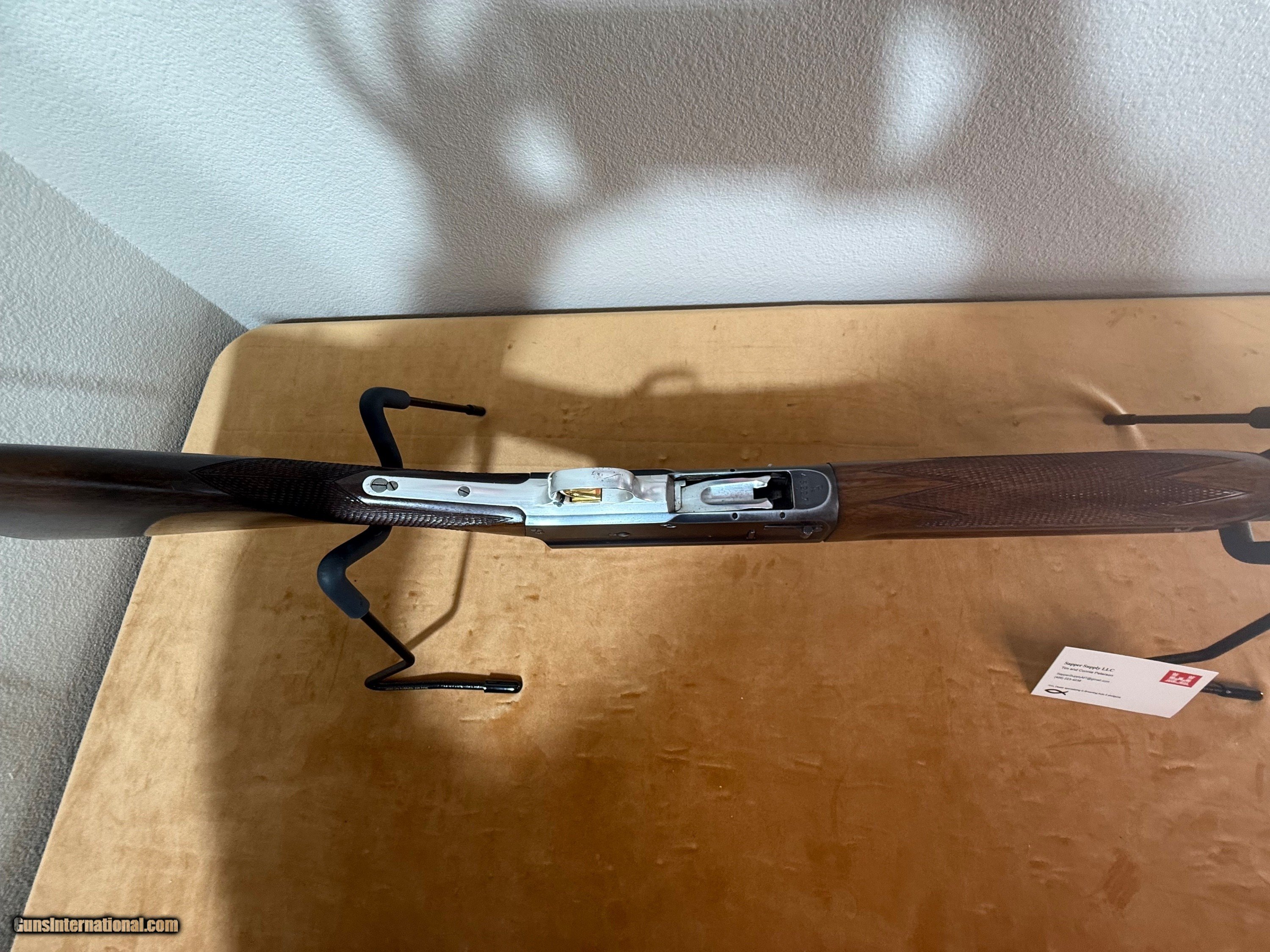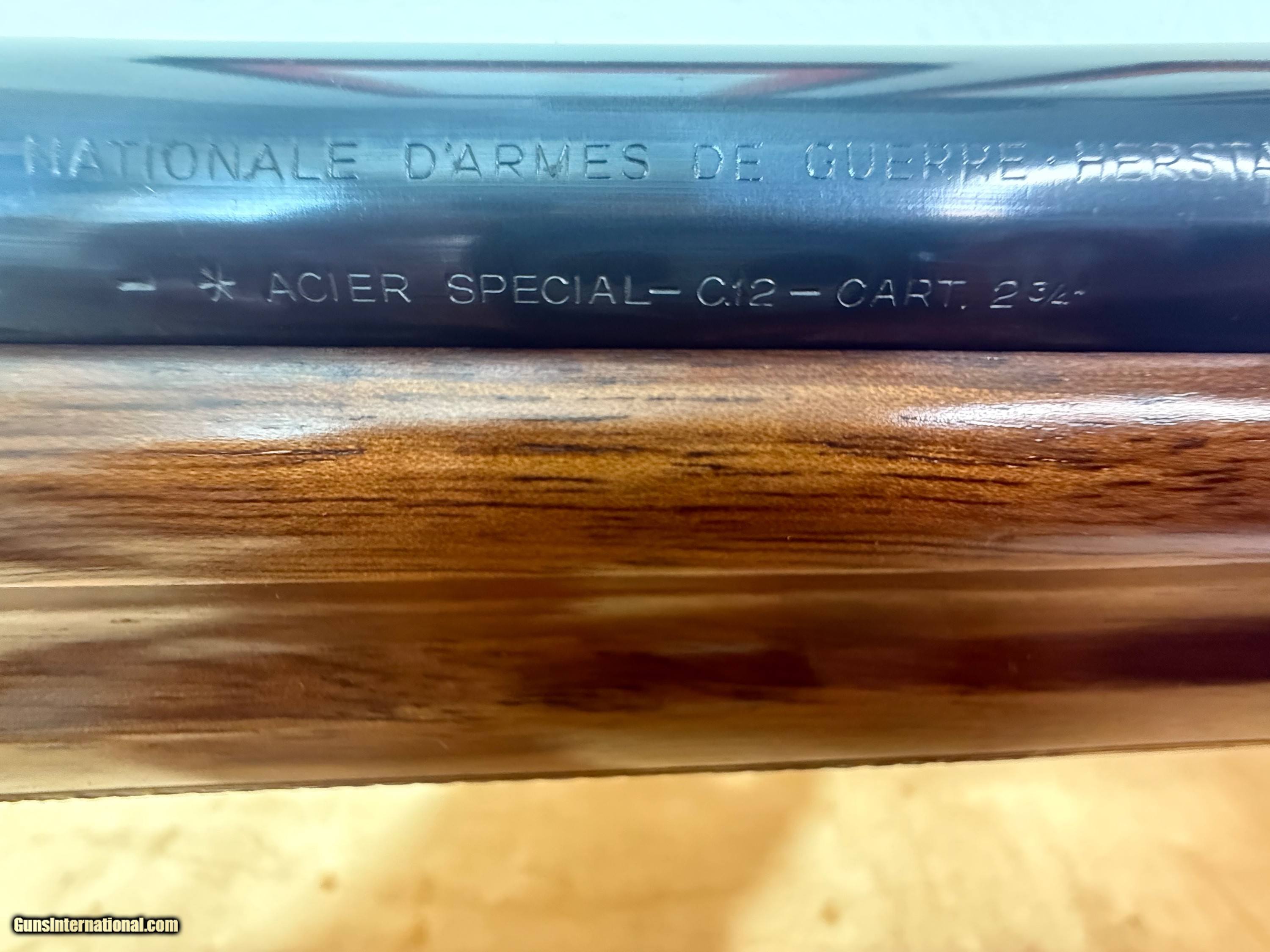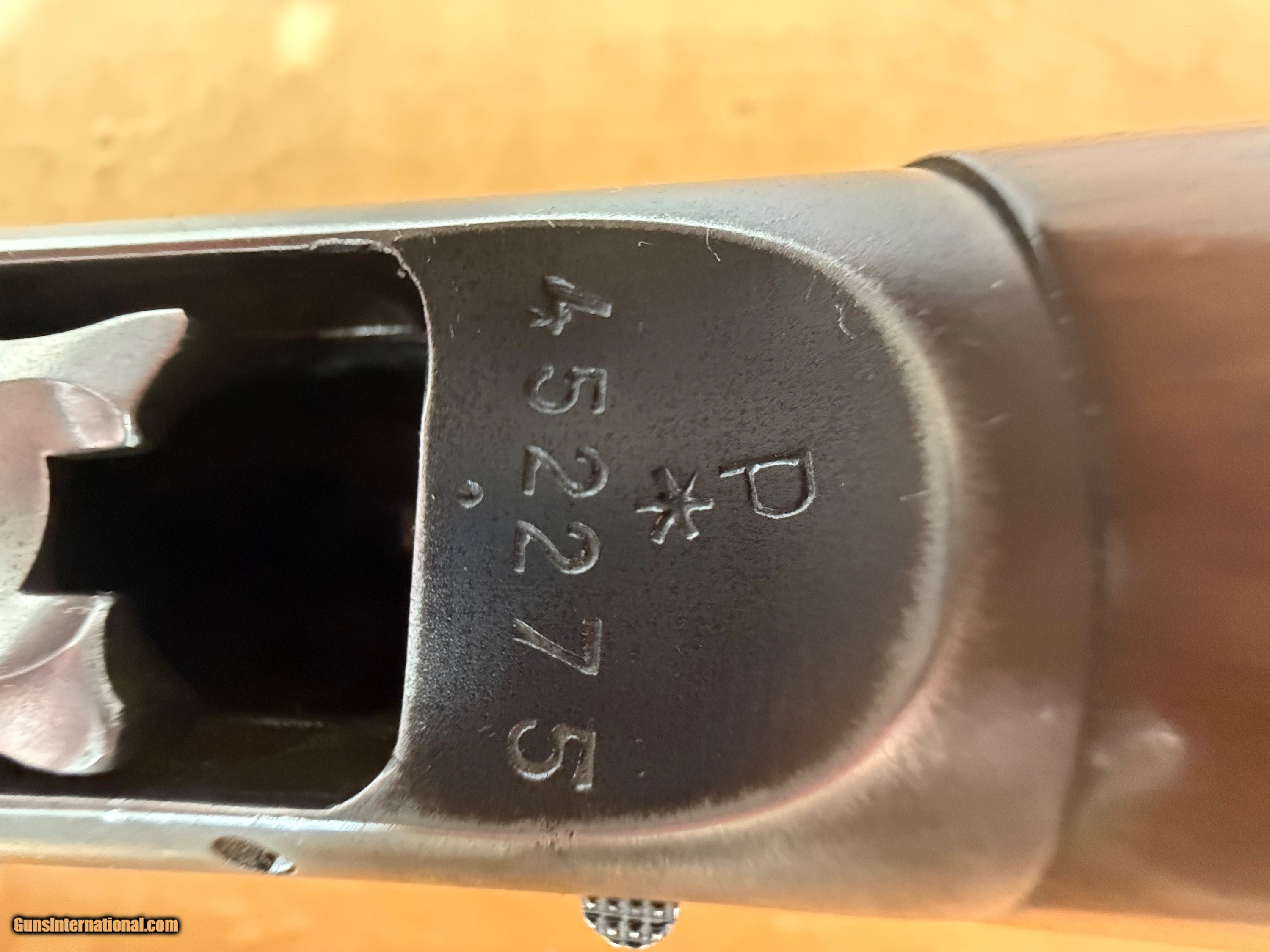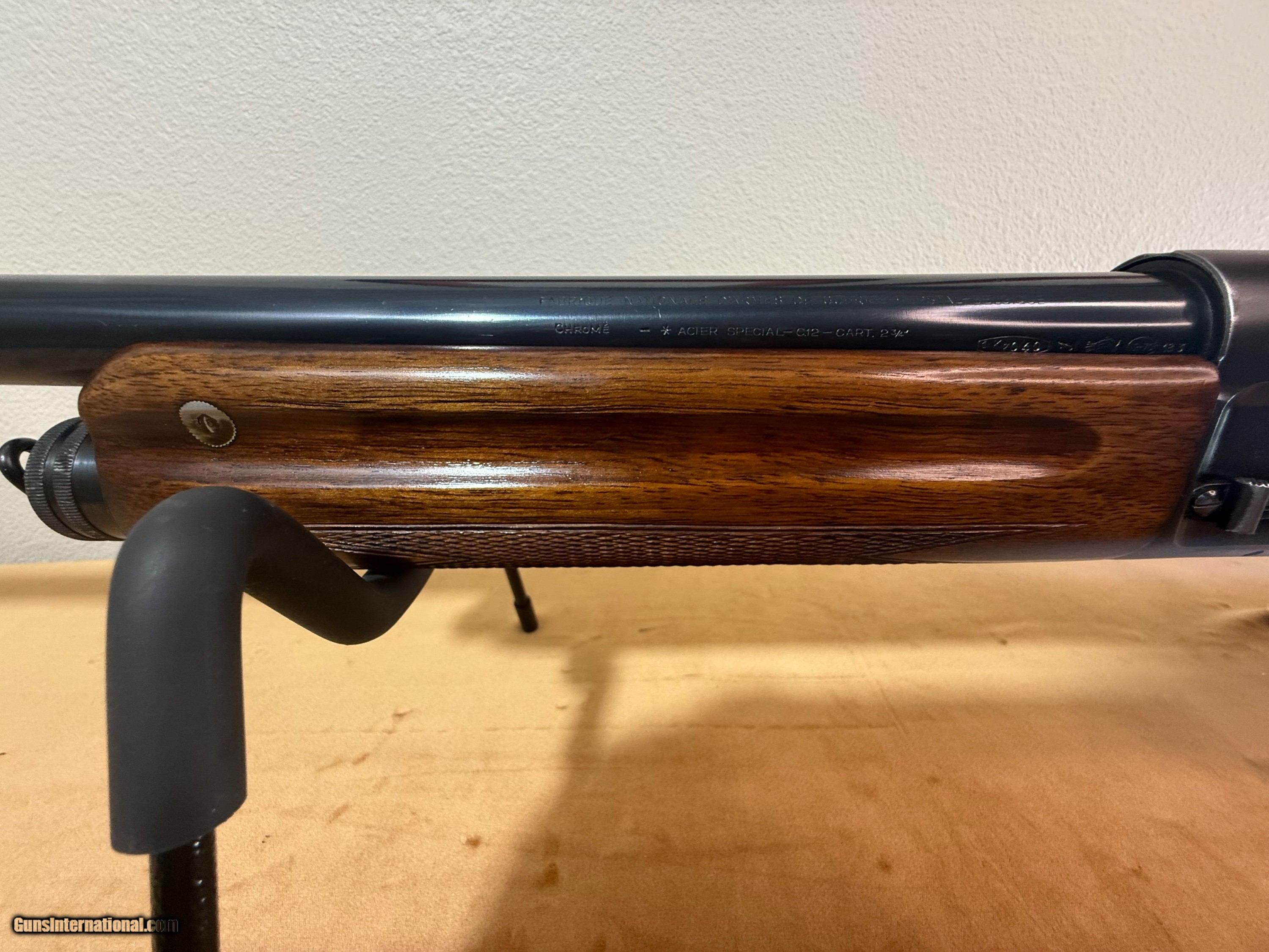 Description: Browning A5, Rarely seen English (straight) stock 12 gauge beauty. It's hard to pin down the details of these unique "SUPER LIGHT" Auto 5 shotguns as they were not sold in the United States with these markings. Here are some highlights: Offered here is a fine example of the iconic Browning Auto 5, manufactured in Belgium by FN Herstal. This is the classic 12-gauge semi-auto that set the standard for reliability and innovation for generations of sportsmen. Chambered for 2.75" shells and fitted with a 27.5" non-rib barrel choked Improved Modified, it is as versatile as it is timeless. It is accented with a gold trigger and silver-tone trigger guard, giving it a handsome contrast. Mechanically, the gun remains in excellent condition with a smooth cycling action, a crisp trigger, and a clear bore. The walnut stock and forend show almost no wear and the checkering remains strong and defined. This is what's known as a World Market or European Market FN Belgium Browning Automatic 5. Since it was marketed overseas and is a Super Lightweight, coming in at 7.2lbs. On the barrel you see: FABRIQUE NATIONALE D' ARMS DE GUIRRE HERSTAL BELGIQUE. CROME -* ACIER SPECIAL C12 CART. 2 3/4”. Made in the 1960s and early 70s Every Automatic 5 lover should have at least one of these babies just because of their uniqueness. Absolutely beautiful wood on this Auto 5 and VERY little wear on the gold trigger testifying to the limited use this lovely girl had. These unique Auto-5s just don't come along very often so you have a rare opportunity here to make it yours... s/n - P 452275