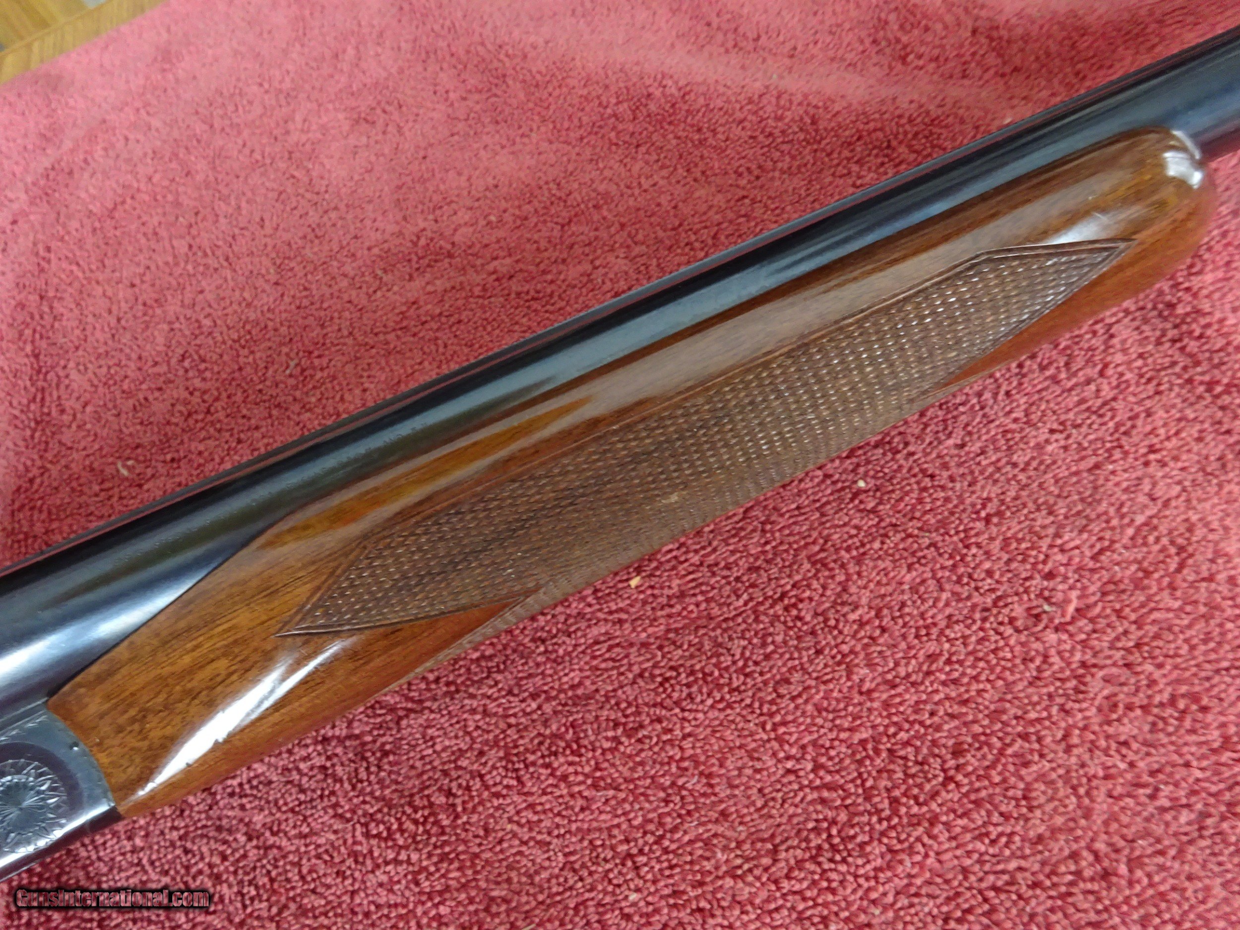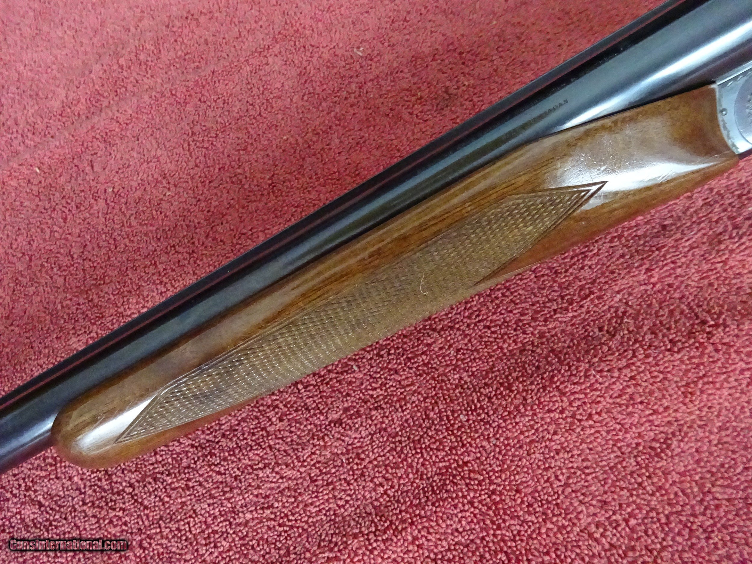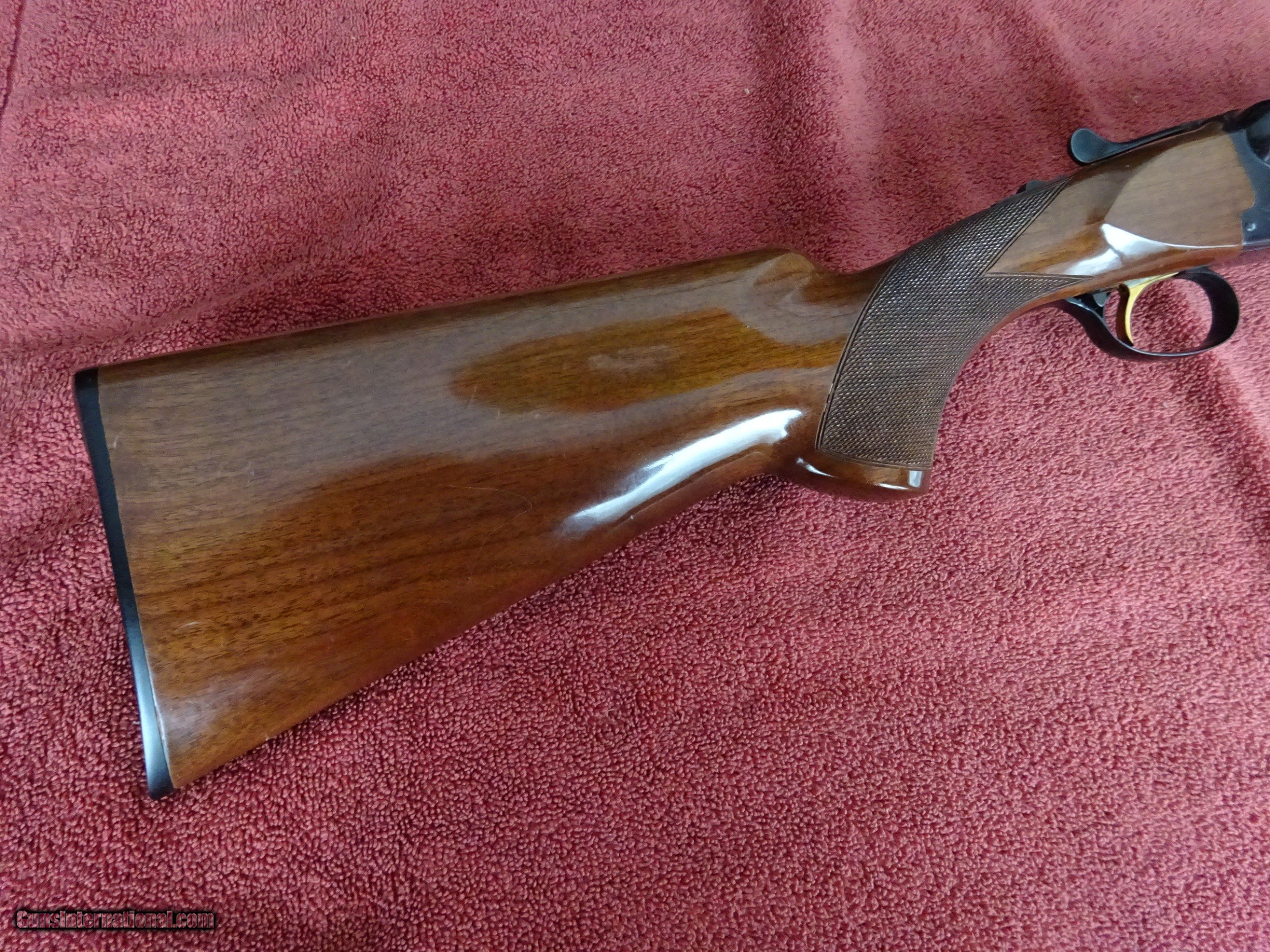 Description: BROWNING BSS 12 GAUGE, AUTOMATIC EJECTORS. 30" BARRELS, MODIFIED AND FULL, 3" CHAMBERS, 99% BRIGHT BLUE, MIRROR PERFECT BORES, SINGLE BRASS SIGHT, BARRELS RING BEAUTIFULLY. SINGLE SELECTIVE GOLD TRIGGER, LIGHT SCROLL ENGRAVING, 99% BLUE ON FRAME, TRIGGERGUARD, AND FOREARM IRON. THE TOP LEVER IS TO THE FAR RIGHT, STIFF TO OPEN, TIGHT AS NEW. PISTOL GRIP STOCK, BEAVERTAIL FOREARM, ORIGINAL BUTTPLATE. EXCELLENT WOOD AND CHECKERING, HANDLING MARKS IN THE VARNISH, 100% ORIGINAL CONDITION. ASSEMBLED IN JAPAN IN 1981, 1 1/2" 2 3/8" X 14 1/8", 8 POUNDS EVEN. INCLUDES BOX AND INSTRUCTION BOOKLET WITH WARRANTEE CARD. $1975.00 + $50.00 Insured shipping to an FFL address. See all Pats gun listings on this site! We also have hundreds of pieces of ORIGINAL gun company advertising & memorabilia available for sale on our site SPORTINGCOLLECTIBLES. We have no reprints or reproductions. Email for more information. SOLD Curio/Relic: Yes |