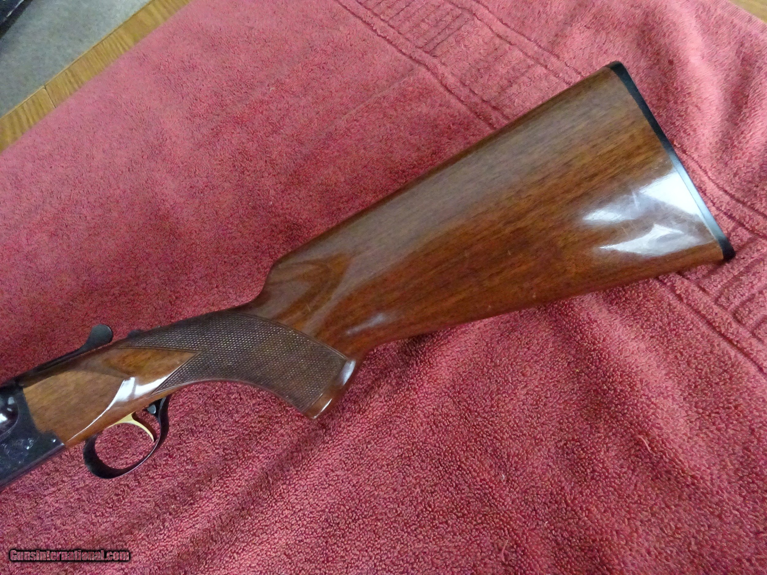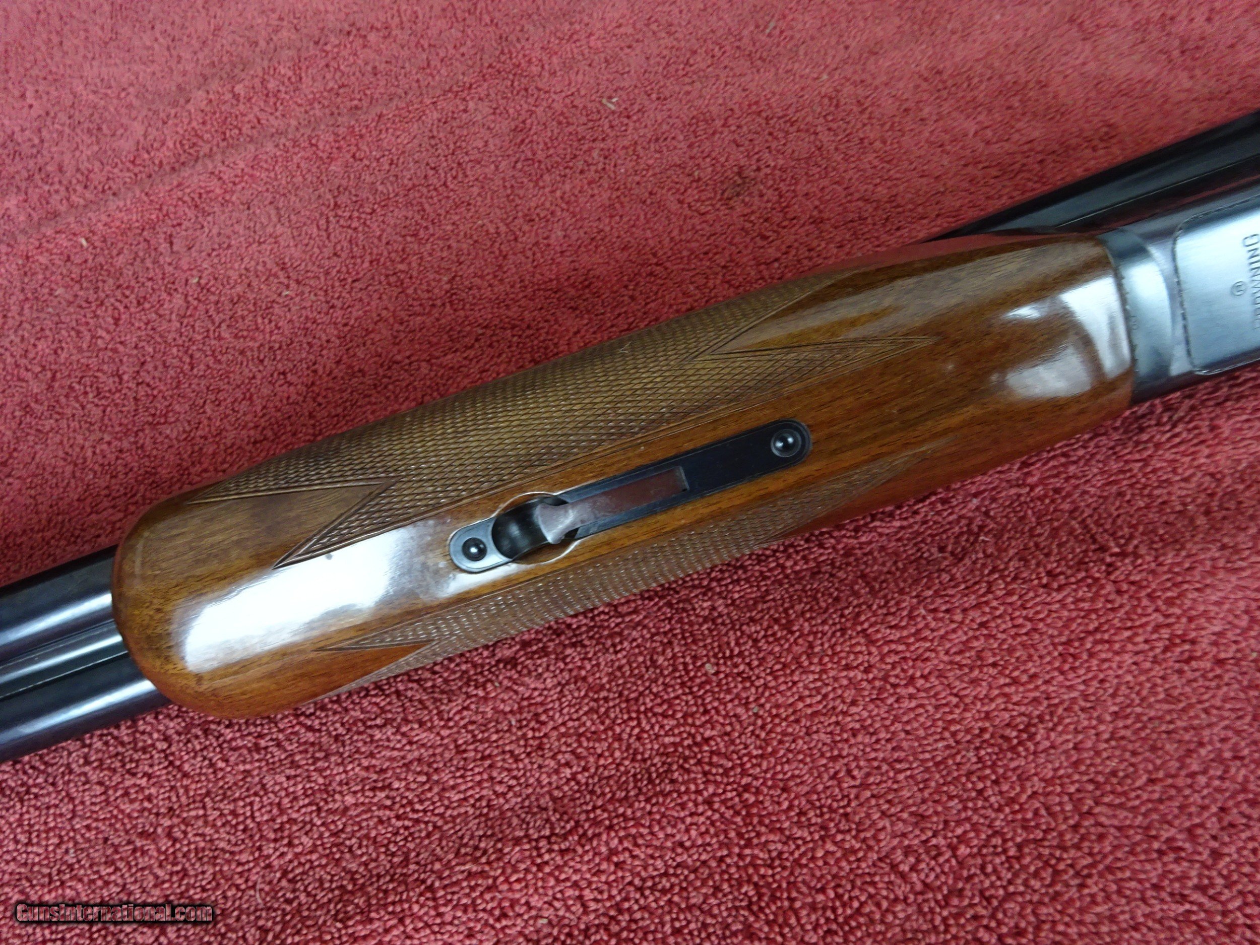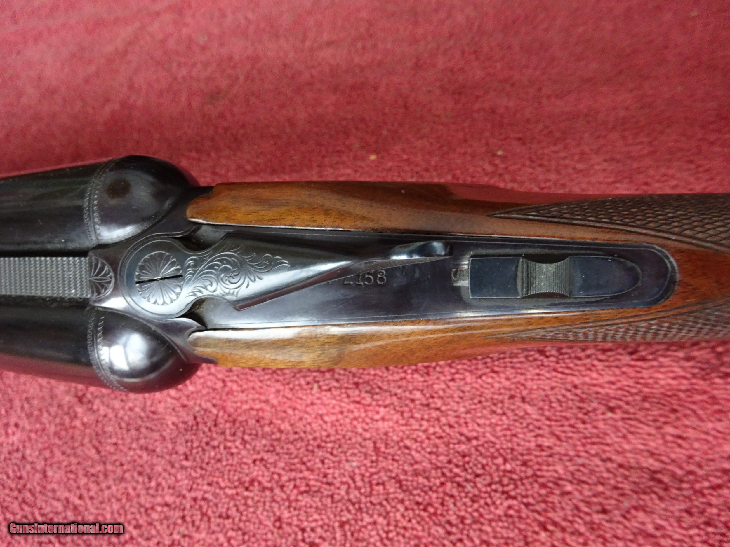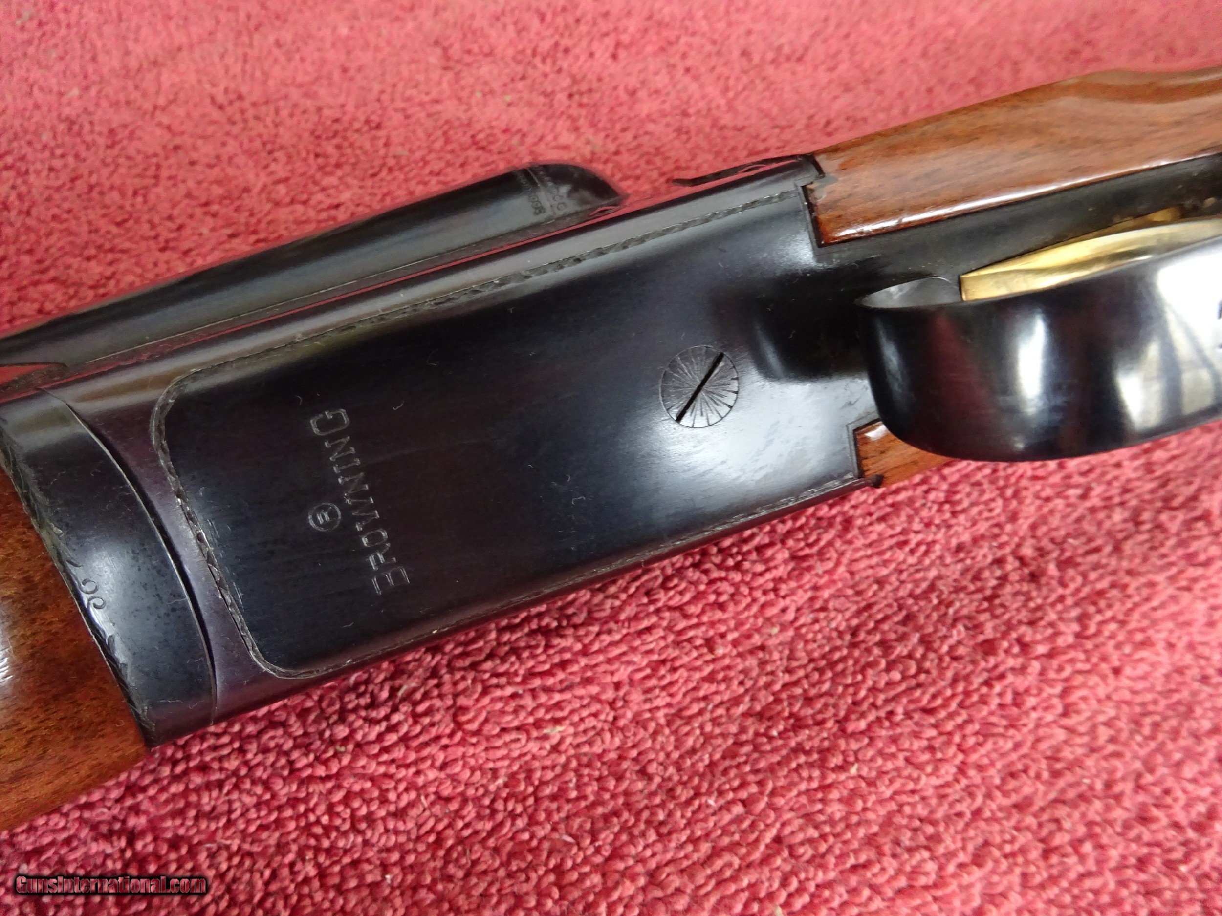 Description: BROWNING BSS 12 GAUGE, AUTOMATIC EJECTORS. 30" BARRELS, MODIFIED AND FULL, 3" CHAMBERS, 99% BRIGHT BLUE, MIRROR PERFECT BORES, SINGLE BRASS SIGHT, BARRELS RING BEAUTIFULLY. SINGLE SELECTIVE GOLD TRIGGER, LIGHT SCROLL ENGRAVING, 99% BLUE ON FRAME, TRIGGERGUARD, AND FOREARM IRON. THE TOP LEVER IS TO THE FAR RIGHT, STIFF TO OPEN, TIGHT AS NEW. PISTOL GRIP STOCK, BEAVERTAIL FOREARM, ORIGINAL BUTTPLATE. EXCELLENT WOOD AND CHECKERING, HANDLING MARKS IN THE VARNISH, 100% ORIGINAL CONDITION. ASSEMBLED IN JAPAN IN 1981, 1 1/2" 2 3/8" X 14 1/8", 8 POUNDS EVEN. INCLUDES BOX AND INSTRUCTION BOOKLET WITH WARRANTEE CARD. $1975.00 + $50.00 Insured shipping to an FFL address. See all Pats gun listings on this site! We also have hundreds of pieces of ORIGINAL gun company advertising & memorabilia available for sale on our site SPORTINGCOLLECTIBLES. We have no reprints or reproductions. Email for more information. SOLD Curio/Relic: Yes |