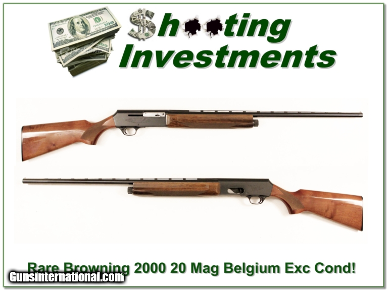 Description: Collectors and shooters, this is a rare Browning 2000 20 Gauge. These were only made a short time are Belgium made semi-auto guns. This one is excellent and I am sure never shot many times. It is a 20 Magnum with 28in Vent Rib modified barrel. It is a Shooting Investment and will make a nice addition to your collection. Shipping and insurance is $30 or for $18 more (my cost) I’ll ship it in a new Plano hard case. Please email me with any questions or larger pictures. (I now consign quality firearms only 10%! Let me know if you have any you would like to sell!) [15-0218] Payment: Payment is by Money Order, Cashiers Check or Personal Check. I can now also accept MasterCard and Visa with a 3% convenience fee. PayPal can be used for some items but never firearms. Please let us know if you would like to pay via PayPal. Shipping: The shipping charge will be listed in each description. It is $30 for most guns. Some heavy guns or those insured for over $2000 may be higher. Shipments to Alaska and Hawaii are higher because air shipment is required. Most firearms are shipped within 5 days of receipt of payment. We prefer shipping at the beginning of the week to avoid firearms in transit over weekends. We package all shipments carefully and insure them for the full purchase price, rounded up to the next $100. In the unlikely event that damage occurs, it is important that you save all packaging material for the claims process. Optics are shipped Priority Mail and most other non-firearm shipments are shipped First Class. Returns: Our return policy is simple. If for any reason you are not pleased with your purchase, you may return your item for a refund. The only exception is ammunition, it cannot be returned. It is important to us that you are happy. Guns cannot be fired or dissembled before returning them and must be returned in the same condition as received. Notification of a return must occur with-in 3 days of receipt at your dealer. Shipping, convenience and dealer fees are not refundable and are the responsibility of the buyer. Lay-a-way: If needed, we offer a 60 day lay-a-way option on most firearms. It is 1/3 now, 1/3 in 30 days and 1/3 in 60 days. Lay-a-way firearm sales are final. Consigning your firearms with Shooting Investments: We will help you get top dollar for your firearms. While most local guns shops charge 20% or more, our fee is only 10% with a minimum of $50. At your local gun shop it might take months to sell. Selling on-line provides instant access to thousands of interested buyers. You won’t find any other on-line dealer willing to sell your firearms for only 10% or listing every gun on 4 separate s. Selling through an House typically costs the seller 15% and the buyer an addition 15% (so 30%) and you have to wait several months to sell and longer to receive funds. If properly priced, we will sell your firearms in a week or two. Send us an email or give us a call and we’ll explain how easy it is for you to get top dollar. Trading: We collect guns and usually just trade for guns we want to add to our collections. We often sell guns for others wanting to purchase one of ours. We find this the most fair to both of us. Our Commission is only 10% and we hold the gun you want until yours sells. Please contact us if you want to sell one of yours to buy one of ours. Help for California Buyers: We are happy to ship to California. It is the buyer’s responsibility to make sure any item you buy is legal in your state. We are also happy to help with your purchase of a firearm from someone other than us. If you see a gun you would like to buy but the seller can’t or won’t ship to California we can help. You buy the gun and have it shipped to us. We’ll then ship it to your California dealer. The cost for this service is only $30 + shipping. Let me know if we can help! SOLD |