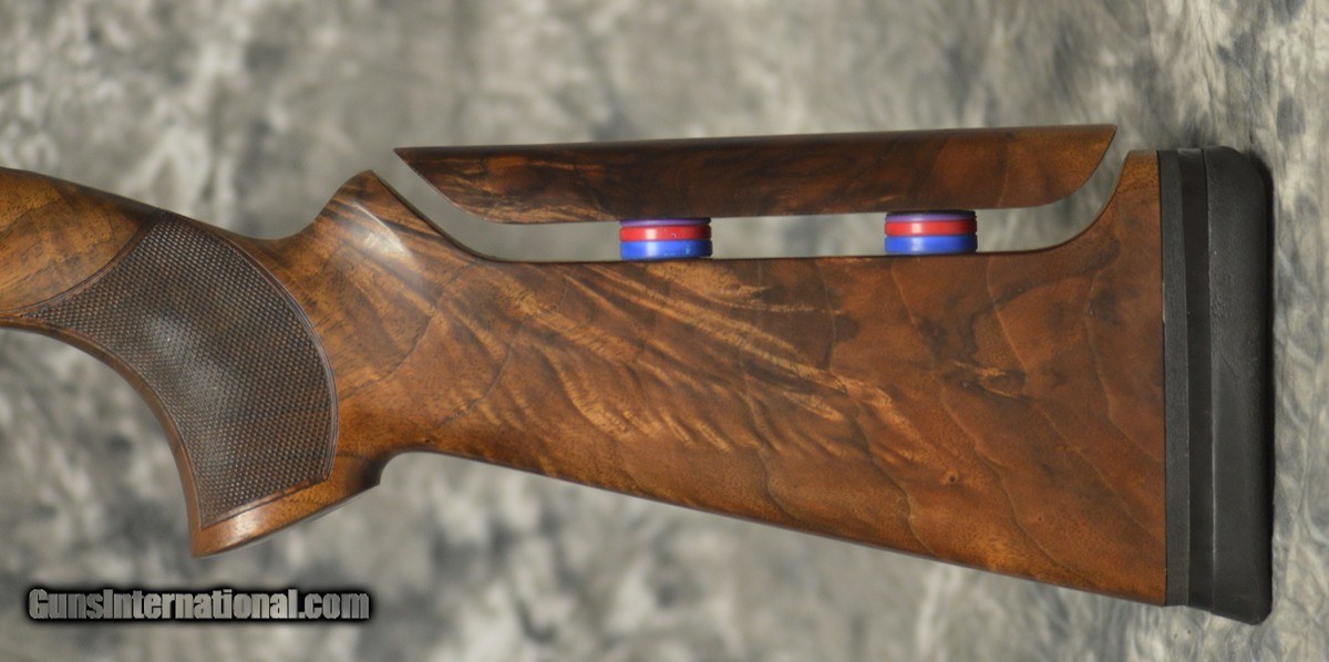 Description: Pre-Owned Browning 525 Sporting 12GA with 30" factory Inv + choked barrels, factory ported with full set of fitted Briley UL (20/28/.410) sub-gauge tubes. Nickel finished receiver with scroll engraving, factory pistol grip stock with aftermarket adj. comb, handling marks in stock, minor finish wear; schnabel forearm. Includes Americase, chokes and tools. SOLD |