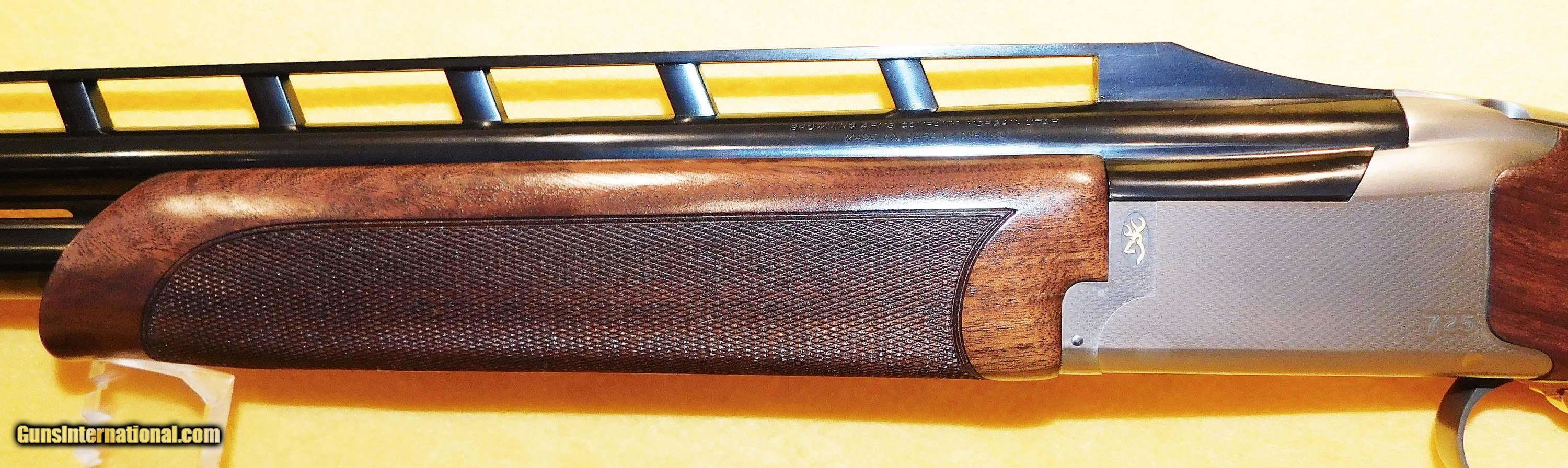 Description: BROWNING 725 IN 12 GA. CAL., WITH 32" BARREL. COLOR STAINLESS STEEL. CONDITION 97%. SERIAL NUMBER 17629ZW131. BROWNING MODEL 725 IN 12 GAUGE CALIBER, HIGH TWO BEAD VENT RIB (WHITE MIDDLE/ FIBER OPTIC FRONT) MIRROR BORE PORTED BARRELS WITH SCREW IN CHOKES (IMPROVED CYLINDER ¼- IMPROVED CYLINDER ¾- MODIFIED ½- AND SKEET LEAD AND STEEL) (FULL-LEAD), 2 3/4” AND 3” CHAMBER, STOCK HAS ADJUST ABUL COMB HIGH/LOW, LEFT RIGHT, WITH ADJUSTABUL RECOIL REDUCING PAD LONG/SHORT AND LEFT/ RIGHT, COMES WITH ALL LEATHER FACTORY CASE, CHOKE TOOLS, 97% OVERALL CONDITION, OUR STOCK # D3709 SOLD |