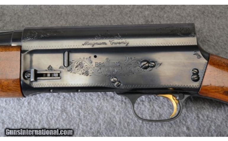 Description: SOLD Manufacturer: 1968 Caliber Info: 20 GA Chambers: 3 Metal Condition: Original finish shows light handling marks on receiver and some wear on barrel. Wood Condition: Original finish shows light handling marks overall with gouge on forend. Bore Condition: Clean and shiny, no evidence of pitting. Barrels: 27.5 Triggers: 14.25" LOP Butt Pad: Browning plastic butt plate. Weight: 6.95 LB Sights: Single front bead. Chokes: IM Item Location: Mitchell, SD |