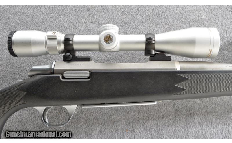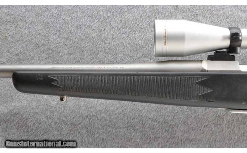 Description: First year production of the B.O.S.S. Stainless Stalker SOLD Manufacturer: 1994 Caliber Info: .30-06 Springfield Metal Condition: Shows some minor field marks Wood Condition: Stock shows some scratches & scuffs Bore Condition: Bright strong rifling Barrels: 20" with B.O.S.S. (Balistic Optimized Shooting System) Stock: Synthetic pistol grip Stock Dimensions: 13 1/2" LOP Butt Pad: Browning rubber Weight: 7 lbs 12 oz Sights: Nikon Monarch UCC 3-9 Scope Item Location: Grand Junction, CO |