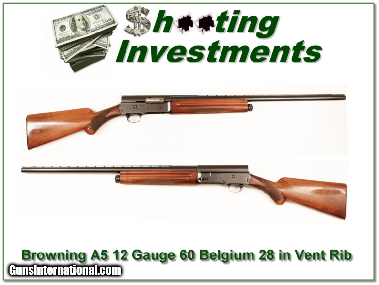 Description: This A5 was made in Belgium in 1960. It is in very good condition and is all original. It has beautiful rust blue and horn butt. The wood has a few minor marks. The barrel is a Vent Rib 28in full. This is an A5 you can use yet still expect to go up in value over time. That makes it a Shooting Investment. Shipping and insurance is $30 and please email me with any questions or larger pictures. (I now consign quality firearms only 10%! Let me know if you have any you would like to sell!) [14-1032] Payment: Payment is by Money Order, Cashiers Check or Personal Check. I can now also accept MasterCard and Visa with a 3% convenience fee. PayPal can be used for some items but never firearms. Please let us know if you would like to pay via PayPal. Shipping: The shipping charge will be listed in each description. It is $30 for most guns. Some heavy guns or those insured for over $2000 may be higher. Shipments to Alaska and Hawaii are higher because air shipment is required. Most firearms are shipped within 5 days of receipt of payment. We prefer shipping at the beginning of the week to avoid firearms in transit over weekends. We package all shipments carefully and insure them for the full purchase price, rounded up to the next $100. In the unlikely event that damage occurs, it is important that you save all packaging material for the claims process. Optics are shipped Priority Mail and most other non-firearm shipments are shipped First Class. Returns: Our return policy is simple. If for any reason you are not pleased with your purchase, you may return your item for a refund. The only exception is ammunition, it cannot be returned. It is important to us that you are happy. Guns cannot be fired or dissembled before returning them and must be returned in the same condition as received. Notification of a return must occur with-in 3 days of receipt at your dealer. Shipping, convenience and dealer fees are not refundable and are the responsibility of the buyer. Lay-a-way: If needed, we offer a 60 day lay-a-way option on most firearms. It is 1/3 now, 1/3 in 30 days and 1/3 in 60 days. Lay-a-way firearm sales are final. Consigning your firearms with Shooting Investments: We will help you get top dollar for your firearms. While most local guns shops charge 20% or more, our fee is only 10% with a minimum of $50. At your local gun shop it might take months to sell. Selling on-line provides instant access to thousands of interested buyers. You won’t find any other on-line dealer willing to sell your firearms for only 10% or listing every gun on 4 separate s. Selling through an House typically costs the seller 15% and the buyer an addition 15% (so 30%) and you have to wait several months to sell and longer to receive funds. If properly priced, we will sell your firearms in a week or two. Send us an email or give us a call and we’ll explain how easy it is for you to get top dollar. Trading: We collect guns and usually just trade for guns we want to add to our collections. We often sell guns for others wanting to purchase one of ours. We find this the most fair to both of us. Our Commission is only 10% and we hold the gun you want until yours sells. Please contact us if you want to sell one of yours to buy one of ours. Help for California Buyers: We are happy to ship to California. It is the buyer’s responsibility to make sure any item you buy is legal in your state. We are also happy to help with your purchase of a firearm from someone other than us. If you see a gun you would like to buy but the seller can’t or won’t ship to California we can help. You buy the gun and have it shipped to us. We’ll then ship it to your California dealer. The cost for this service is only $30 + shipping. Let me know if we can help! SOLD |