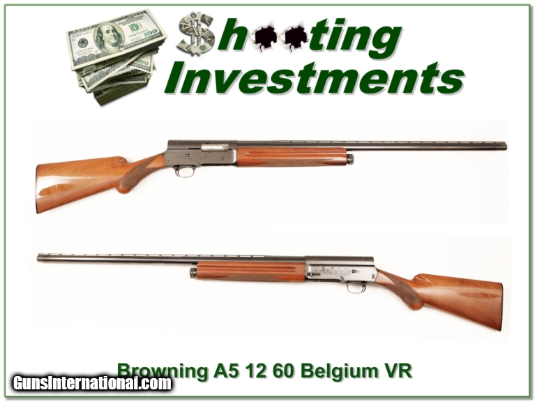Description: This A5 12 Gauge was made in Belgium in 1960. It is all original with beautiful wood. It has no edge or recoil wear and wasn’t shot very much. The original rust blue has only a few freckles. The wood has only a couple minor marks. The barrel is a Vent Rib 30in F. This one will make a nice addition to your collection and can be used yet still expected to increase in value over time. That makes it a real Shooting Investment. Shipping and insurance is $30 or $18 more if you want it shipped in a new Plano hard case. Please email me with any questions or larger pictures. (I now consign quality firearms only 10%! Let me know if you have any you would like to sell!) [15-0312] Payment: Payment is by Money Order, Cashiers Check or Personal Check. I can now also accept MasterCard and Visa with a 3% convenience fee. PayPal can be used for some items but never firearms. Please let us know if you would like to pay via PayPal. Shipping: The shipping charge will be listed in each description. It is $30 for most guns. Some heavy guns or those insured for over $2000 may be higher. Shipments to Alaska and Hawaii are higher because air shipment is required. Most firearms are shipped within 5 days of receipt of payment. We prefer shipping at the beginning of the week to avoid firearms in transit over weekends. We package all shipments carefully and insure them for the full purchase price, rounded up to the next $100. In the unlikely event that damage occurs, it is important that you save all packaging material for the claims process. Optics are shipped Priority Mail and most other non-firearm shipments are shipped First Class. Returns: Our return policy is simple. If for any reason you are not pleased with your purchase, you may return your item for a refund. The only exception is ammunition, it cannot be returned. It is important to us that you are happy. Guns cannot be fired or dissembled before returning them and must be returned in the same condition as received. Notification of a return must occur with-in 3 days of receipt at your dealer. Shipping, convenience and dealer fees are not refundable and are the responsibility of the buyer. Lay-a-way: If needed, we offer a 60 day lay-a-way option on most firearms. It is 1/3 now, 1/3 in 30 days and 1/3 in 60 days. Lay-a-way firearm sales are final. Consigning your firearms with Shooting Investments: We will help you get top dollar for your firearms. While most local guns shops charge 20% or more, our fee is only 10% with a minimum of $50. At your local gun shop it might take months to sell. Selling on-line provides instant access to thousands of interested buyers. You won’t find any other on-line dealer willing to sell your firearms for only 10% or listing every gun on 4 separate s. Selling through an House typically costs the seller 15% and the buyer an addition 15% (so 30%) and you have to wait several months to sell and longer to receive funds. If properly priced, we will sell your firearms in a week or two. Send us an email or give us a call and we’ll explain how easy it is for you to get top dollar. Trading: We collect guns and usually just trade for guns we want to add to our collections. We often sell guns for others wanting to purchase one of ours. We find this the most fair to both of us. Our Commission is only 10% and we hold the gun you want until yours sells. Please contact us if you want to sell one of yours to buy one of ours. Help for California Buyers: We are happy to ship to California. It is the buyer’s responsibility to make sure any item you buy is legal in your state. We are also happy to help with your purchase of a firearm from someone other than us. If you see a gun you would like to buy but the seller can’t or won’t ship to California we can help. You buy the gun and have it shipped to us. We’ll then ship it to your California dealer. The cost for this service is only $30 + shipping. Let me know if we can help! SOLD |