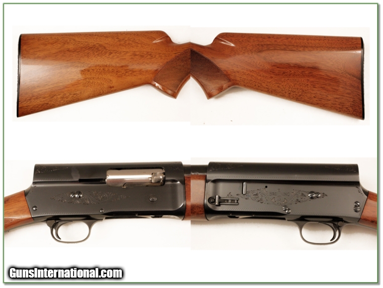 Description: This Browning A5 was made in Belgium in 1967. It looks to have never fired more than a few shells as there is no edge, recoil or trigger wear. The honey wood has only a couple handing marks. The barrel is a 28in Modified. Only one spot about the size or a nickel of blue thinning on the receiver keep this from being a $1000 collector. This is a near new A5 for the price of a well-used one! Shipping and insurance is $30 or $18 more if you want it shipped in a new Plano hard case. Please email me with any questions or larger pictures. (I now consign quality firearms only 10%! Let me know if you have any you would like to sell!) [15-0029] Payment: Payment is by Money Order, Cashiers Check or Personal Check. I can now also accept MasterCard and Visa with a 3% convenience fee. PayPal can be used for some items but never firearms. Please let us know if you would like to pay via PayPal. Shipping: The shipping charge will be listed in each description. It is $30 for most guns. Some heavy guns or those insured for over $2000 may be higher. Shipments to Alaska and Hawaii are higher because air shipment is required. Most firearms are shipped within 5 days of receipt of payment. We prefer shipping at the beginning of the week to avoid firearms in transit over weekends. We package all shipments carefully and insure them for the full purchase price, rounded up to the next $100. In the unlikely event that damage occurs, it is important that you save all packaging material for the claims process. Optics are shipped Priority Mail and most other non-firearm shipments are shipped First Class. Returns: Our return policy is simple. If for any reason you are not pleased with your purchase, you may return your item for a refund. The only exception is ammunition, it cannot be returned. It is important to us that you are happy. Guns cannot be fired or dissembled before returning them and must be returned in the same condition as received. Notification of a return must occur with-in 3 days of receipt at your dealer. Shipping, convenience and dealer fees are not refundable and are the responsibility of the buyer. Lay-a-way: If needed, we offer a 60 day lay-a-way option on most firearms. It is 1/3 now, 1/3 in 30 days and 1/3 in 60 days. Lay-a-way firearm sales are final. Consigning your firearms with Shooting Investments: We will help you get top dollar for your firearms. While most local guns shops charge 20% or more, our fee is only 10% with a minimum of $50. At your local gun shop it might take months to sell. Selling on-line provides instant access to thousands of interested buyers. You won’t find any other on-line dealer willing to sell your firearms for only 10% or listing every gun on 4 separate s. Selling through an House typically costs the seller 15% and the buyer an addition 15% (so 30%) and you have to wait several months to sell and longer to receive funds. If properly priced, we will sell your firearms in a week or two. Send us an email or give us a call and we’ll explain how easy it is for you to get top dollar. Trading: We collect guns and usually just trade for guns we want to add to our collections. We often sell guns for others wanting to purchase one of ours. We find this the most fair to both of us. Our Commission is only 10% and we hold the gun you want until yours sells. Please contact us if you want to sell one of yours to buy one of ours. Help for California Buyers: We are happy to ship to California. It is the buyer’s responsibility to make sure any item you buy is legal in your state. We are also happy to help with your purchase of a firearm from someone other than us. If you see a gun you would like to buy but the seller can’t or won’t ship to California we can help. You buy the gun and have it shipped to us. We’ll then ship it to your California dealer. The cost for this service is only $30 + shipping. Let me know if we can help! SOLD |