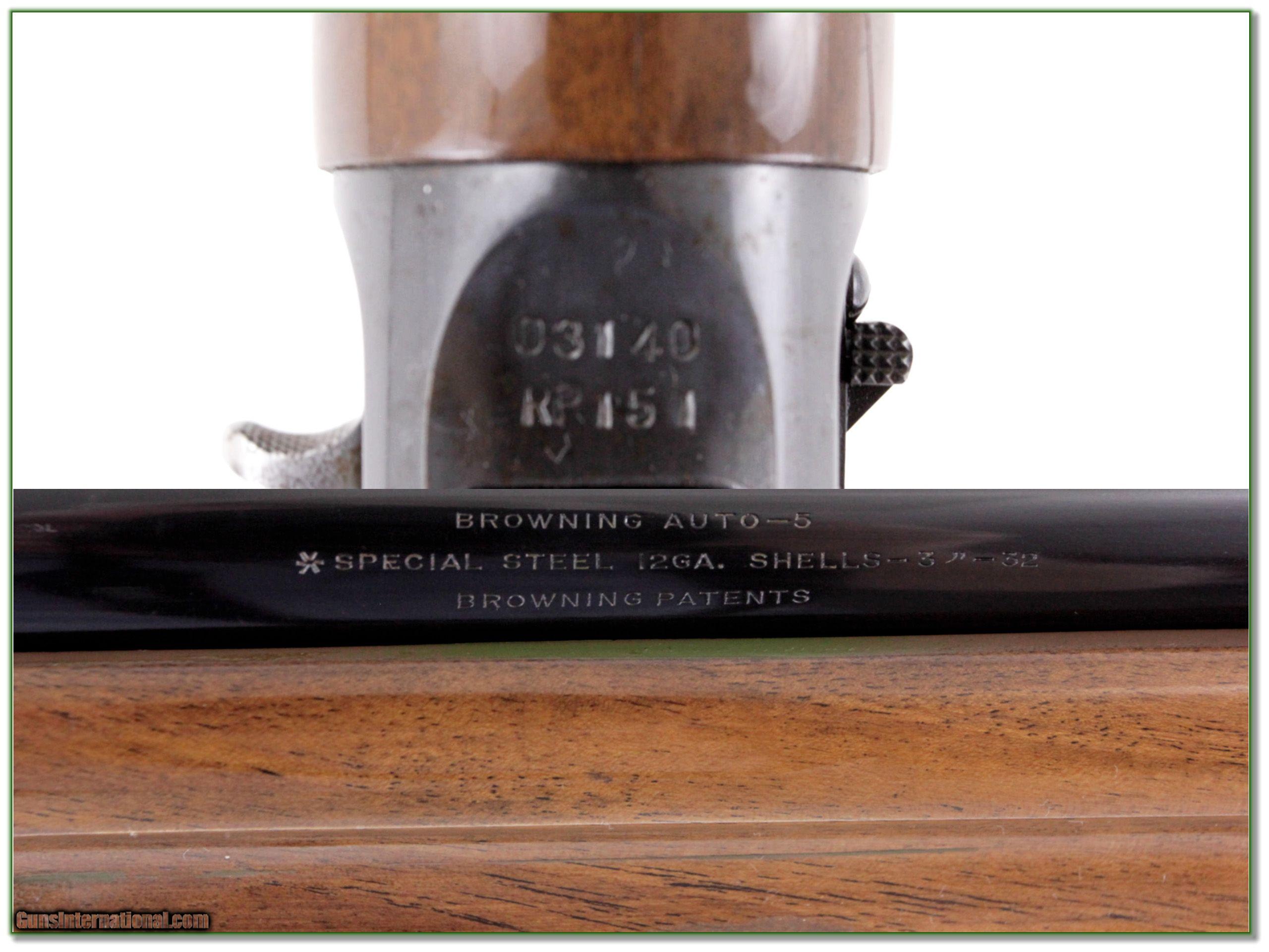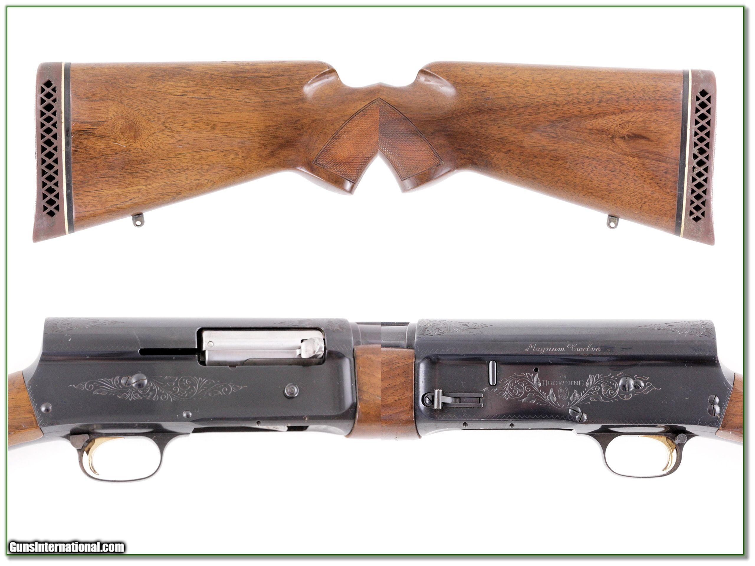 Description: This is a Browning A5 12 Magnum in very good condition. It has a 32in Vent Rib full choked barrel. Blue and wood have only handing marks. It will make a classic field gun. This is a Japan made A5. Shipping and insurance is $39. Please email me with any questions or larger pictures. (Consign your quality firearms with Shooting Investments for only 12%! Let me know if you have any you would like to sell!) 18-0017 Payment: Payment is by Money Order, Cashiers Check or Personal Check. I can now also accept MasterCard and Visa with a 3% convenience fee. PayPal can be used for some items but never firearms. Please let us know if you would like to pay via PayPal. Shipping: The shipping charge will be listed in each description. It is $39 for most long guns and $29 for most handguns. Some heavy guns or those insured for over $2000 will be higher. Shipments to Alaska and Hawaii are higher because air shipment is required. Most firearms are shipped on Tuesday and Thursday and usually in 5 days of receipt of payment. We package all shipments carefully and insure them. For long guns you can purchase a new Plano case for $19. They now cost us $22 when buying 100 at a time. Optics are shipped Priority Mail and most other non-firearm shipments are shipped First Class. Returns: Our return policy is simple. If for any reason you are not pleased with your purchase, you may return your item for a full refund of purchase price. Ammunition cannot be returned. It is important to us that you are happy. Guns cannot be fired or dissembled before returning them and they must be returned in the same condition as received. Notification of a return must occur with-in 3 days of receipt at your dealer. Shipping, convenience and dealer fees are not refundable and are the responsibility of the buyer. Lay-a-way: If needed, we offer a 60 day lay-a-way option on most firearms. It is 1/3 now, 1/3 in 30 days and 1/3 in 60 days. Lay-a-way firearm sales are final and if not completed the first payment cannot be returned. Consigning your firearms with Shooting Investments: We will help you get top dollar for your firearms. While most local guns shops charge 20% or more, our fee is only 12% with a minimum of $75. At your local gun shop it might take months to sell. Selling on-line provides instant access to thousands of interested buyers. You won’t find any other on-line dealer willing to sell your firearms for only 12% or listing every gun on 3 separate s. Selling through an House typically costs the seller 15% and the buyer an addition 15% (so 30%) and you have to wait several months to sell and longer to receive funds. If properly priced, we will sell your firearms in a few weeks. Send us an email or give us a call and we’ll explain how easy it is for you to get top dollar. Trading: Trading for use is really just buying your gun to re-sell. If you have a gun you want to trade, please email a picture and we will let you know what we can give or it. You will always get more if we sell it for you on consignment. Help for California Buyers: We are happy to ship to California. It is the buyer’s responsibility to make sure any item you buy is legal in your state. We are also happy to help with your purchase of a firearm from someone other than us. If you see a gun you would like to buy but the seller can’t or won’t ship to California they can ship to use and we’ll then ship it to your California dealer. The cost for this service is only $30 + shipping. Let us know if we can help! SOLD |