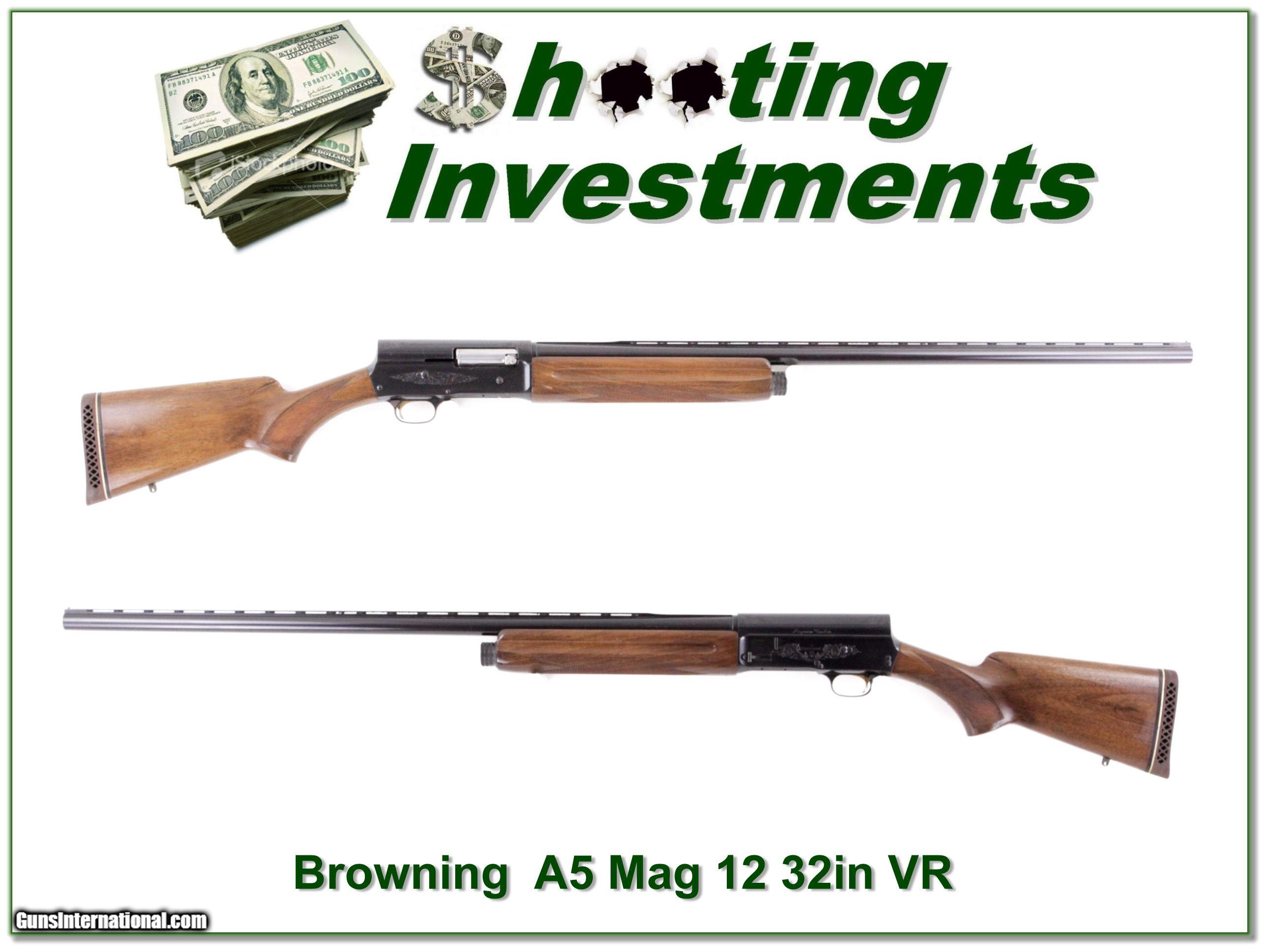 Description: This is a Browning A5 12 Magnum in very good condition. It has a 32in Vent Rib full choked barrel. Blue and wood have only handing marks. It will make a classic field gun. This is a Japan made A5. Shipping and insurance is $39. Please email me with any questions or larger pictures. (Consign your quality firearms with Shooting Investments for only 12%! Let me know if you have any you would like to sell!) 18-0017 Payment: Payment is by Money Order, Cashiers Check or Personal Check. I can now also accept MasterCard and Visa with a 3% convenience fee. PayPal can be used for some items but never firearms. Please let us know if you would like to pay via PayPal. Shipping: The shipping charge will be listed in each description. It is $39 for most long guns and $29 for most handguns. Some heavy guns or those insured for over $2000 will be higher. Shipments to Alaska and Hawaii are higher because air shipment is required. Most firearms are shipped on Tuesday and Thursday and usually in 5 days of receipt of payment. We package all shipments carefully and insure them. For long guns you can purchase a new Plano case for $19. They now cost us $22 when buying 100 at a time. Optics are shipped Priority Mail and most other non-firearm shipments are shipped First Class. Returns: Our return policy is simple. If for any reason you are not pleased with your purchase, you may return your item for a full refund of purchase price. Ammunition cannot be returned. It is important to us that you are happy. Guns cannot be fired or dissembled before returning them and they must be returned in the same condition as received. Notification of a return must occur with-in 3 days of receipt at your dealer. Shipping, convenience and dealer fees are not refundable and are the responsibility of the buyer. Lay-a-way: If needed, we offer a 60 day lay-a-way option on most firearms. It is 1/3 now, 1/3 in 30 days and 1/3 in 60 days. Lay-a-way firearm sales are final and if not completed the first payment cannot be returned. Consigning your firearms with Shooting Investments: We will help you get top dollar for your firearms. While most local guns shops charge 20% or more, our fee is only 12% with a minimum of $75. At your local gun shop it might take months to sell. Selling on-line provides instant access to thousands of interested buyers. You won’t find any other on-line dealer willing to sell your firearms for only 12% or listing every gun on 3 separate s. Selling through an House typically costs the seller 15% and the buyer an addition 15% (so 30%) and you have to wait several months to sell and longer to receive funds. If properly priced, we will sell your firearms in a few weeks. Send us an email or give us a call and we’ll explain how easy it is for you to get top dollar. Trading: Trading for use is really just buying your gun to re-sell. If you have a gun you want to trade, please email a picture and we will let you know what we can give or it. You will always get more if we sell it for you on consignment. Help for California Buyers: We are happy to ship to California. It is the buyer’s responsibility to make sure any item you buy is legal in your state. We are also happy to help with your purchase of a firearm from someone other than us. If you see a gun you would like to buy but the seller can’t or won’t ship to California they can ship to use and we’ll then ship it to your California dealer. The cost for this service is only $30 + shipping. Let us know if we can help! SOLD |