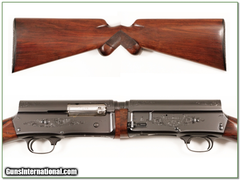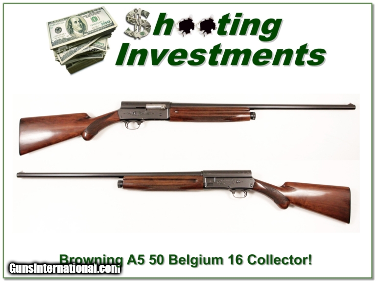 Description: Collectors, this is an excellent condition 16 Gauge Browning A5. It was made in Belgium in1950! These are VERY hard to find this nice. It is all original and looks to have never fired more than a few shells if that. It has beautiful rust blue and horn butt. The barrel is a 28in Modified. You will look hard to find a nicer one. It is a collector's Shooting Investment. Shipping and insurance is $30 or $18 more if you want it shipped in a new Plano hard case. Please email me with any questions or larger pictures. (I now consign quality firearms only 10%! Let me know if you have any you would like to sell!) [14-0902] Payment: Payment is by Money Order, Cashiers Check or Personal Check. I can now also accept MasterCard and Visa with a 3% convenience fee. PayPal can be used for some items but never firearms. Please let us know if you would like to pay via PayPal. Shipping: The shipping charge will be listed in each description. It is $30 for most guns. Some heavy guns or those insured for over $2000 may be higher. Shipments to Alaska and Hawaii are higher because air shipment is required. Most firearms are shipped within 5 days of receipt of payment. We prefer shipping at the beginning of the week to avoid firearms in transit over weekends. We package all shipments carefully and insure them for the full purchase price, rounded up to the next $100. In the unlikely event that damage occurs, it is important that you save all packaging material for the claims process. Optics are shipped Priority Mail and most other non-firearm shipments are shipped First Class. Returns: Our return policy is simple. If for any reason you are not pleased with your purchase, you may return your item for a refund. The only exception is ammunition, it cannot be returned. It is important to us that you are happy. Guns cannot be fired or dissembled before returning them and must be returned in the same condition as received. Notification of a return must occur with-in 3 days of receipt at your dealer. Shipping, convenience and dealer fees are not refundable and are the responsibility of the buyer. Lay-a-way: If needed, we offer a 60 day lay-a-way option on most firearms. It is 1/3 now, 1/3 in 30 days and 1/3 in 60 days. Lay-a-way firearm sales are final. Consigning your firearms with Shooting Investments: We will help you get top dollar for your firearms. While most local guns shops charge 20% or more, our fee is only 10% with a minimum of $50. At your local gun shop it might take months to sell. Selling on-line provides instant access to thousands of interested buyers. You won’t find any other on-line dealer willing to sell your firearms for only 10% or listing every gun on 4 separate s. Selling through an House typically costs the seller 15% and the buyer an addition 15% (so 30%) and you have to wait several months to sell and longer to receive funds. If properly priced, we will sell your firearms in a week or two. Send us an email or give us a call and we’ll explain how easy it is for you to get top dollar. Trading: We collect guns and usually just trade for guns we want to add to our collections. We often sell guns for others wanting to purchase one of ours. We find this the most fair to both of us. Our Commission is only 10% and we hold the gun you want until yours sells. Please contact us if you want to sell one of yours to buy one of ours. Help for California Buyers: We are happy to ship to California. It is the buyer’s responsibility to make sure any item you buy is legal in your state. We are also happy to help with your purchase of a firearm from someone other than us. If you see a gun you would like to buy but the seller can’t or won’t ship to California we can help. You buy the gun and have it shipped to us. We’ll then ship it to your California dealer. The cost for this service is only $30 + shipping. Let me know if we can help! SOLD |