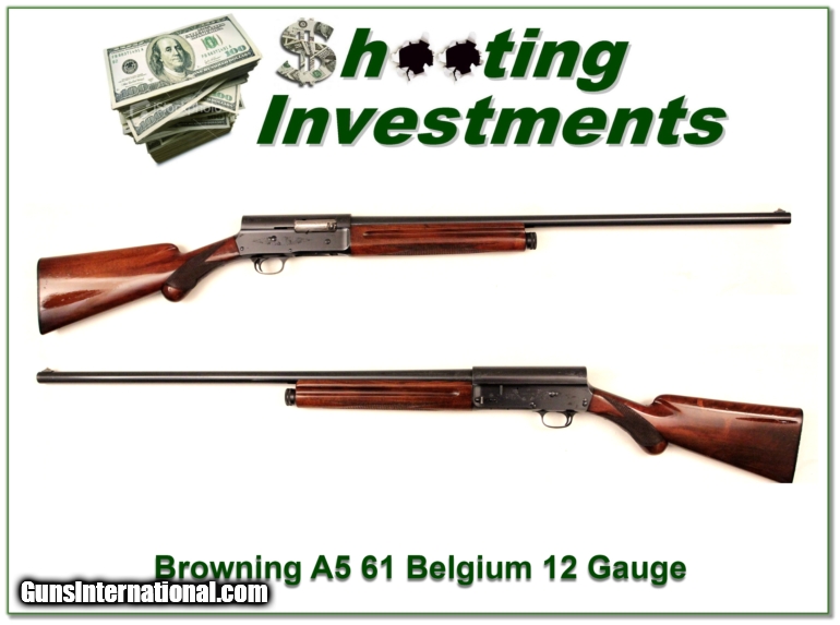 Description: This A5 12 gauge was made in Belgium in1961. It has some hunting use but is solid and will make a very nice gun you can hunt yet still expect to increase in value over time. It has a plain 30in Full choked barrel. This is a Shooing Investment. Shipping and insurance is $30 or $18 more if you want it shipped in a new Plano hard case. (I now consign quality firearms only 10%! Let me know if you have any you would like to sell!) [15-0062] Payment: Payment is by Money Order, Cashiers Check or Personal Check. I can now also accept MasterCard and Visa with a 3% convenience fee. PayPal can be used for some items but never firearms. Please let us know if you would like to pay via PayPal. Shipping: The shipping charge will be listed in each description. It is $30 for most guns. Some heavy guns or those insured for over $2000 may be higher. Shipments to Alaska and Hawaii are higher because air shipment is required. Most firearms are shipped within 5 days of receipt of payment. We prefer shipping at the beginning of the week to avoid firearms in transit over weekends. We package all shipments carefully and insure them for the full purchase price, rounded up to the next $100. In the unlikely event that damage occurs, it is important that you save all packaging material for the claims process. Optics are shipped Priority Mail and most other non-firearm shipments are shipped First Class. Returns: Our return policy is simple. If for any reason you are not pleased with your purchase, you may return your item for a refund. The only exception is ammunition, it cannot be returned. It is important to us that you are happy. Guns cannot be fired or dissembled before returning them and must be returned in the same condition as received. Notification of a return must occur with-in 3 days of receipt at your dealer. Shipping, convenience and dealer fees are not refundable and are the responsibility of the buyer. Lay-a-way: If needed, we offer a 60 day lay-a-way option on most firearms. It is 1/3 now, 1/3 in 30 days and 1/3 in 60 days. Lay-a-way firearm sales are final. Consigning your firearms with Shooting Investments: We will help you get top dollar for your firearms. While most local guns shops charge 20% or more, our fee is only 10% with a minimum of $50. At your local gun shop it might take months to sell. Selling on-line provides instant access to thousands of interested buyers. You won’t find any other on-line dealer willing to sell your firearms for only 10% or listing every gun on 4 separate s. Selling through an House typically costs the seller 15% and the buyer an addition 15% (so 30%) and you have to wait several months to sell and longer to receive funds. If properly priced, we will sell your firearms in a week or two. Send us an email or give us a call and we’ll explain how easy it is for you to get top dollar. Trading: We collect guns and usually just trade for guns we want to add to our collections. We often sell guns for others wanting to purchase one of ours. We find this the most fair to both of us. Our Commission is only 10% and we hold the gun you want until yours sells. Please contact us if you want to sell one of yours to buy one of ours. Help for California Buyers: We are happy to ship to California. It is the buyer’s responsibility to make sure any item you buy is legal in your state. We are also happy to help with your purchase of a firearm from someone other than us. If you see a gun you would like to buy but the seller can’t or won’t ship to California we can help. You buy the gun and have it shipped to us. We’ll then ship it to your California dealer. The cost for this service is only $30 + shipping. Let me know if we can help! SOLD |
