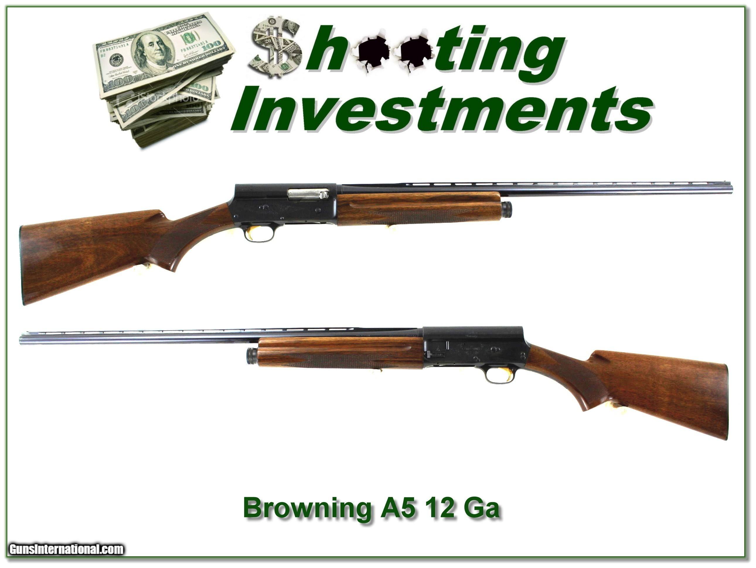Description: This is a 1971 Belgium made Browning A5 20 Gauge. It is in excellent condition showing light use. I don’t see any gold trigger wear and just light thinning on the carry points. It has a 28in Vent Rib full barrel. The wood has just a few minor marks. It will make a classic field gun or be a fine addition to your collection! Shipping and insurance is $49. Please email me with any questions or larger pictures. (Consign your quality firearms with Shooting Investments for only 12%! Let me know if you have any you would like to sell!) 24-0210 Payment: Payment is by Money Order, Cashier’s Check or Personal Check. I can now also accept Credit Cards (MasterCard, Visa, Discover & American Express) with a 3% convenience fee. Shipping: The shipping charge will be listed in each description. It is $49 for most firearms. Some heavy guns or those insured for over $2000 will be higher. Shipments to Alaska and Hawaii are higher because air shipment is required. Most firearms are shipped on Tuesday and Thursday and usually in 5 days of receipt of payment. We package all shipments carefully and insure them. Optics are shipped Priority Mail and most other non-firearm shipments are shipped First Class. Returns: Our return policy is simple. If for any reason you are not pleased with your purchase, you may return your item for a full refund of purchase price. Ammunition cannot be returned. It is important to us that you are happy. Guns cannot be fired or dissembled before returning them and they must be returned in the same condition as received. Notification of a return must occur within 3 days of receipt at your dealer. Shipping, convenience and dealer fees are not refundable and are the responsibility of the buyer. Lay-a-way: If needed, we offer a 60 day lay-a-way option on most firearms. It is 1/3 now, 1/3 in 30 days and 1/3 in 60 days. Lay-a-way firearm sales are final and cannot be returned. If a lay-a-way is not completed the first payment cannot be refunded. Consigning your firearms with Shooting Investments: We will help you get top dollar for your firearms. While most local guns shops charge 20% or more, our fee is only 12% with a minimum of $75. At your local gun shop it might take months to sell. Selling on-line provides instant access to thousands of interested buyers. You won’t find any other on-line dealer willing to sell your firearms for only 12% or listing every gun on 3 separate s. Selling through an House typically costs the seller 15% and the buyer an addition 15% (so 30%) and you have to wait several months to sell and longer to receive funds. If properly priced, we will sell your firearms within a few weeks. Send us an email or give us a call and we’ll explain how easy it is for you to get top dollar. Trading: Trading for us is really just buying your gun to re-sell. If you have a gun you want to trade, please email a picture and we will let you know what we can give for it. You will always get more if we sell it for you on consignment. SOLD |
