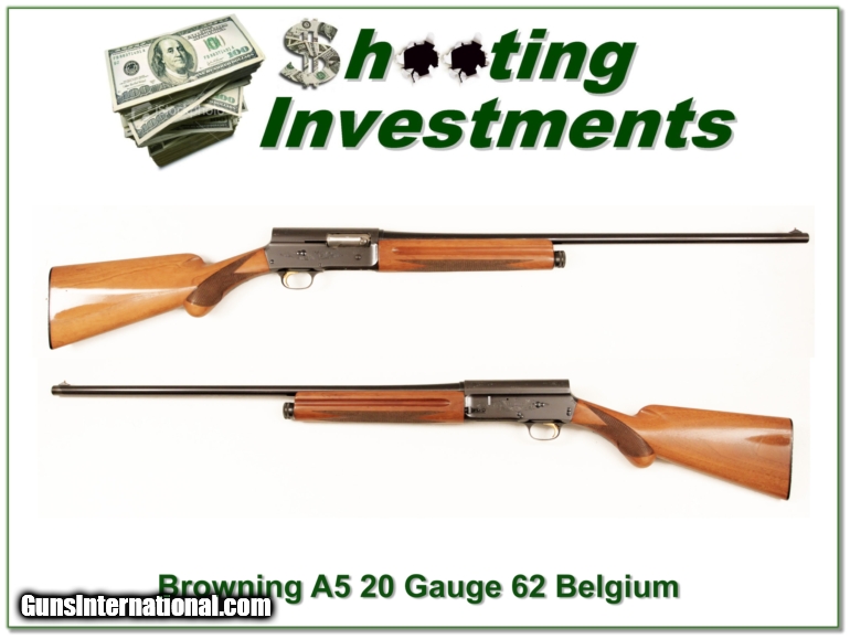 Description: This Browning A5 29 gauge was made in Belgium in 1962. It has beautiful blond wood and is all original. The blue is excellent showing little use. The barrel is a 28in Modified. The wood has only a few marks from use. This will make a classic field gun that will continue to increase in value over time. Or for about the same price you can buy a new high tech plastic feeling gun that will we worth about $300 less that you pay for it in a few year. Smart Money buys the Browning! Shipping and insurance is $30 and please email me with any questions or larger pictures. (I now consign quality firearms only 10%! Let me know if you have any you would like to sell!) [14-1033] Payment: Payment is by Money Order, Cashiers Check or Personal Check. I can now also accept MasterCard and Visa with a 3% convenience fee. PayPal can be used for some items but never firearms. Please let us know if you would like to pay via PayPal. Shipping: The shipping charge will be listed in each description. It is $30 for most guns. Some heavy guns or those insured for over $2000 may be higher. Shipments to Alaska and Hawaii are higher because air shipment is required. Most firearms are shipped within 5 days of receipt of payment. We prefer shipping at the beginning of the week to avoid firearms in transit over weekends. We package all shipments carefully and insure them for the full purchase price, rounded up to the next $100. In the unlikely event that damage occurs, it is important that you save all packaging material for the claims process. Optics are shipped Priority Mail and most other non-firearm shipments are shipped First Class. Returns: Our return policy is simple. If for any reason you are not pleased with your purchase, you may return your item for a refund. The only exception is ammunition, it cannot be returned. It is important to us that you are happy. Guns cannot be fired or dissembled before returning them and must be returned in the same condition as received. Notification of a return must occur with-in 3 days of receipt at your dealer. Shipping, convenience and dealer fees are not refundable and are the responsibility of the buyer. Lay-a-way: If needed, we offer a 60 day lay-a-way option on most firearms. It is 1/3 now, 1/3 in 30 days and 1/3 in 60 days. Lay-a-way firearm sales are final. Consigning your firearms with Shooting Investments: We will help you get top dollar for your firearms. While most local guns shops charge 20% or more, our fee is only 10% with a minimum of $50. At your local gun shop it might take months to sell. Selling on-line provides instant access to thousands of interested buyers. You won’t find any other on-line dealer willing to sell your firearms for only 10% or listing every gun on 4 separate s. Selling through an House typically costs the seller 15% and the buyer an addition 15% (so 30%) and you have to wait several months to sell and longer to receive funds. If properly priced, we will sell your firearms in a week or two. Send us an email or give us a call and we’ll explain how easy it is for you to get top dollar. Trading: We collect guns and usually just trade for guns we want to add to our collections. We often sell guns for others wanting to purchase one of ours. We find this the most fair to both of us. Our Commission is only 10% and we hold the gun you want until yours sells. Please contact us if you want to sell one of yours to buy one of ours. Help for California Buyers: We are happy to ship to California. It is the buyer’s responsibility to make sure any item you buy is legal in your state. We are also happy to help with your purchase of a firearm from someone other than us. If you see a gun you would like to buy but the seller can’t or won’t ship to California we can help. You buy the gun and have it shipped to us. We’ll then ship it to your California dealer. The cost for this service is only $30 + shipping. Let me know if we can help! SOLD |