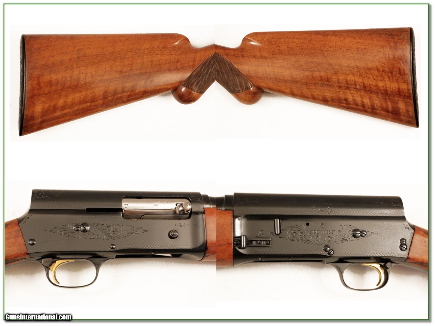Description: This is a Browning A5 20 Gauge. It was made in Belgium in 1962 and has nicer figure in the wood than most. This one has been professional re-blued. I’m not sure why as all the engraving is there and I see no polished spots. I believe the wood has the original finish. The barrel is a 28in full. This will make a nice classic hunting gun that should increase in value over time. That is why it is a Shooting Investment. Shipping and insurance is $30 or $18 more if you want it shipped in a new Plano hard case. Please email me with any questions or larger pictures. (I now consign quality firearms only 10%! Let me know if you have any you would like to sell!) [15-1022] Payment: Payment is by Money Order, Cashiers Check or Personal Check. I can now also accept MasterCard and Visa with a 3% convenience fee. PayPal can be used for some items but never firearms. Please let us know if you would like to pay via PayPal. Shipping: The shipping charge will be listed in each description. It is $30 for most guns. Some heavy guns or those insured for over $2000 may be higher. Shipments to Alaska and Hawaii are higher because air shipment is required. Most firearms are shipped within 5 days of receipt of payment. We prefer shipping at the beginning of the week to avoid firearms in transit over weekends. We package all shipments carefully and insure them for the full purchase price, rounded up to the next $100. In the unlikely event that damage occurs, it is important that you save all packaging material for the claims process. Optics are shipped Priority Mail and most other non-firearm shipments are shipped First Class. Returns: Our return policy is simple. If for any reason you are not pleased with your purchase, you may return your item for a refund. The only exception is ammunition, it cannot be returned. It is important to us that you are happy. Guns cannot be fired or dissembled before returning them and must be returned in the same condition as received. Notification of a return must occur with-in 3 days of receipt at your dealer. Shipping, convenience and dealer fees are not refundable and are the responsibility of the buyer. Lay-a-way: If needed, we offer a 60 day lay-a-way option on most firearms. It is 1/3 now, 1/3 in 30 days and 1/3 in 60 days. Lay-a-way firearm sales are final. Consigning your firearms with Shooting Investments: We will help you get top dollar for your firearms. While most local guns shops charge 20% or more, our fee is only 10% with a minimum of $50. At your local gun shop it might take months to sell. Selling on-line provides instant access to thousands of interested buyers. You won’t find any other on-line dealer willing to sell your firearms for only 10% or listing every gun on 4 separate s. Selling through an House typically costs the seller 15% and the buyer an addition 15% (so 30%) and you have to wait several months to sell and longer to receive funds. If properly priced, we will sell your firearms in a week or two. Send us an email or give us a call and we’ll explain how easy it is for you to get top dollar. Trading: We collect guns and usually just trade for guns we want to add to our collections. We often sell guns for others wanting to purchase one of ours. We find this the most fair to both of us. Our Commission is only 10% and we hold the gun you want until yours sells. Please contact us if you want to sell one of yours to buy one of ours. Help for California Buyers: We are happy to ship to California. It is the buyer’s responsibility to make sure any item you buy is legal in your state. We are also happy to help with your purchase of a firearm from someone other than us. If you see a gun you would like to buy but the seller can’t or won’t ship to California we can help. You buy the gun and have it shipped to us. We’ll then ship it to your California dealer. The cost for this service is only $30 + shipping. Let me know if we can help! SOLD |