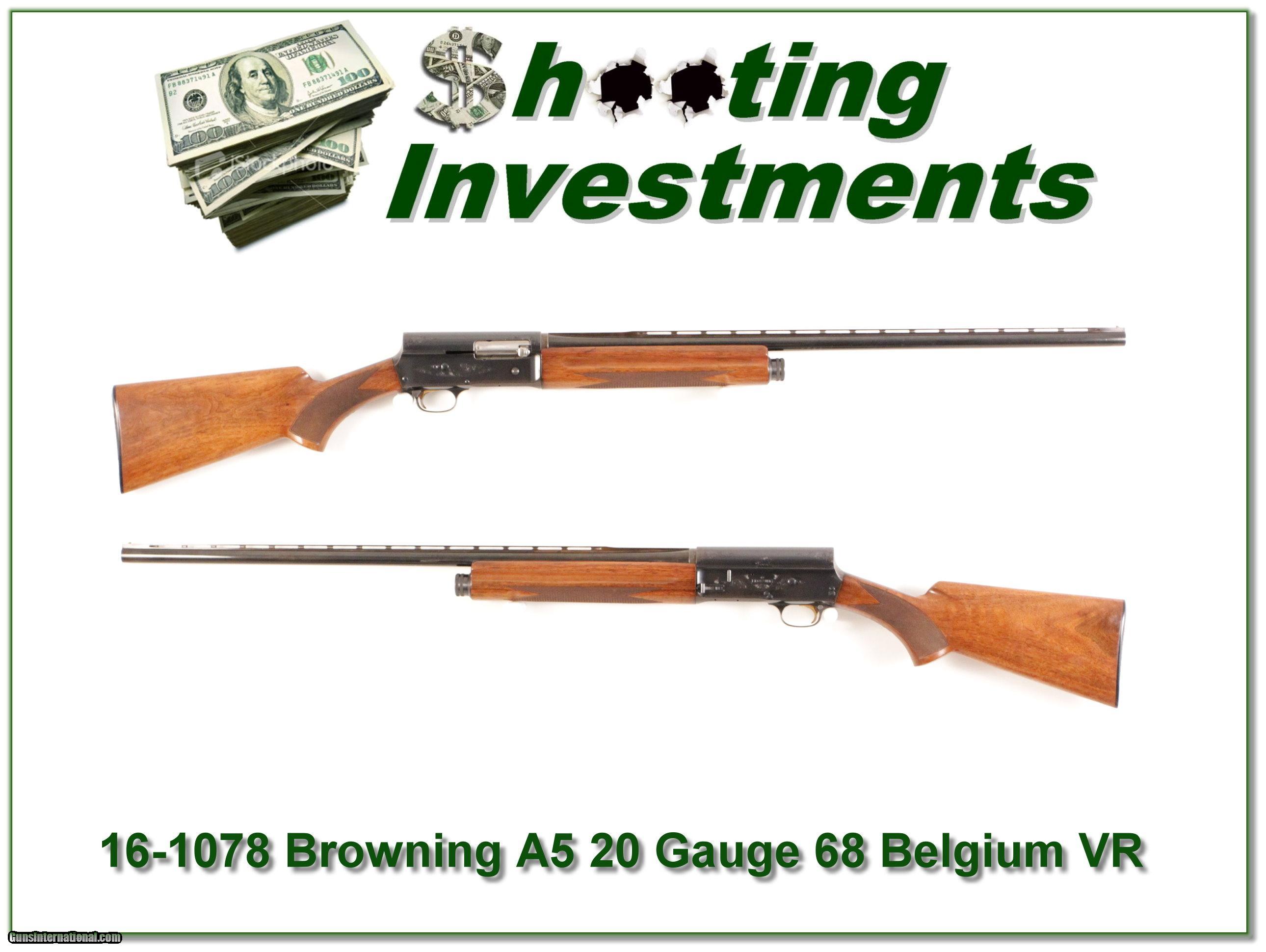 Description: This Browning A5 20 Gauge was made in Belgium in 1968. It has a 28in Vent Rib Modified barrel and honey colored wood. It has some hunting use as seen with marks here and there. It will make a classic hunting gun and is one you can use yet still expect to increase in value over time. It is a real Shooting Investment! Shipping and insurance is $35 or $15 more if you want it shipped in a new Plano hard case. Please email me with any questions or larger pictures. (I now consign quality firearms only 10%! Let me know if you have any you would like to sell!) [16-1078] Payment: Payment is by Money Order, Cashiers Check or Personal Check. I can now also accept MasterCard and Visa with a 3% convenience fee. PayPal can be used for some items but never firearms. Please let us know if you would like to pay via PayPal. Shipping: The shipping charge will be listed in each description. It is $35 for most guns. Some heavy guns or those insured for over $2000 will be higher. Shipments to Alaska and Hawaii are higher because air shipment is required. Most firearms are shipped within 5 days of receipt of payment. We prefer shipping at the beginning of the week to avoid firearms in transit over weekends. We package all shipments carefully and insure them for the full purchase price, rounded up to the next $100. In the unlikely event that damage occurs, it is important that you save all packaging material for the claims process. Optics are shipped Priority Mail and most other non-firearm shipments are shipped First Class. Returns: Our return policy is simple. If for any reason you are not pleased with your purchase, you may return your item for a refund. The only exception is ammunition, it cannot be returned. It is important to us that you are happy. Guns cannot be fired or dissembled before returning them and must be returned in the same condition as received. Notification of a return must occur with-in 3 days of receipt at your dealer. Shipping, convenience and dealer fees are not refundable and are the responsibility of the buyer. Lay-a-way: If needed, we offer a 60 day lay-a-way option on most firearms. It is 1/3 now, 1/3 in 30 days and 1/3 in 60 days. Lay-a-way firearm sales are final. Consigning your firearms with Shooting Investments: We will help you get top dollar for your firearms. While most local guns shops charge 20% or more, our fee is only 10% with a minimum of $50. At your local gun shop it might take months to sell. Selling on-line provides instant access to thousands of interested buyers. You won’t find any other on-line dealer willing to sell your firearms for only 10% or listing every gun on 4 separate s. Selling through an House typically costs the seller 15% and the buyer an addition 15% (so 30%) and you have to wait several months to sell and longer to receive funds. If properly priced, we will sell your firearms in a week or two. Send us an email or give us a call and we’ll explain how easy it is for you to get top dollar. Trading: We collect guns and usually just trade for guns we want to add to our collections. We often sell guns for others wanting to purchase one of ours. We find this the most fair to both of us. Our Commission is only 10% and we hold the gun you want until yours sells. Please contact us if you want to sell one of yours to buy one of ours. Help for California Buyers: We are happy to ship to California. It is the buyer’s responsibility to make sure any item you buy is legal in your state. We are also happy to help with your purchase of a firearm from someone other than us. If you see a gun you would like to buy but the seller can’t or won’t ship to California we can help. You buy the gun and have it shipped to us. We’ll then ship it to your California dealer. The cost for this service is only $30 + shipping. Let me know if we can help! SOLD |