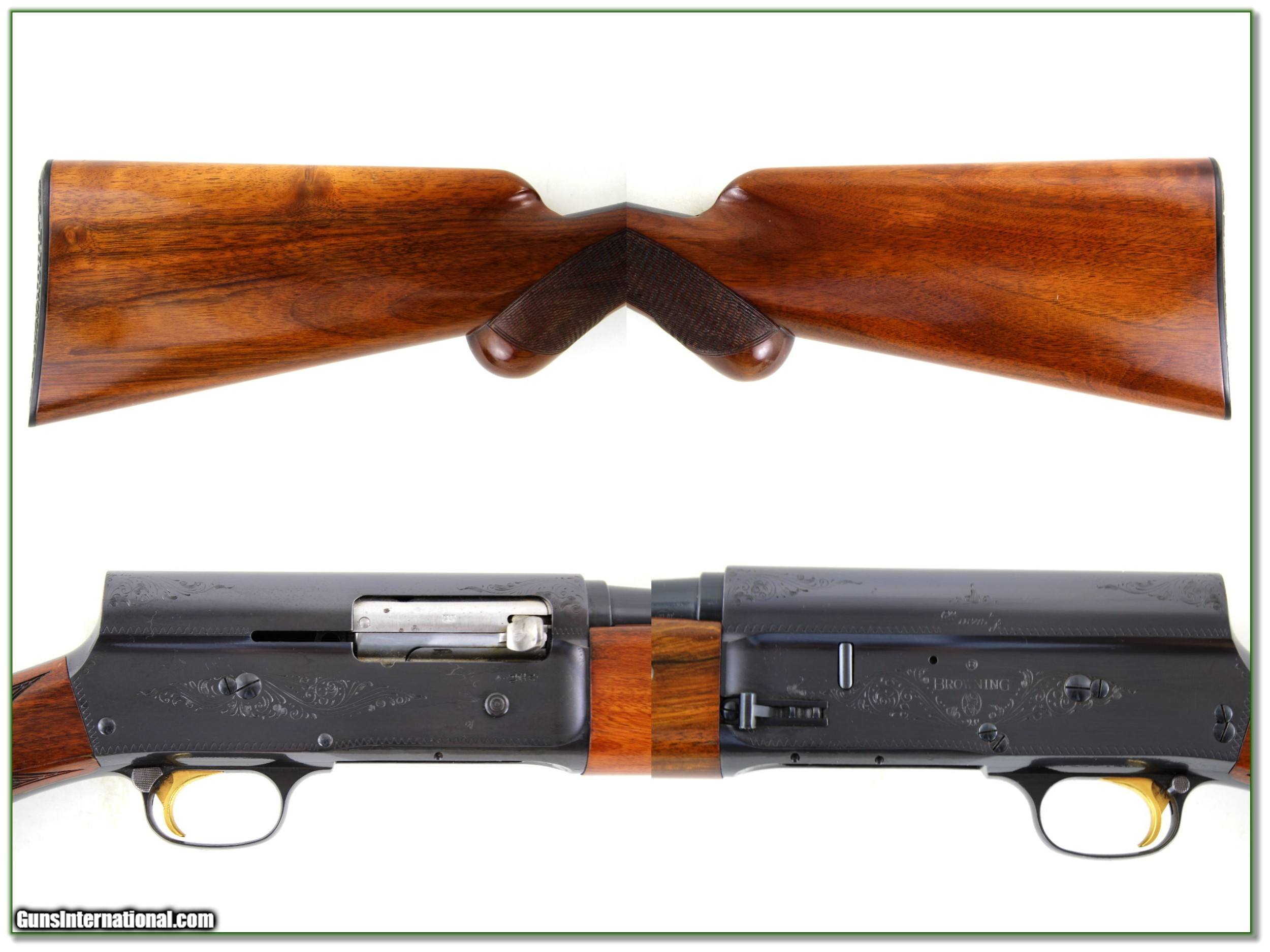 Description: Collectors and hunters, this is an excellent condition 1961 made Belgium A5 20 gauge. It is all original with no edge, recoil or gold trigger wear. I am sure not fired a lot. The original rust blue is excellent. The wood has excellent grain and only a few minor marks. It has a 26in IC barrel and will make a classic field gun or be a fine addition to your collection. Either way it is a real Shooting Investment! Shipping and insurance is $39. Please email me with any questions or larger pictures. (Consign your quality firearms with Shooting Investments for only 12%! Let me know if you have any you would like to sell!) 21-1527 Payment: Payment is by Money Order, Cashiers Check or Personal Check. I can now also accept Credit Cards (MasterCard, Visa, Discover & American Express) with a 3% convenience fee. Shipping: The shipping charge will be listed in each description. It is $39 for most firearms. Some heavy guns or those insured for over $2000 will be higher. Shipments to Alaska and Hawaii are higher because air shipment is required. Most firearms are shipped on Tuesday and Thursday and usually in 5 days of receipt of payment. We package all shipments carefully and insure them. Optics are shipped Priority Mail and most other non-firearm shipments are shipped First Class. Returns: Our return policy is simple. If for any reason you are not pleased with your purchase, you may return your item for a full refund of purchase price. Ammunition cannot be returned. It is important to us that you are happy. Guns cannot be fired or dissembled before returning them and they must be returned in the same condition as received. Notification of a return must occur with-in 3 days of receipt at your dealer. Shipping, convenience and dealer fees are not refundable and are the responsibility of the buyer. Lay-a-way: If needed, we offer a 60 day lay-a-way option on most firearms. It is 1/3 now, 1/3 in 30 days and 1/3 in 60 days. Lay-a-way firearm sales are final and if not completed the first payment cannot be returned. Consigning your firearms with Shooting Investments: We will help you get top dollar for your firearms. While most local guns shops charge 20% or more, our fee is only 12% with a minimum of $75. At your local gun shop it might take months to sell. Selling on-line provides instant access to thousands of interested buyers. You won’t find any other on-line dealer willing to sell your firearms for only 12% or listing every gun on 3 separate s. Selling through an House typically costs the seller 15% and the buyer an addition 15% (so 30%) and you have to wait several months to sell and longer to receive funds. If properly priced, we will sell your firearms in a few weeks. Send us an email or give us a call and we’ll explain how easy it is for you to get top dollar. Trading: Trading for use is really just buying your gun to re-sell. If you have a gun you want to trade, please email a picture and we will let you know what we can give or it. You will always get more if we sell it for you on consignment. Help for California Buyers: We are happy to ship to California. It is the buyer’s responsibility to make sure any item you buy is legal in your state. We are also happy to help with your purchase of a firearm from someone other than us. If you see a gun you would like to buy but the seller can’t or won’t ship to California they can ship to use and we’ll then ship it to your California dealer. The cost for this service is only $30 + shipping. Let us know if we can help! SOLD |