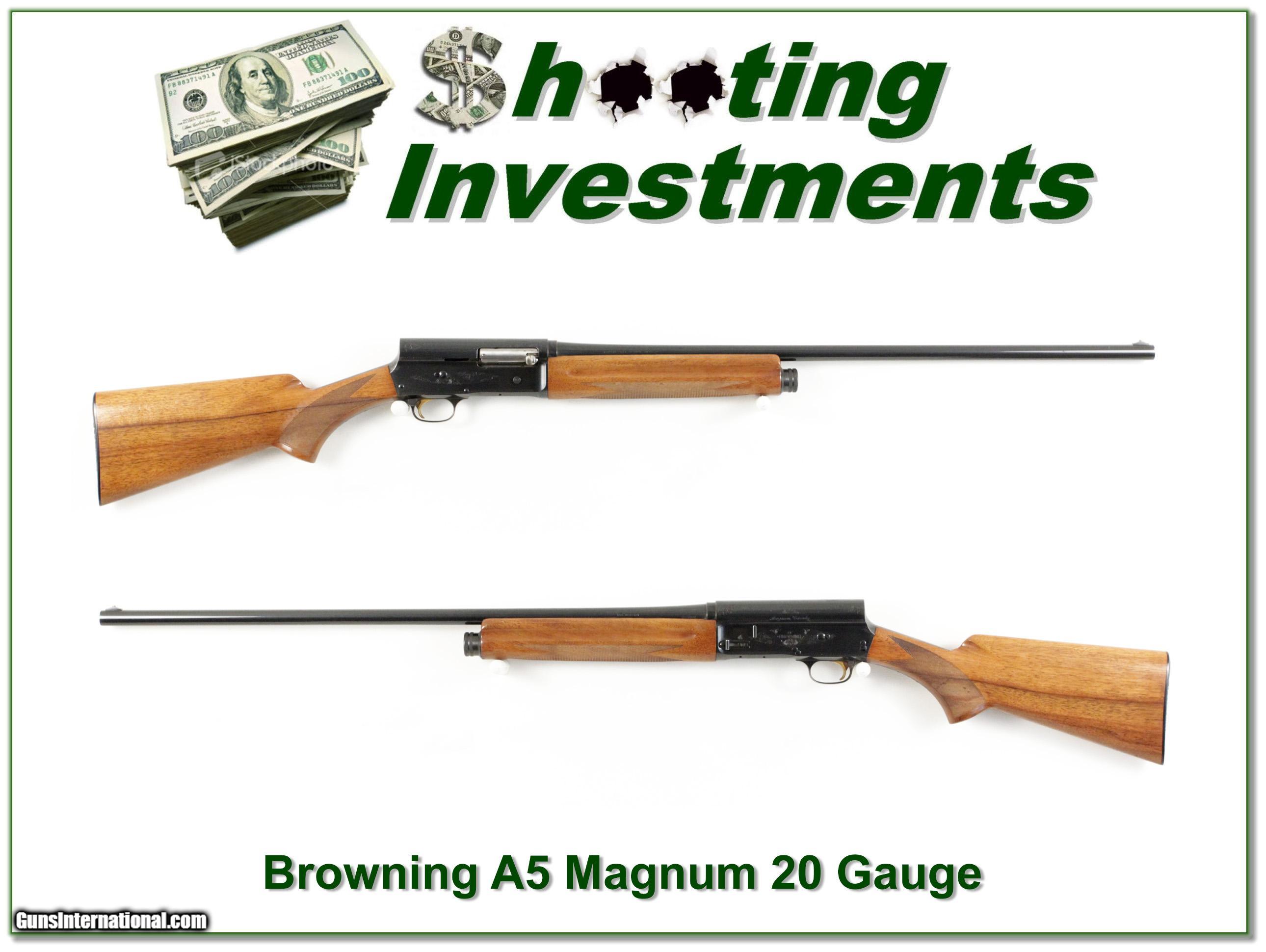 Description: This is a 1967 First Year Browning A5 Magnum 20 Gauge. It has nice honey blond wood with a dark streak and the metal is excellent. It has a 28in full barrel. The stock has scattered marks from use. It will make a fine hunting gun or addition to your collection! Shipping and insurance is $35 or $15 more if you want it shipped in a new Plano hard case. Please email me with any questions or larger pictures. (Consign your quality firearms with Shooting Investments for only 10%! Let me know if you have any you would like to sell!) 17-0867 Payment: Payment is by Money Order, Cashiers Check or Personal Check. I can now also accept MasterCard and Visa with a 3% convenience fee. PayPal can be used for some items but never firearms. Please let us know if you would like to pay via PayPal. Shipping: The shipping charge will be listed in each description. It is $35 for most guns. Some heavy guns or those insured for over $2000 will be higher. Shipments to Alaska and Hawaii are higher because air shipment is required. Most firearms are shipped within 5 days of receipt of payment. We prefer shipping at the beginning of the week to avoid firearms in transit over weekends. We package all shipments carefully and insure them for the full purchase price, rounded up to the next $100. In the unlikely event that damage occurs, it is important that you save all packaging material for the claims process. Optics are shipped Priority Mail and most other non-firearm shipments are shipped First Class. Returns: Our return policy is simple. If for any reason you are not pleased with your purchase, you may return your item for a refund. The only exception is ammunition, it cannot be returned. It is important to us that you are happy. Guns cannot be fired or dissembled before returning them and must be returned in the same condition as received. Notification of a return must occur with-in 3 days of receipt at your dealer. Shipping, convenience and dealer fees are not refundable and are the responsibility of the buyer. Lay-a-way: If needed, we offer a 60 day lay-a-way option on most firearms. It is 1/3 now, 1/3 in 30 days and 1/3 in 60 days. Lay-a-way firearm sales are final. Consigning your firearms with Shooting Investments: We will help you get top dollar for your firearms. While most local guns shops charge 20% or more, our fee is only 10% with a minimum of $50. At your local gun shop it might take months to sell. Selling on-line provides instant access to thousands of interested buyers. You won’t find any other on-line dealer willing to sell your firearms for only 10% or listing every gun on 4 separate s. Selling through an House typically costs the seller 15% and the buyer an addition 15% (so 30%) and you have to wait several months to sell and longer to receive funds. If properly priced, we will sell your firearms in a week or two. Send us an email or give us a call and we’ll explain how easy it is for you to get top dollar. Trading: We collect guns and usually just trade for guns we want to add to our collections. We often sell guns for others wanting to purchase one of ours. We find this the most fair to both of us. Our Commission is only 10% and we hold the gun you want until yours sells. Please contact us if you want to sell one of yours to buy one of ours. Help for California Buyers: We are happy to ship to California. It is the buyer’s responsibility to make sure any item you buy is legal in your state. We are also happy to help with your purchase of a firearm from someone other than us. If you see a gun you would like to buy but the seller can’t or won’t ship to California we can help. You buy the gun and have it shipped to us. We’ll then ship it to your California dealer. The cost for this service is only $30 + shipping. Let me know if we can help! SOLD |