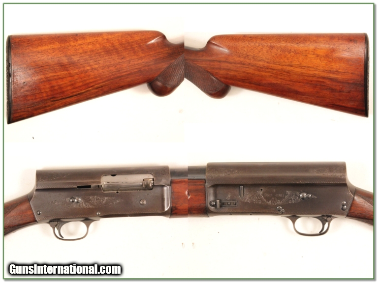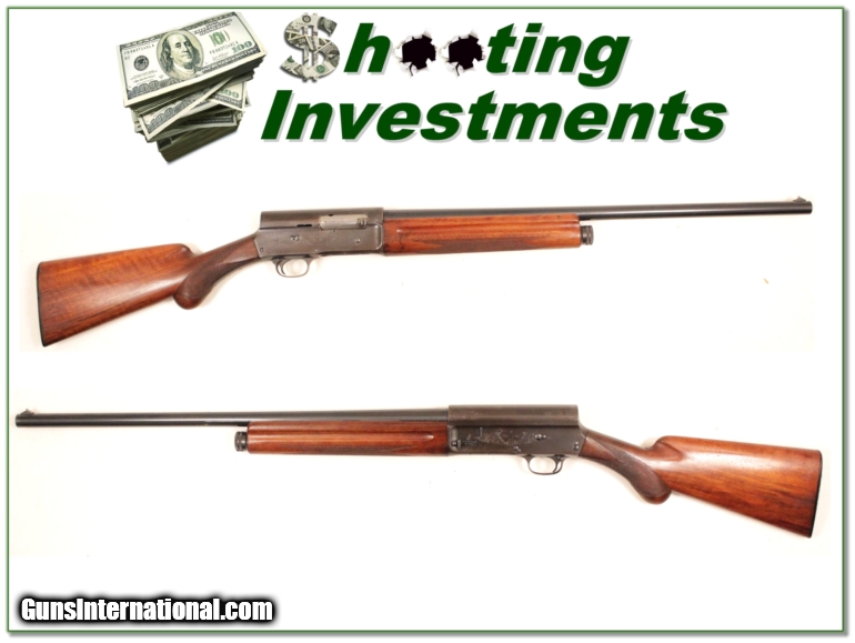Description: This A5 12 gauge was made in Belgium in 1960. It is a nice vintage A5 with a 26in IC barrel. It will make a nice classic hunting gun or could be restored. The blue has faded as seen but the engraving is all sharp. The wood is solid with only a few marks from use. This is a real Shooting Investment. You can use it and still expect it to increase in value over time. Shipping and insurance is $30 or $18 more if you want it shipped in a new Plano hard case. Please email me with any questions or larger pictures. (I now consign quality firearms only 10%! Let me know if you have any you would like to sell!) [14-0381] Payment: Payment is by Money Order, Cashiers Check or Personal Check. I can now also accept MasterCard and Visa with a 3% convenience fee. PayPal can be used for some items but never firearms. Please let us know if you would like to pay via PayPal. Shipping: The shipping charge will be listed in each description. It is $30 for most guns. Some heavy guns or those insured for over $2000 may be higher. Shipments to Alaska and Hawaii are higher because air shipment is required. Most firearms are shipped within 5 days of receipt of payment. We prefer shipping at the beginning of the week to avoid firearms in transit over weekends. We package all shipments carefully and insure them for the full purchase price, rounded up to the next $100. In the unlikely event that damage occurs, it is important that you save all packaging material for the claims process. Optics are shipped Priority Mail and most other non-firearm shipments are shipped First Class. Returns: Our return policy is simple. If for any reason you are not pleased with your purchase, you may return your item for a refund. The only exception is ammunition, it cannot be returned. It is important to us that you are happy. Guns cannot be fired or dissembled before returning them and must be returned in the same condition as received. Notification of a return must occur with-in 3 days of receipt at your dealer. Shipping, convenience and dealer fees are not refundable and are the responsibility of the buyer. Lay-a-way: If needed, we offer a 60 day lay-a-way option on most firearms. It is 1/3 now, 1/3 in 30 days and 1/3 in 60 days. Lay-a-way firearm sales are final. Consigning your firearms with Shooting Investments: We will help you get top dollar for your firearms. While most local guns shops charge 20% or more, our fee is only 10% with a minimum of $50. At your local gun shop it might take months to sell. Selling on-line provides instant access to thousands of interested buyers. You won’t find any other on-line dealer willing to sell your firearms for only 10% or listing every gun on 4 separate s. Selling through an House typically costs the seller 15% and the buyer an addition 15% (so 30%) and you have to wait several months to sell and longer to receive funds. If properly priced, we will sell your firearms in a week or two. Send us an email or give us a call and we’ll explain how easy it is for you to get top dollar. Trading: We collect guns and usually just trade for guns we want to add to our collections. We often sell guns for others wanting to purchase one of ours. We find this the most fair to both of us. Our Commission is only 10% and we hold the gun you want until yours sells. Please contact us if you want to sell one of yours to buy one of ours. Help for California Buyers: We are happy to ship to California. It is the buyer’s responsibility to make sure any item you buy is legal in your state. We are also happy to help with your purchase of a firearm from someone other than us. If you see a gun you would like to buy but the seller can’t or won’t ship to California we can help. You buy the gun and have it shipped to us. We’ll then ship it to your California dealer. The cost for this service is only $30 + shipping. Let me know if we can help! SOLD |