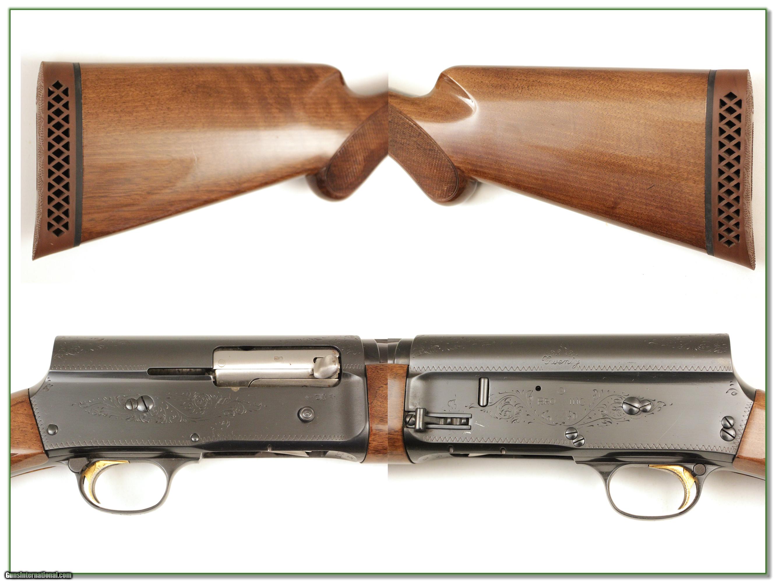 Description: This is a 1961 Belgium made Browning A5 20 Gauge. It was restored and is in excellent condition. It has the sought after a 26in IC Vent Rib barrel. It has a Browning recoil pad with 14.25in LOP. This one will make a very nice classic hunting gun! Shipping and insurance is $35 or $15 more if you want it shipped in a new Plano hard case. Please email me with any questions or larger pictures. (I now consign quality firearms only 10%! Let me know if you have any you would like to sell!) [16-0391] Payment: Payment is by Money Order, Cashiers Check or Personal Check. I can now also accept MasterCard and Visa with a 3% convenience fee. PayPal can be used for some items but never firearms. Please let us know if you would like to pay via PayPal. Shipping: The shipping charge will be listed in each description. It is $35 for most guns. Some heavy guns or those insured for over $2000 will be higher. Shipments to Alaska and Hawaii are higher because air shipment is required. Most firearms are shipped within 5 days of receipt of payment. We prefer shipping at the beginning of the week to avoid firearms in transit over weekends. We package all shipments carefully and insure them for the full purchase price, rounded up to the next $100. In the unlikely event that damage occurs, it is important that you save all packaging material for the claims process. Optics are shipped Priority Mail and most other non-firearm shipments are shipped First Class. Returns: Our return policy is simple. If for any reason you are not pleased with your purchase, you may return your item for a refund. The only exception is ammunition, it cannot be returned. It is important to us that you are happy. Guns cannot be fired or dissembled before returning them and must be returned in the same condition as received. Notification of a return must occur with-in 3 days of receipt at your dealer. Shipping, convenience and dealer fees are not refundable and are the responsibility of the buyer. Lay-a-way: If needed, we offer a 60 day lay-a-way option on most firearms. It is 1/3 now, 1/3 in 30 days and 1/3 in 60 days. Lay-a-way firearm sales are final. Consigning your firearms with Shooting Investments: We will help you get top dollar for your firearms. While most local guns shops charge 20% or more, our fee is only 10% with a minimum of $50. At your local gun shop it might take months to sell. Selling on-line provides instant access to thousands of interested buyers. You won’t find any other on-line dealer willing to sell your firearms for only 10% or listing every gun on 4 separate s. Selling through an House typically costs the seller 15% and the buyer an addition 15% (so 30%) and you have to wait several months to sell and longer to receive funds. If properly priced, we will sell your firearms in a week or two. Send us an email or give us a call and we’ll explain how easy it is for you to get top dollar. Trading: We collect guns and usually just trade for guns we want to add to our collections. We often sell guns for others wanting to purchase one of ours. We find this the most fair to both of us. Our Commission is only 10% and we hold the gun you want until yours sells. Please contact us if you want to sell one of yours to buy one of ours. Help for California Buyers: We are happy to ship to California. It is the buyer’s responsibility to make sure any item you buy is legal in your state. We are also happy to help with your purchase of a firearm from someone other than us. If you see a gun you would like to buy but the seller can’t or won’t ship to California we can help. You buy the gun and have it shipped to us. We’ll then ship it to your California dealer. The cost for this service is only $30 + shipping. Let me know if we can help! SOLD |