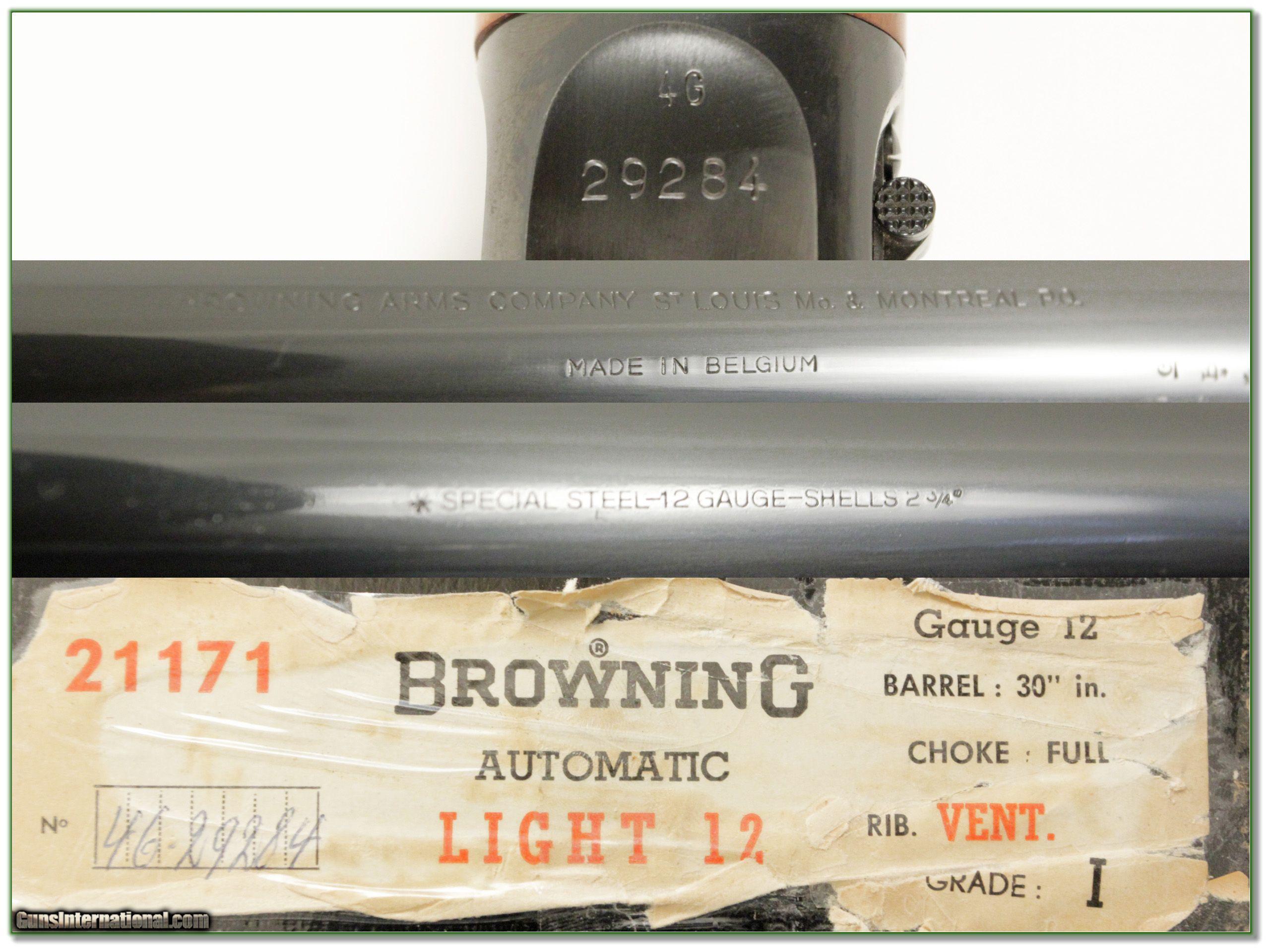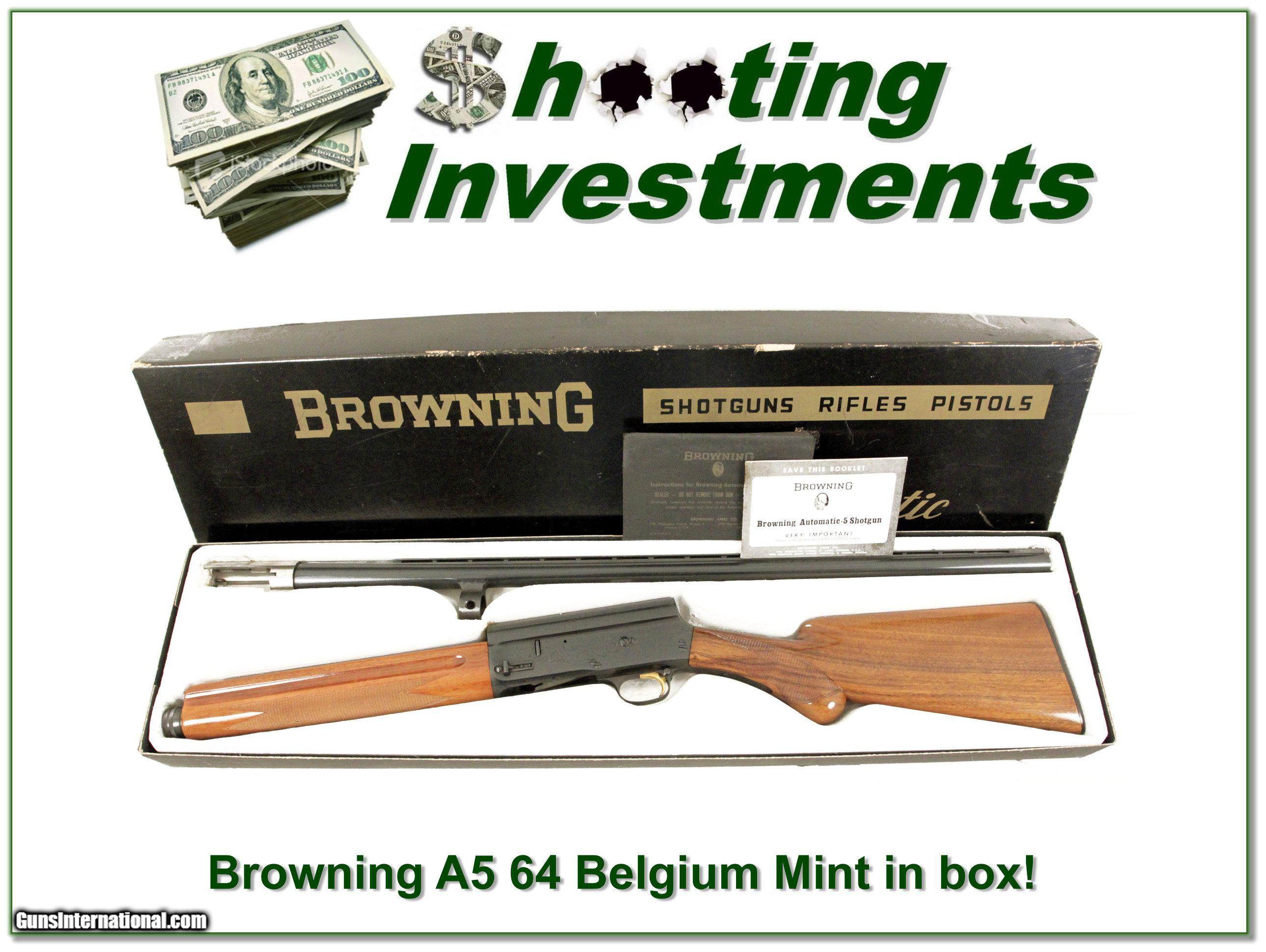 Description: Collectors, this is beautiful all-original 1964 Browning A5 Light 12. It has very nice wood grain and comes as seen in original box. It is in top collector condition. Maybe fired a couple shell with no signs of use on the blue. Wood has one small mark on comb otherwise NEW. It has a harder to find 30in Vent Rib full barrel. These are getting harder and harder to find. This is a real Shooting Investment! Shipping and insurance is $39. Please email me with any questions or larger pictures. (Consign your quality firearms with Shooting Investments for only 10%! Let me know if you have any you would like to sell!) 18-0088 Payment: Payment is by Money Order, Cashiers Check or Personal Check. I can now also accept MasterCard and Visa with a 3% convenience fee. PayPal can be used for some items but never firearms. Please let us know if you would like to pay via PayPal. Shipping: The shipping charge will be listed in each description. It is $39 for most long guns and $29 for most handguns. Some heavy guns or those insured for over $2000 will be higher. Shipments to Alaska and Hawaii are higher because air shipment is required. Most firearms are shipped on Tuesday and Thursday and usually in 5 days of receipt of payment. We package all shipments carefully and insure them. For long guns you can purchase a new Plano case for $19. They now cost us $22 when buying 100 at a time. Optics are shipped Priority Mail and most other non-firearm shipments are shipped First Class. Returns: Our return policy is simple. If for any reason you are not pleased with your purchase, you may return your item for a full refund of purchase price. Ammunition cannot be returned. It is important to us that you are happy. Guns cannot be fired or dissembled before returning them and they must be returned in the same condition as received. Notification of a return must occur with-in 3 days of receipt at your dealer. Shipping, convenience and dealer fees are not refundable and are the responsibility of the buyer. Lay-a-way: If needed, we offer a 60 day lay-a-way option on most firearms. It is 1/3 now, 1/3 in 30 days and 1/3 in 60 days. Lay-a-way firearm sales are final and if not completed the first payment cannot be returned. Consigning your firearms with Shooting Investments: We will help you get top dollar for your firearms. While most local guns shops charge 20% or more, our fee is only 10% with a minimum of $75. At your local gun shop it might take months to sell. Selling on-line provides instant access to thousands of interested buyers. You won’t find any other on-line dealer willing to sell your firearms for only 10% or listing every gun on 3 separate s. Selling through an House typically costs the seller 15% and the buyer an addition 15% (so 30%) and you have to wait several months to sell and longer to receive funds. If properly priced, we will sell your firearms in a few weeks. Send us an email or give us a call and we’ll explain how easy it is for you to get top dollar. Trading: Trading for use is really just buying your gun to re-sell. If you have a gun you want to trade, please email a picture and we will let you know what we can give or it. You will always get more if we sell it for you on consignment. Help for California Buyers: We are happy to ship to California. It is the buyer’s responsibility to make sure any item you buy is legal in your state. We are also happy to help with your purchase of a firearm from someone other than us. If you see a gun you would like to buy but the seller can’t or won’t ship to California they can ship to use and we’ll then ship it to your California dealer. The cost for this service is only $30 + shipping. Let us know if we can help! SOLD |