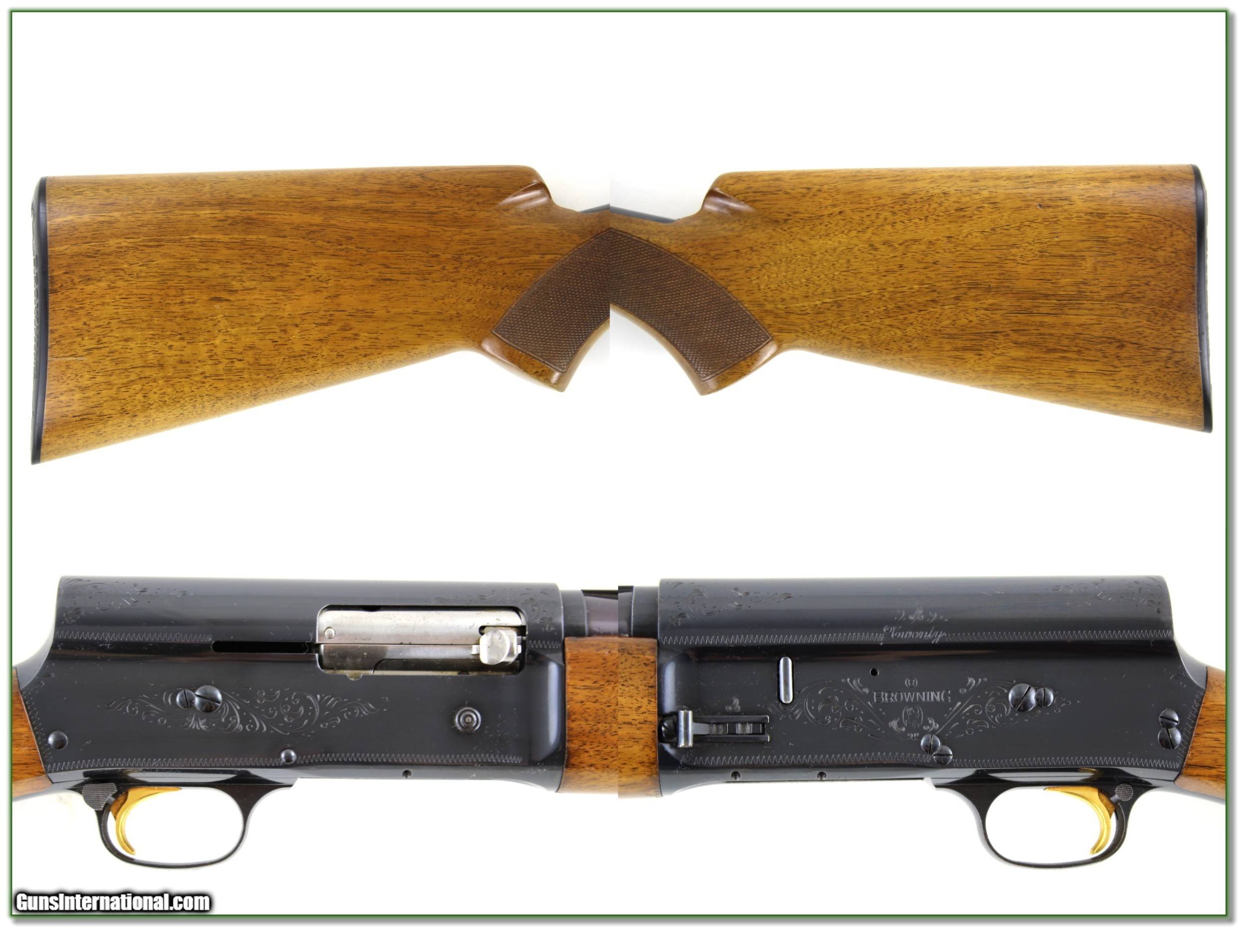 Description: This is an excellent condition Browning A5 20 Gauge. It was made in Belgium in 1969 and has honey blond wood. It has the barrel that is most often asked for; 26in Vent Rib IC! I find no edge, recoil or gold trigger wear. I am sure not many shells fired. The wood has only a few minor marks. It will make a classic field gun or be a fine addition to your collection. It is a real Shooting Investment! Shipping and insurance is $39. Please email me with any questions or larger pictures. (Consign your quality firearms with Shooting Investments for only 12%! Let me know if you have any you would like to sell!) 20-1015 Payment: Payment is by Money Order, Cashiers Check or Personal Check. I can now also accept Credit Cards (MasterCard, Visa, Discover & American Express) with a 3% convenience fee. Shipping: The shipping charge will be listed in each description. It is $39 for most firearms. Some heavy guns or those insured for over $2000 will be higher. Shipments to Alaska and Hawaii are higher because air shipment is required. Most firearms are shipped on Tuesday and Thursday and usually in 5 days of receipt of payment. We package all shipments carefully and insure them. Optics are shipped Priority Mail and most other non-firearm shipments are shipped First Class. Returns: Our return policy is simple. If for any reason you are not pleased with your purchase, you may return your item for a full refund of purchase price. Ammunition cannot be returned. It is important to us that you are happy. Guns cannot be fired or dissembled before returning them and they must be returned in the same condition as received. Notification of a return must occur with-in 3 days of receipt at your dealer. Shipping, convenience and dealer fees are not refundable and are the responsibility of the buyer. Lay-a-way: If needed, we offer a 60 day lay-a-way option on most firearms. It is 1/3 now, 1/3 in 30 days and 1/3 in 60 days. Lay-a-way firearm sales are final and if not completed the first payment cannot be returned. Consigning your firearms with Shooting Investments: We will help you get top dollar for your firearms. While most local guns shops charge 20% or more, our fee is only 12% with a minimum of $75. At your local gun shop it might take months to sell. Selling on-line provides instant access to thousands of interested buyers. You won’t find any other on-line dealer willing to sell your firearms for only 12% or listing every gun on 3 separate s. Selling through an House typically costs the seller 15% and the buyer an addition 15% (so 30%) and you have to wait several months to sell and longer to receive funds. If properly priced, we will sell your firearms in a few weeks. Send us an email or give us a call and we’ll explain how easy it is for you to get top dollar. Trading: Trading for use is really just buying your gun to re-sell. If you have a gun you want to trade, please email a picture and we will let you know what we can give or it. You will always get more if we sell it for you on consignment. Help for California Buyers: We are happy to ship to California. It is the buyer’s responsibility to make sure any item you buy is legal in your state. We are also happy to help with your purchase of a firearm from someone other than us. If you see a gun you would like to buy but the seller can’t or won’t ship to California they can ship to use and we’ll then ship it to your California dealer. The cost for this service is only $30 + shipping. Let us know if we can help! SOLD |