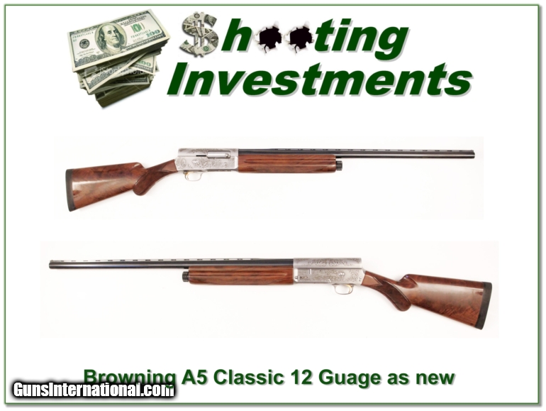 Description: Collectors and high end shooters and hunters, this is a beautiful A5 Classic 12 Gauge. It is in new condition. It was engraved in Belgium and has a 28in VR Modified barrel. The wood outstanding and it has Decelerator recoil pad. This will make an impressive gun for your collection or the field. It is a Shooting Investment. I am selling this one on consignment and as such lay-a-way can’t be used. It does of course have the standard 3 day inspection. Shipping and insurance is $30 or $18 more if you want it shipped in a new Plano hard case. Please email me with any questions or larger pictures. (I now consign quality firearms only 10%! Let me know if you have any you would like to sell!) [15-0572] Payment: Payment is by Money Order, Cashiers Check or Personal Check. I can now also accept MasterCard and Visa with a 3% convenience fee. PayPal can be used for some items but never firearms. Please let us know if you would like to pay via PayPal. Shipping: The shipping charge will be listed in each description. It is $30 for most guns. Some heavy guns or those insured for over $2000 may be higher. Shipments to Alaska and Hawaii are higher because air shipment is required. Most firearms are shipped within 5 days of receipt of payment. We prefer shipping at the beginning of the week to avoid firearms in transit over weekends. We package all shipments carefully and insure them for the full purchase price, rounded up to the next $100. In the unlikely event that damage occurs, it is important that you save all packaging material for the claims process. Optics are shipped Priority Mail and most other non-firearm shipments are shipped First Class. Returns: Our return policy is simple. If for any reason you are not pleased with your purchase, you may return your item for a refund. The only exception is ammunition, it cannot be returned. It is important to us that you are happy. Guns cannot be fired or dissembled before returning them and must be returned in the same condition as received. Notification of a return must occur with-in 3 days of receipt at your dealer. Shipping, convenience and dealer fees are not refundable and are the responsibility of the buyer. Lay-a-way: If needed, we offer a 60 day lay-a-way option on most firearms. It is 1/3 now, 1/3 in 30 days and 1/3 in 60 days. Lay-a-way firearm sales are final. Consigning your firearms with Shooting Investments: We will help you get top dollar for your firearms. While most local guns shops charge 20% or more, our fee is only 10% with a minimum of $50. At your local gun shop it might take months to sell. Selling on-line provides instant access to thousands of interested buyers. You won’t find any other on-line dealer willing to sell your firearms for only 10% or listing every gun on 4 separate s. Selling through an House typically costs the seller 15% and the buyer an addition 15% (so 30%) and you have to wait several months to sell and longer to receive funds. If properly priced, we will sell your firearms in a week or two. Send us an email or give us a call and we’ll explain how easy it is for you to get top dollar. Trading: We collect guns and usually just trade for guns we want to add to our collections. We often sell guns for others wanting to purchase one of ours. We find this the most fair to both of us. Our Commission is only 10% and we hold the gun you want until yours sells. Please contact us if you want to sell one of yours to buy one of ours. Help for California Buyers: We are happy to ship to California. It is the buyer’s responsibility to make sure any item you buy is legal in your state. We are also happy to help with your purchase of a firearm from someone other than us. If you see a gun you would like to buy but the seller can’t or won’t ship to California we can help. You buy the gun and have it shipped to us. We’ll then ship it to your California dealer. The cost for this service is only $30 + shipping. Let me know if we can help! SOLD |