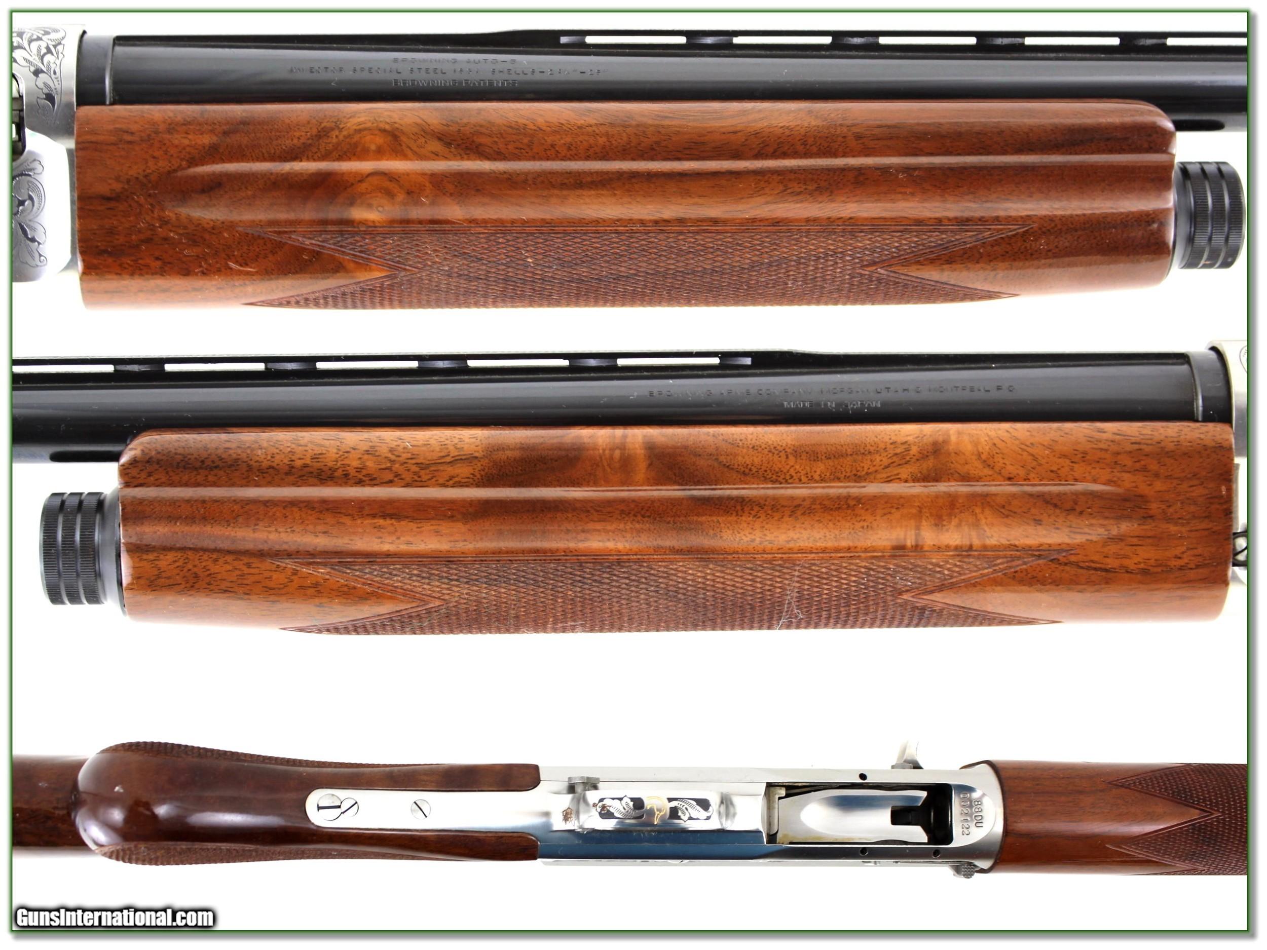 Description: This is a beautiful Browning A5 Sweet Sixteen DU gun. It has beautiful wood and I believe it is unfired. I find no marks of note on wood or metal. The barrel still has the original sticker. It comes with the factory 3 choke tubes as seen. These all have 26in VR Invector barrels. The case has one broken latch. It will make a nice addition to your collection of be an impressive gun at the range or in the field. They just don’t make them like they used too! Shipping and insurance is $59. Please email me with any questions or larger pictures. (Consign your quality firearms with Shooting Investments for only 12%! Let me know if you have any you would like to sell!) 20-0982 Payment: Payment is by Money Order, Cashiers Check or Personal Check. I can now also accept Credit Cards (MasterCard, Visa, Discover & American Express) with a 3% convenience fee. Shipping: The shipping charge will be listed in each description. It is $39 for most firearms. Some heavy guns or those insured for over $2000 will be higher. Shipments to Alaska and Hawaii are higher because air shipment is required. Most firearms are shipped on Tuesday and Thursday and usually in 5 days of receipt of payment. We package all shipments carefully and insure them. Optics are shipped Priority Mail and most other non-firearm shipments are shipped First Class. Returns: Our return policy is simple. If for any reason you are not pleased with your purchase, you may return your item for a full refund of purchase price. Ammunition cannot be returned. It is important to us that you are happy. Guns cannot be fired or dissembled before returning them and they must be returned in the same condition as received. Notification of a return must occur with-in 3 days of receipt at your dealer. Shipping, convenience and dealer fees are not refundable and are the responsibility of the buyer. Lay-a-way: If needed, we offer a 60 day lay-a-way option on most firearms. It is 1/3 now, 1/3 in 30 days and 1/3 in 60 days. Lay-a-way firearm sales are final and if not completed the first payment cannot be returned. Consigning your firearms with Shooting Investments: We will help you get top dollar for your firearms. While most local guns shops charge 20% or more, our fee is only 12% with a minimum of $75. At your local gun shop it might take months to sell. Selling on-line provides instant access to thousands of interested buyers. You won’t find any other on-line dealer willing to sell your firearms for only 12% or listing every gun on 3 separate s. Selling through an House typically costs the seller 15% and the buyer an addition 15% (so 30%) and you have to wait several months to sell and longer to receive funds. If properly priced, we will sell your firearms in a few weeks. Send us an email or give us a call and we’ll explain how easy it is for you to get top dollar. Trading: Trading for use is really just buying your gun to re-sell. If you have a gun you want to trade, please email a picture and we will let you know what we can give or it. You will always get more if we sell it for you on consignment. Help for California Buyers: We are happy to ship to California. It is the buyer’s responsibility to make sure any item you buy is legal in your state. We are also happy to help with your purchase of a firearm from someone other than us. If you see a gun you would like to buy but the seller can’t or won’t ship to California they can ship to use and we’ll then ship it to your California dealer. The cost for this service is only $30 + shipping. Let us know if we can help! SOLD |