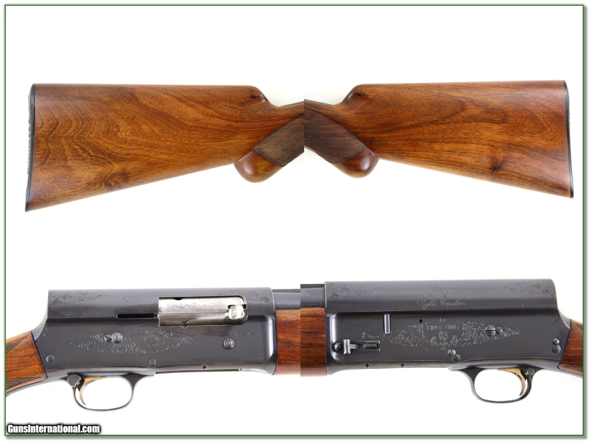 Description: This is a beautiful 1951 Belgium made Browning Light 12. All numbers match (Browning put serial numbers on forearm, receiver and barrel on early guns). The original rust blue is excellent just the lightest of thinning on the carry points. The barrel is a 30in Solid Rib full. The wood looks to have been professionally refinished and it was a top-quality job using the correct lacquer finish that looks original! It will make a fine addition to your collection! Shipping and insurance is $39. Please email me with any questions or larger pictures. (Consign your quality firearms with Shooting Investments for only 12%! Let me know if you have any you would like to sell!) 21-1049 Payment: Payment is by Money Order, Cashiers Check or Personal Check. I can now also accept Credit Cards (MasterCard, Visa, Discover & American Express) with a 3% convenience fee. Shipping: The shipping charge will be listed in each description. It is $39 for most firearms. Some heavy guns or those insured for over $2000 will be higher. Shipments to Alaska and Hawaii are higher because air shipment is required. Most firearms are shipped on Tuesday and Thursday and usually in 5 days of receipt of payment. We package all shipments carefully and insure them. Optics are shipped Priority Mail and most other non-firearm shipments are shipped First Class. Returns: Our return policy is simple. If for any reason you are not pleased with your purchase, you may return your item for a full refund of purchase price. Ammunition cannot be returned. It is important to us that you are happy. Guns cannot be fired or dissembled before returning them and they must be returned in the same condition as received. Notification of a return must occur with-in 3 days of receipt at your dealer. Shipping, convenience and dealer fees are not refundable and are the responsibility of the buyer. Lay-a-way: If needed, we offer a 60 day lay-a-way option on most firearms. It is 1/3 now, 1/3 in 30 days and 1/3 in 60 days. Lay-a-way firearm sales are final and if not completed the first payment cannot be returned. Consigning your firearms with Shooting Investments: We will help you get top dollar for your firearms. While most local guns shops charge 20% or more, our fee is only 12% with a minimum of $75. At your local gun shop it might take months to sell. Selling on-line provides instant access to thousands of interested buyers. You won’t find any other on-line dealer willing to sell your firearms for only 12% or listing every gun on 3 separate s. Selling through an House typically costs the seller 15% and the buyer an addition 15% (so 30%) and you have to wait several months to sell and longer to receive funds. If properly priced, we will sell your firearms in a few weeks. Send us an email or give us a call and we’ll explain how easy it is for you to get top dollar. Trading: Trading for use is really just buying your gun to re-sell. If you have a gun you want to trade, please email a picture and we will let you know what we can give or it. You will always get more if we sell it for you on consignment. Help for California Buyers: We are happy to ship to California. It is the buyer’s responsibility to make sure any item you buy is legal in your state. We are also happy to help with your purchase of a firearm from someone other than us. If you see a gun you would like to buy but the seller can’t or won’t ship to California they can ship to use and we’ll then ship it to your California dealer. The cost for this service is only $30 + shipping. Let us know if we can help! SOLD |