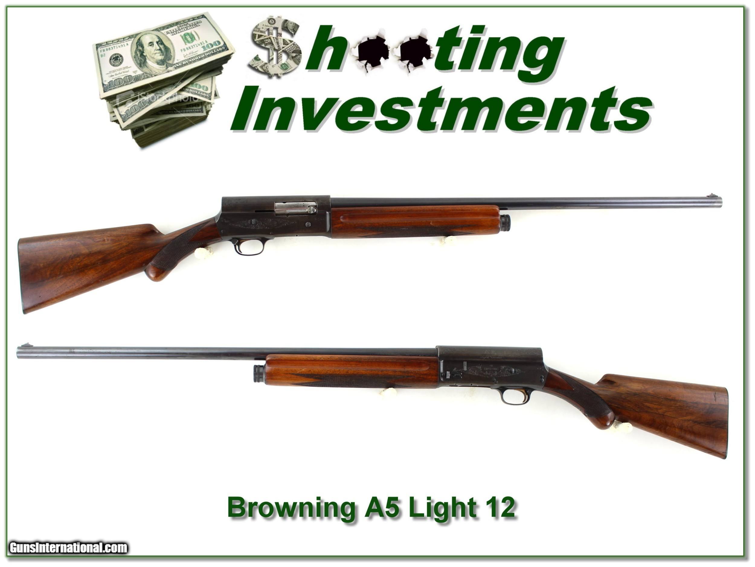 Description: This is a 1952 Belgium made Browning A5 Light 12. It is all original with matching serial numbers. The blue shows thinning on the carry points. The wood is solid with excellent grain and minor scattered marks from use. It will make a classic Browning and is one you can hunt without worrying about it! Shipping and insurance is $39. Please email me with any questions or larger pictures. (Consign your quality firearms with Shooting Investments for only 12%! Let me know if you have any you would like to sell!) 21-1066 Payment: Payment is by Money Order, Cashier’s Check or Personal Check. I can now also accept Credit Cards (MasterCard, Visa, Discover & American Express) with a 3% convenience fee. Shipping: The shipping charge will be listed in each description. It is $39 for most firearms. Some heavy guns or those insured for over $2000 will be higher. Shipments to Alaska and Hawaii are higher because air shipment is required. Most firearms are shipped on Tuesday and Thursday and usually in 5 days of receipt of payment. We package all shipments carefully and insure them. Optics are shipped Priority Mail and most other non-firearm shipments are shipped First Class. Returns: Our return policy is simple. If for any reason you are not pleased with your purchase, you may return your item for a full refund of purchase price. Ammunition cannot be returned. It is important to us that you are happy. Guns cannot be fired or dissembled before returning them and they must be returned in the same condition as received. Notification of a return must occur within 3 days of receipt at your dealer. Shipping, convenience and dealer fees are not refundable and are the responsibility of the buyer. Lay-a-way: If needed, we offer a 60 day lay-a-way option on most firearms. It is 1/3 now, 1/3 in 30 days and 1/3 in 60 days. Lay-a-way firearm sales are final and cannot be returned. If a lay-a-way is not completed the first payment cannot be refunded. Consigning your firearms with Shooting Investments: We will help you get top dollar for your firearms. While most local guns shops charge 20% or more, our fee is only 12% with a minimum of $75. At your local gun shop it might take months to sell. Selling on-line provides instant access to thousands of interested buyers. You won’t find any other on-line dealer willing to sell your firearms for only 12% or listing every gun on 3 separate s. Selling through an House typically costs the seller 15% and the buyer an addition 15% (so 30%) and you have to wait several months to sell and longer to receive funds. If properly priced, we will sell your firearms within a few weeks. Send us an email or give us a call and we’ll explain how easy it is for you to get top dollar. Trading: Trading for us is really just buying your gun to re-sell. If you have a gun you want to trade, please email a picture and we will let you know what we can give for it. You will always get more if we sell it for you on consignment. Help for California Buyers: We are happy to ship to California. It is the buyer’s responsibility to make sure any item you buy is legal in your state. We are also happy to help with your purchase of a firearm from someone other than us. If you see a gun you would like to buy but the seller can’t or won’t ship to California they can ship to use and we’ll then ship it to your California dealer. The cost for this service is only $30 + shipping. Let us know if we can help! SOLD |