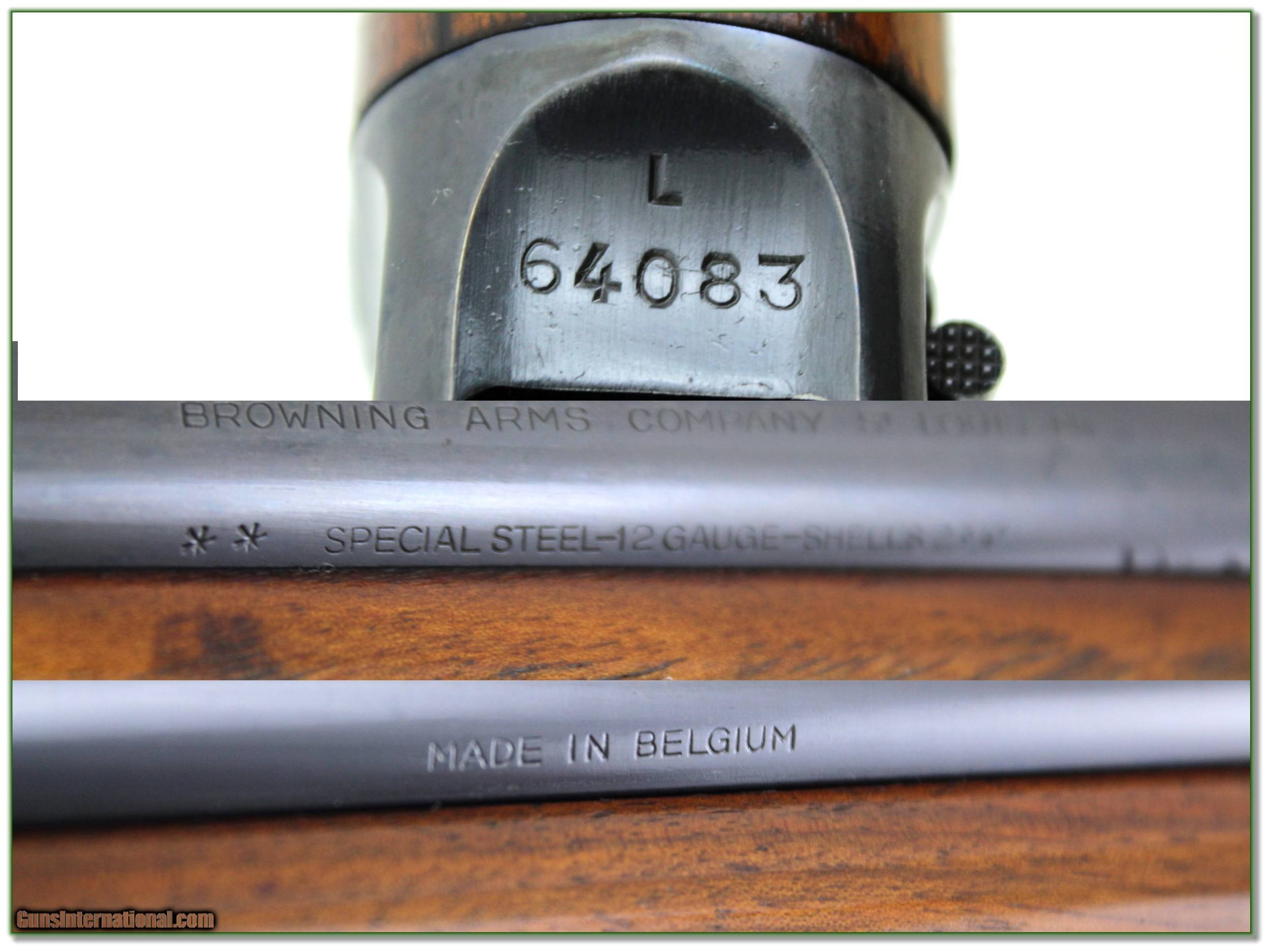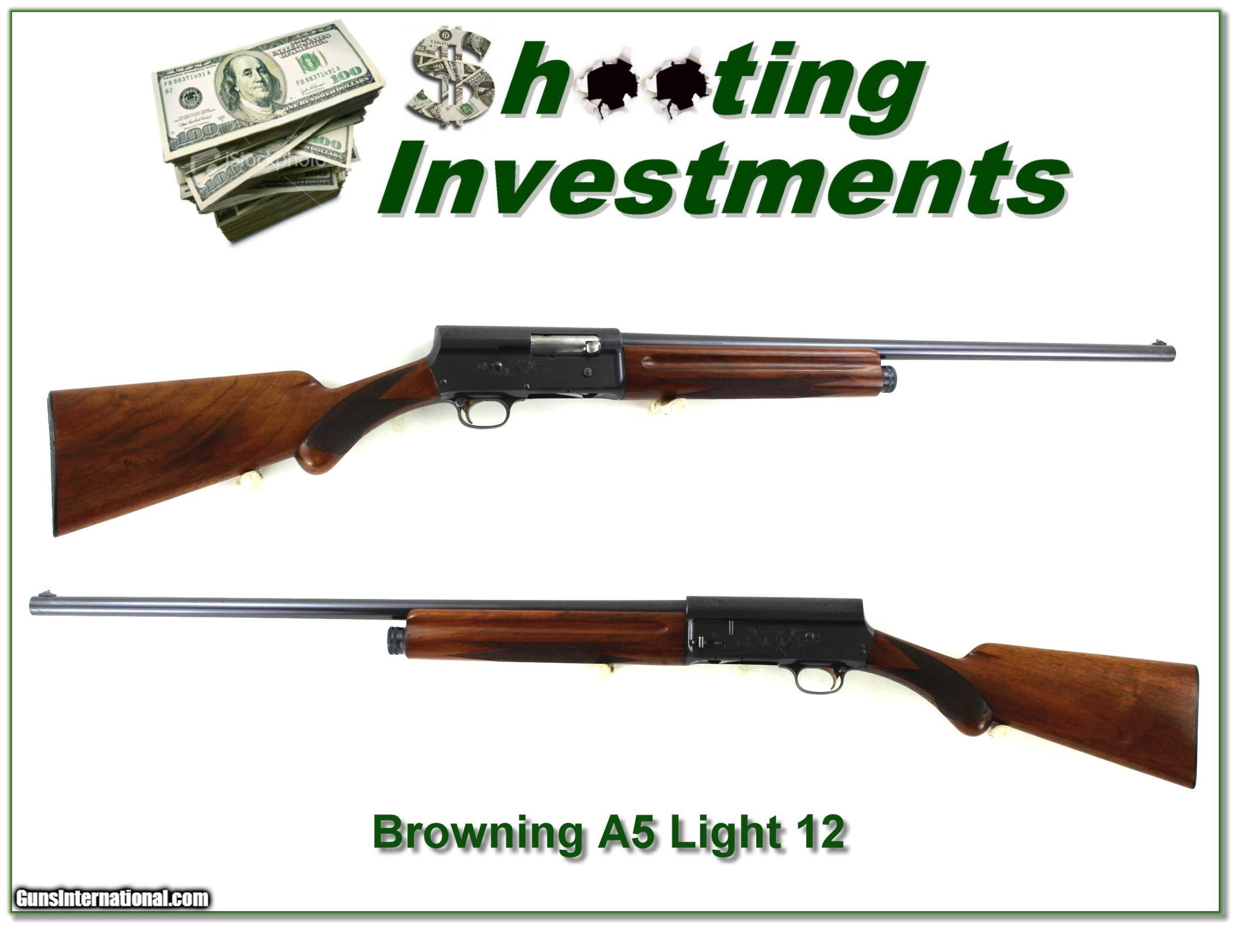 Description: This is a 1955 Belgium made Browning A5 Light 12. It has beautiful rust blue with some thinning on the carry points. The original wood has beautiful grain with some marks from field use. The barrel is 28in Modified. It will make a classic field gun and is for sure a Shooting Investment! Shipping and insurance is $49. Please email me with any questions or larger pictures. (Consign your quality firearms with Shooting Investments for only 12%! Let me know if you have any you would like to sell!) 22-1098 Payment: Payment is by Money Order, Cashiers Check or Personal Check. I can now also accept Credit Cards (MasterCard, Visa, Discover & American Express) with a 3% convenience fee. Shipping: The shipping charge will be listed in each description. It is $49 for most long guns. Some heavy guns, over 48in boxes or those insured for over $2000 will be higher. Shipments to Alaska and Hawaii are higher because air shipment is required. Most firearms are shipped on Tuesday and Thursday and usually in 5 days of receipt of payment. We package all shipments carefully and insure them. Optics are shipped Priority Mail and most other non-firearm shipments are shipped First Class. Returns: Our return policy is simple. If for any reason you are not pleased with your purchase, you may return your item for a full refund of purchase price. Ammunition cannot be returned. It is important to us that you are happy. Guns cannot be fired or dissembled before returning them and they must be returned in the same condition as received. Notification of a return must occur with-in 3 days of receipt at your dealer. Shipping, convenience and dealer fees are not refundable and are the responsibility of the buyer. Lay-a-way: If needed, we offer a 60 day lay-a-way option on most firearms. It is 1/3 now, 1/3 in 30 days and 1/3 in 60 days. Lay-a-way firearm sales are final and if not completed the first payment cannot be returned. Consigning your firearms with Shooting Investments: We will help you get top dollar for your firearms. While most local guns shops charge 20% or more, our fee is only 12% with a minimum of $75. At your local gun shop it might take months to sell. Selling on-line provides instant access to thousands of interested buyers. You won’t find any other on-line dealer willing to sell your firearms for only 12% or listing every gun on 3 separate s. Selling through an House typically costs the seller 15% and the buyer an addition 15% (so 30%) and you have to wait several months to sell and longer to receive funds. If properly priced, we will sell your firearms in a few weeks. Send us an email or give us a call and we’ll explain how easy it is for you to get top dollar. Trading: Trading for use is really just buying your gun to re-sell. If you have a gun you want to trade, please email a picture and we will let you know what we can give or it. You will always get more if we sell it for you on consignment. Help for California Buyers: We are happy to ship to California. It is the buyer’s responsibility to make sure any item you buy is legal in your state. We are also happy to help with your purchase of a firearm from someone other than us. If you see a gun you would like to buy but the seller can’t or won’t ship to California they can ship to use and we’ll then ship it to your California dealer. The cost for this service is only $30 + shipping. Let us know if we can help! SOLD |