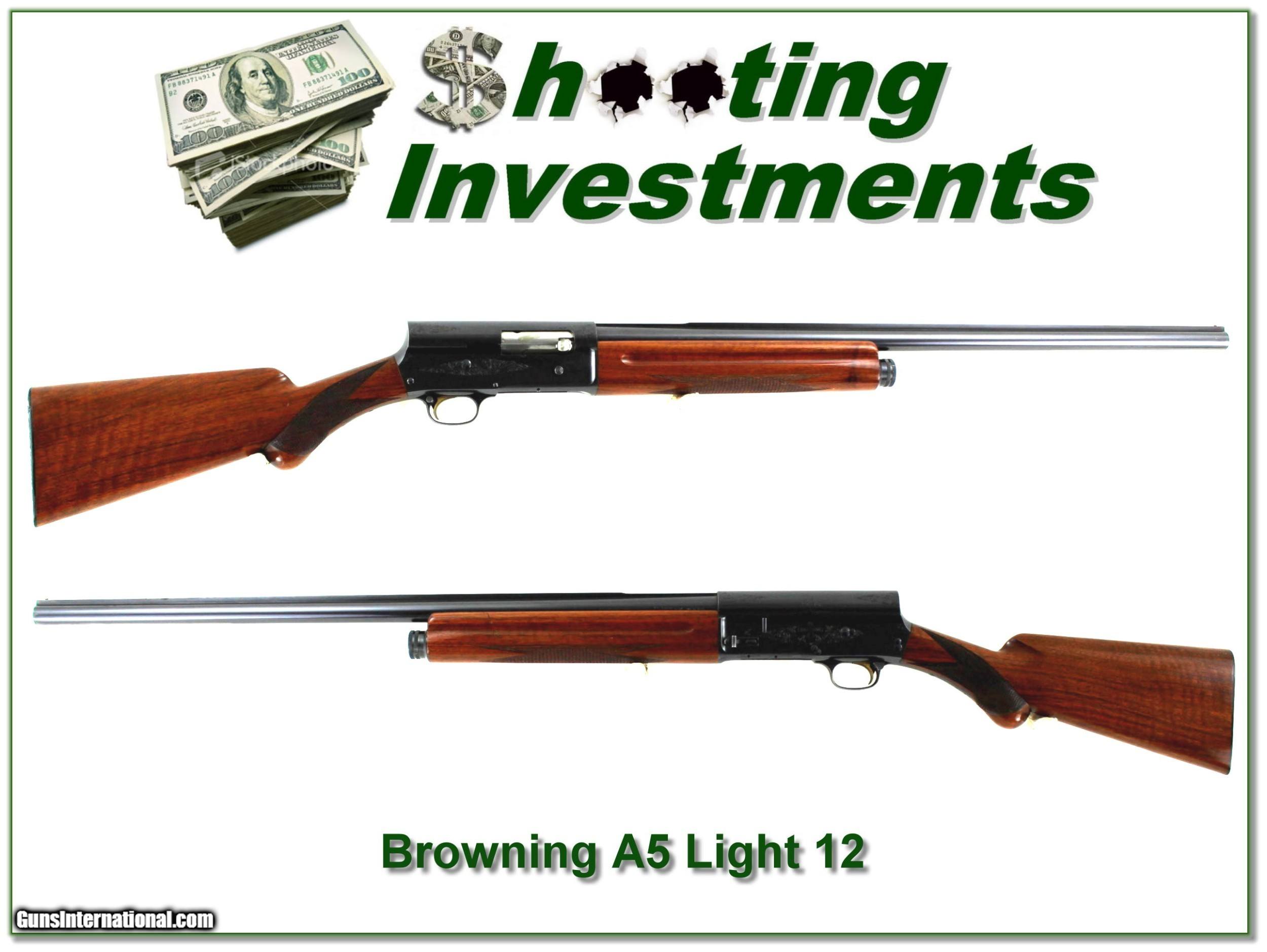 Description: This is a 1956 Belgium made Browning Light 12! It is all original with one of the last Solids ribs made. If you don’t have a solid rib Light 12 in your collection, you need one and this would be a nice choice. It has beautiful rust blue with just the lightest of sharp edge thinning. The barrel is 28in full. The original lacquer finished wood has a few marks most on the let side of the forearm. Shipping and insurance is $49. Please email me with any questions or larger pictures. (Consign your quality firearms with Shooting Investments for only 12%! Let me know if you have any you would like to sell!) 22-1148 Payment: Payment is by Money Order, Cashiers Check or Personal Check. I can now also accept Credit Cards (MasterCard, Visa, Discover & American Express) with a 3% convenience fee. Shipping: The shipping charge will be listed in each description. It is $49 for most long guns. Some heavy guns, over 48in boxes or those insured for over $2000 will be higher. Shipments to Alaska and Hawaii are higher because air shipment is required. Most firearms are shipped on Tuesday and Thursday and usually in 5 days of receipt of payment. We package all shipments carefully and insure them. Optics are shipped Priority Mail and most other non-firearm shipments are shipped First Class. Returns: Our return policy is simple. If for any reason you are not pleased with your purchase, you may return your item for a full refund of purchase price. Ammunition cannot be returned. It is important to us that you are happy. Guns cannot be fired or dissembled before returning them and they must be returned in the same condition as received. Notification of a return must occur with-in 3 days of receipt at your dealer. Shipping, convenience and dealer fees are not refundable and are the responsibility of the buyer. Lay-a-way: If needed, we offer a 60 day lay-a-way option on most firearms. It is 1/3 now, 1/3 in 30 days and 1/3 in 60 days. Lay-a-way firearm sales are final and if not completed the first payment cannot be returned. Consigning your firearms with Shooting Investments: We will help you get top dollar for your firearms. While most local guns shops charge 20% or more, our fee is only 12% with a minimum of $75. At your local gun shop it might take months to sell. Selling on-line provides instant access to thousands of interested buyers. You won’t find any other on-line dealer willing to sell your firearms for only 12% or listing every gun on 3 separate s. Selling through an House typically costs the seller 15% and the buyer an addition 15% (so 30%) and you have to wait several months to sell and longer to receive funds. If properly priced, we will sell your firearms in a few weeks. Send us an email or give us a call and we’ll explain how easy it is for you to get top dollar. Trading: Trading for use is really just buying your gun to re-sell. If you have a gun you want to trade, please email a picture and we will let you know what we can give or it. You will always get more if we sell it for you on consignment. Help for California Buyers: We are happy to ship to California. It is the buyer’s responsibility to make sure any item you buy is legal in your state. We are also happy to help with your purchase of a firearm from someone other than us. If you see a gun you would like to buy but the seller can’t or won’t ship to California they can ship to use and we’ll then ship it to your California dealer. The cost for this service is only $30 + shipping. Let us know if we can help! SOLD |