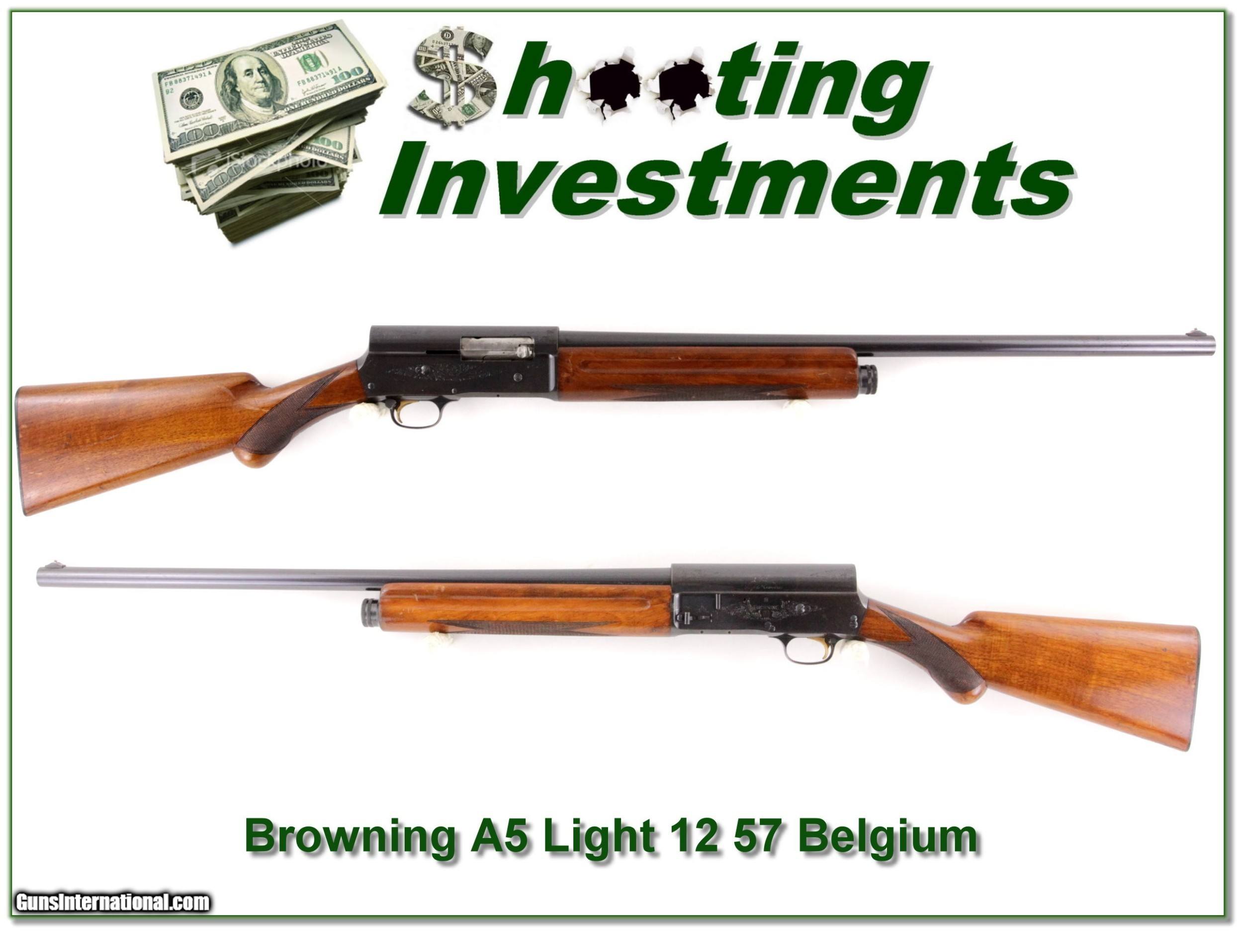 Description: This is a 1957 Belgium made Browning A5 Light 12. The blue is very good with just light edge thinning and few minor marks. The wood is solid with original horn butt and just some marks from use. The barrel is a 26in IC making this one the perfect classic bird gun! They just don’t make them like they used too! Shipping with insurance is $39. Please email me with any questions or larger pictures. (Consign your quality firearms with Shooting Investments for only 12%! Let me know if you have any you would like to sell!) 19-1526 Payment: Payment is by Money Order, Cashiers Check or Personal Check. I can now also accept Credit Cards (MasterCard, Visa, Discover & American Express) with a 3% convenience fee. PayPal can be used for some items but never for firearms. Shipping: The shipping charge will be listed in each description. It is $39 for most firearms. Some heavy guns or those insured for over $2000 will be higher. Shipments to Alaska and Hawaii are higher because air shipment is required. Most firearms are shipped on Tuesday and Thursday and usually in 5 days of receipt of payment. We package all shipments carefully and insure them. Optics are shipped Priority Mail and most other non-firearm shipments are shipped First Class. Returns: Our return policy is simple. If for any reason you are not pleased with your purchase, you may return your item for a full refund of purchase price. Ammunition cannot be returned. It is important to us that you are happy. Guns cannot be fired or dissembled before returning them and they must be returned in the same condition as received. Notification of a return must occur with-in 3 days of receipt at your dealer. Shipping, convenience and dealer fees are not refundable and are the responsibility of the buyer. Lay-a-way: If needed, we offer a 60 day lay-a-way option on most firearms. It is 1/3 now, 1/3 in 30 days and 1/3 in 60 days. Lay-a-way firearm sales are final and if not completed the first payment cannot be returned. Consigning your firearms with Shooting Investments: We will help you get top dollar for your firearms. While most local guns shops charge 20% or more, our fee is only 12% with a minimum of $75. At your local gun shop it might take months to sell. Selling on-line provides instant access to thousands of interested buyers. You won’t find any other on-line dealer willing to sell your firearms for only 12% or listing every gun on 3 separate s. Selling through an House typically costs the seller 15% and the buyer an addition 15% (so 30%) and you have to wait several months to sell and longer to receive funds. If properly priced, we will sell your firearms in a few weeks. Send us an email or give us a call and we’ll explain how easy it is for you to get top dollar. Trading: Trading for use is really just buying your gun to re-sell. If you have a gun you want to trade, please email a picture and we will let you know what we can give or it. You will always get more if we sell it for you on consignment. Help for California Buyers: We are happy to ship to California. It is the buyer’s responsibility to make sure any item you buy is legal in your state. We are also happy to help with your purchase of a firearm from someone other than us. If you see a gun you would like to buy but the seller can’t or won’t ship to California they can ship to use and we’ll then ship it to your California dealer. The cost for this service is only $30 + shipping. Let us know if we can help! SOLD |