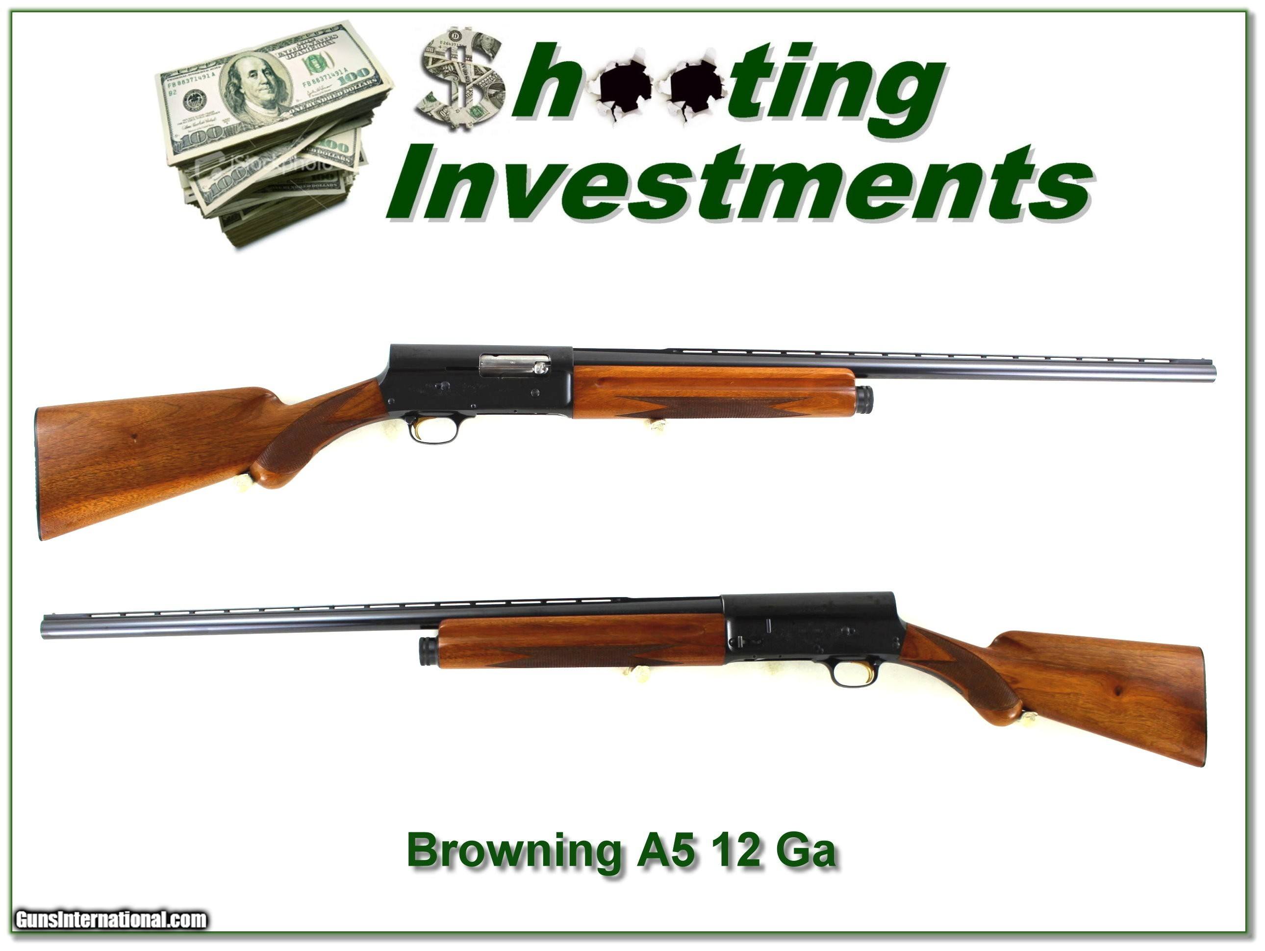 Description: This is a beautiful 1963 Belgium A5 Light 12. It is all -original with very nice honey blond wood. It has a 28in Vent Rib Modified barrel. Aside from a few spots on the receiver it is excellent with no gold trigger wear I’m sure not many shells fired. It will make a classic bird gun and they just don’t make them like they used too! I call it a Shooting Investment. Shipping and insurance is $49. Please email me with any questions or larger pictures. (Consign your quality firearms with Shooting Investments for only 12%! Let me know if you have any you would like to sell!) 23-0912 Payment: Payment is by Money Order, Cashier’s Check or Personal Check. I can now also accept Credit Cards (MasterCard, Visa, Discover & American Express) with a 3% convenience fee. Shipping: The shipping charge will be listed in each description. It is $49 for most firearms. Some heavy guns or those insured for over $2000 will be higher. Shipments to Alaska and Hawaii are higher because air shipment is required. Most firearms are shipped on Tuesday and Thursday and usually in 5 days of receipt of payment. We package all shipments carefully and insure them. Optics are shipped Priority Mail and most other non-firearm shipments are shipped First Class. Returns: Our return policy is simple. If for any reason you are not pleased with your purchase, you may return your item for a full refund of purchase price. Ammunition cannot be returned. It is important to us that you are happy. Guns cannot be fired or dissembled before returning them and they must be returned in the same condition as received. Notification of a return must occur within 3 days of receipt at your dealer. Shipping, convenience and dealer fees are not refundable and are the responsibility of the buyer. Lay-a-way: If needed, we offer a 60 day lay-a-way option on most firearms. It is 1/3 now, 1/3 in 30 days and 1/3 in 60 days. Lay-a-way firearm sales are final and cannot be returned. If a lay-a-way is not completed the first payment cannot be refunded. Consigning your firearms with Shooting Investments: We will help you get top dollar for your firearms. While most local guns shops charge 20% or more, our fee is only 12% with a minimum of $75. At your local gun shop it might take months to sell. Selling on-line provides instant access to thousands of interested buyers. You won’t find any other on-line dealer willing to sell your firearms for only 12% or listing every gun on 3 separate s. Selling through an House typically costs the seller 15% and the buyer an addition 15% (so 30%) and you have to wait several months to sell and longer to receive funds. If properly priced, we will sell your firearms within a few weeks. Send us an email or give us a call and we’ll explain how easy it is for you to get top dollar. Trading: Trading for us is really just buying your gun to re-sell. If you have a gun you want to trade, please email a picture and we will let you know what we can give for it. You will always get more if we sell it for you on consignment. SOLD |