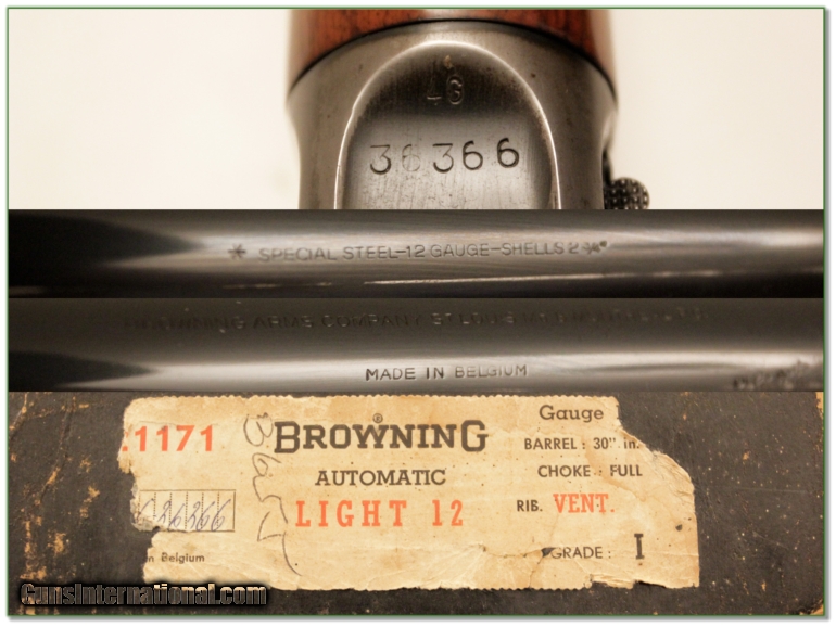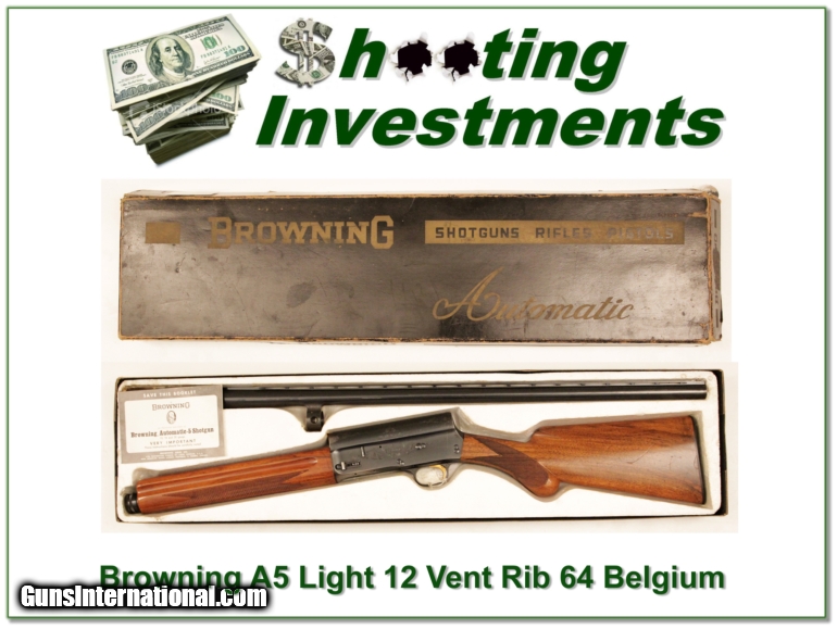 Description: This is a 1964 Belgium made Browning Light 12. It comes in original box with original manual. It has some field use with typical marks as seen. The barrel is a 28in Vent Rib full. This is one you could have restored to perfect or use as is. With the original box it will certainly be a Shooting Investment. I am selling this one on consignment and as such lay-a-way can’t be used. It does of course have the standard 3 day inspection. Shipping and insurance is $30. Please email me with any questions or larger pictures. (I now consign quality firearms only 10%! Let me know if you have any you would like to sell!) [15-0561] Payment: Payment is by Money Order, Cashiers Check or Personal Check. I can now also accept MasterCard and Visa with a 3% convenience fee. PayPal can be used for some items but never firearms. Please let us know if you would like to pay via PayPal. Shipping: The shipping charge will be listed in each description. It is $30 for most guns. Some heavy guns or those insured for over $2000 may be higher. Shipments to Alaska and Hawaii are higher because air shipment is required. Most firearms are shipped within 5 days of receipt of payment. We prefer shipping at the beginning of the week to avoid firearms in transit over weekends. We package all shipments carefully and insure them for the full purchase price, rounded up to the next $100. In the unlikely event that damage occurs, it is important that you save all packaging material for the claims process. Optics are shipped Priority Mail and most other non-firearm shipments are shipped First Class. Returns: Our return policy is simple. If for any reason you are not pleased with your purchase, you may return your item for a refund. The only exception is ammunition, it cannot be returned. It is important to us that you are happy. Guns cannot be fired or dissembled before returning them and must be returned in the same condition as received. Notification of a return must occur with-in 3 days of receipt at your dealer. Shipping, convenience and dealer fees are not refundable and are the responsibility of the buyer. Lay-a-way: If needed, we offer a 60 day lay-a-way option on most firearms. It is 1/3 now, 1/3 in 30 days and 1/3 in 60 days. Lay-a-way firearm sales are final. Consigning your firearms with Shooting Investments: We will help you get top dollar for your firearms. While most local guns shops charge 20% or more, our fee is only 10% with a minimum of $50. At your local gun shop it might take months to sell. Selling on-line provides instant access to thousands of interested buyers. You won’t find any other on-line dealer willing to sell your firearms for only 10% or listing every gun on 4 separate s. Selling through an House typically costs the seller 15% and the buyer an addition 15% (so 30%) and you have to wait several months to sell and longer to receive funds. If properly priced, we will sell your firearms in a week or two. Send us an email or give us a call and we’ll explain how easy it is for you to get top dollar. Trading: We collect guns and usually just trade for guns we want to add to our collections. We often sell guns for others wanting to purchase one of ours. We find this the most fair to both of us. Our Commission is only 10% and we hold the gun you want until yours sells. Please contact us if you want to sell one of yours to buy one of ours. Help for California Buyers: We are happy to ship to California. It is the buyer’s responsibility to make sure any item you buy is legal in your state. We are also happy to help with your purchase of a firearm from someone other than us. If you see a gun you would like to buy but the seller can’t or won’t ship to California we can help. You buy the gun and have it shipped to us. We’ll then ship it to your California dealer. The cost for this service is only $30 + shipping. Let me know if we can help! SOLD |