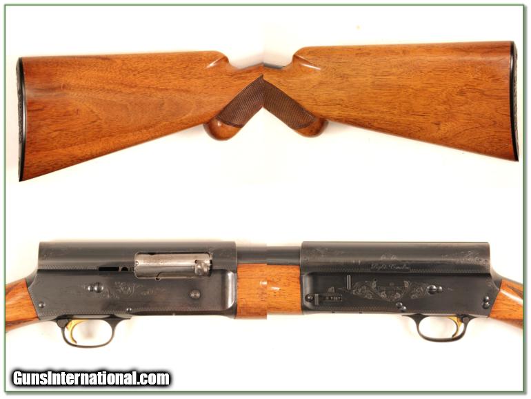 Description: This A5 Light 12 was made in Belgium in 1965. It has the desirable blond wood. The blue has light receiver edge thinning. The barrel is excellent and a 28in matt full. The blond wood is solid with scattered hunting marks but nothing bad. This will make a nice Belgium A5 you can use and expect to go up in value over time. That makes it a Shooting Investment. Shipping and insurance is $30 or $18 more if you want it shipped in a new Plano hard case. Please email me with any questions or larger pictures. (I now consign quality firearms only 10%! Let me know if you have any you would like to sell!) [14-0376] Terms & Conditions Payment: Payment is by Money Order, Cashiers Check or Personal Check. I can now also accept MasterCard and Visa with a 3% convenience fee. PayPal can be used for some items but never firearms. Please let us know if you would like to pay via PayPal. Shipping: The shipping charge will be listed in each description. It is $30 for most guns. Some heavy guns or those insured for over $2000 may be higher. Shipments to Alaska and Hawaii are higher because air shipment is required. Most firearms are shipped within 5 days of receipt of payment. We prefer shipping at the beginning of the week to avoid firearms in transit over weekends. We package all shipments carefully and insure them for the full purchase price, rounded up to the next $100. In the unlikely event that damage occurs, it is important that you save all packaging material for the claims process. Optics are shipped Priority Mail and most other non-firearm shipments are shipped First Class. Returns: Our return policy is simple. If for any reason you are not pleased with your purchase, you may return your item for a refund. The only exception is ammunition, it cannot be returned. It is important to us that you are happy. Guns cannot be fired or dissembled before returning them and must be returned in the same condition as received. Notification of a return must occur with-in 3 days of receipt at your dealer. Shipping, convenience and dealer fees are not refundable and are the responsibility of the buyer. Lay-a-way: If needed, we offer a 60 day lay-a-way option on most firearms. It is 1/3 now, 1/3 in 30 days and 1/3 in 60 days. Lay-a-way firearm sales are final. Consigning your firearms with Shooting Investments: We will help you get top dollar for your firearms. While most local guns shops charge 20% or more, our fee is only 10% with a minimum of $50. At your local gun shop it might take months to sell. Selling on-line provides instant access to thousands of interested buyers. You won’t find any other on-line dealer willing to sell your firearms for only 10% or listing every gun on 4 separate s. Selling through an House typically costs 15% and you have to wait several months to sell and longer to receive funds. If properly priced, we will sell your firearms in a week or two. Send us an email or give us a call and we’ll explain how easy it is for you to get top dollar. Trading: We collect guns and usually just trade for guns we want to add to our collections. We often sell guns for others wanting to purchase one of ours. We find this the most fair to both of us. Our Commission is only 10% and we hold the gun you want until yours sells. Please contact us if you want to sell one of yours to buy one of ours. Help for California Buyers: We are happy to ship to California. It is the buyer’s responsibility to make sure any item you buy is legal in your state. We are also happy to help with your purchase of a firearm from someone other than us. If you see a gun you would like to buy but the seller can’t or won’t ship to California we can help. You buy the gun and have it shipped to us. We’ll then ship it to your California dealer. The cost for this service is only $30 + shipping. Let me know if we can help! SOLD |