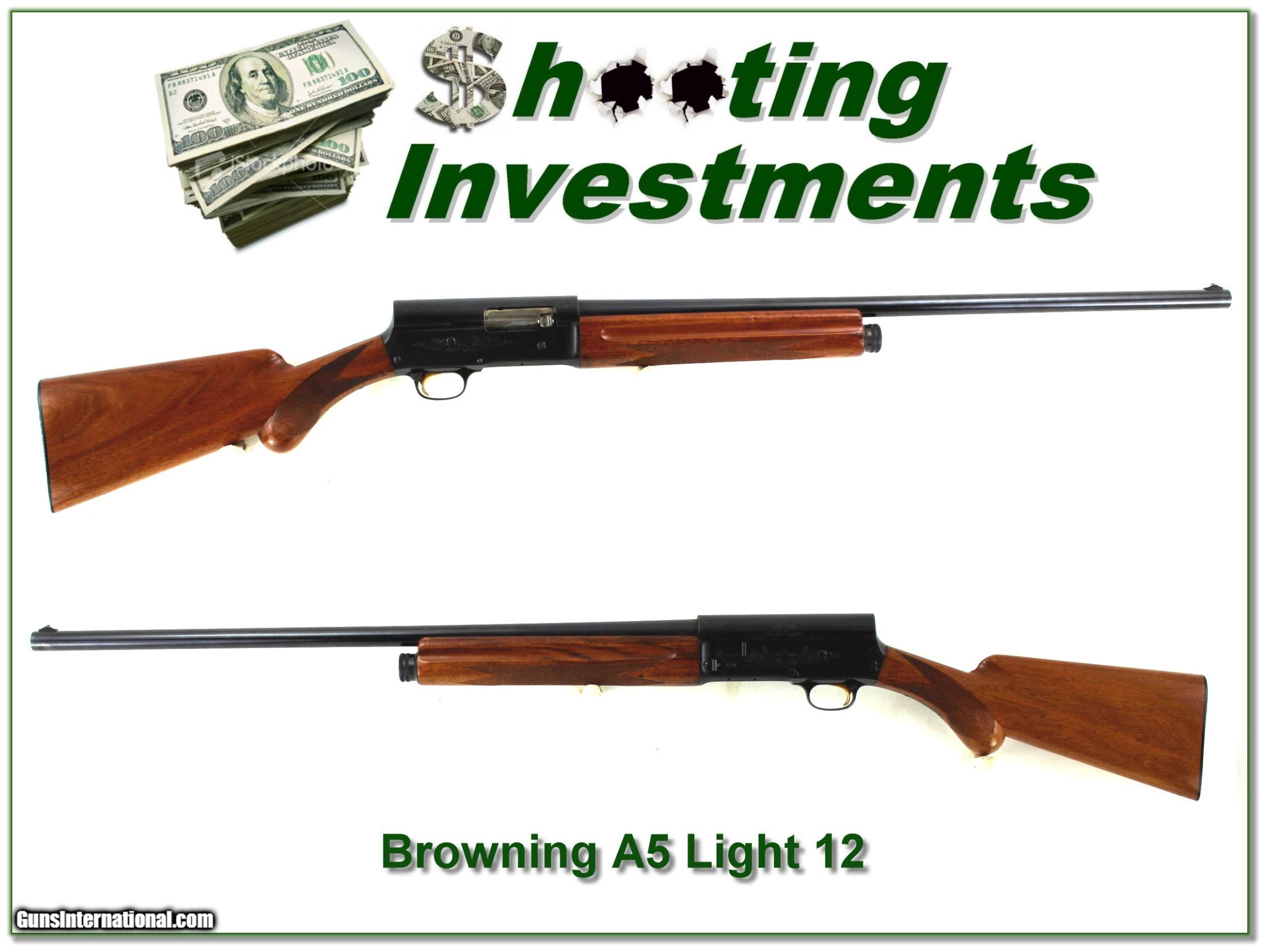 Description: This is a 1965 Belgium made Browning light 12. The metal is in excellent condition with just very light thinning on the carry points and no gold trigger or recoil wear so it couldn’t have fired many rounds. The honey blond colored wood has numerous minor marks from field use and storage. The barrel is a 28in Modified. It will make a classic field gun or could be restored to like new. Shipping and insurance is $49. Please email me with any questions or larger pictures. (Consign your quality firearms with Shooting Investments for only 12%! Let me know if you have any you would like to sell!) 22-0919 Payment: Payment is by Money Order, Cashiers Check or Personal Check. I can now also accept Credit Cards (MasterCard, Visa, Discover & American Express) with a 3% convenience fee. Shipping: The shipping charge will be listed in each description. It is $49 for most long guns. Some heavy guns, over 48in boxes or those insured for over $2000 will be higher. Shipments to Alaska and Hawaii are higher because air shipment is required. Most firearms are shipped on Tuesday and Thursday and usually in 5 days of receipt of payment. We package all shipments carefully and insure them. Optics are shipped Priority Mail and most other non-firearm shipments are shipped First Class. Returns: Our return policy is simple. If for any reason you are not pleased with your purchase, you may return your item for a full refund of purchase price. Ammunition cannot be returned. It is important to us that you are happy. Guns cannot be fired or dissembled before returning them and they must be returned in the same condition as received. Notification of a return must occur with-in 3 days of receipt at your dealer. Shipping, convenience and dealer fees are not refundable and are the responsibility of the buyer. Lay-a-way: If needed, we offer a 60 day lay-a-way option on most firearms. It is 1/3 now, 1/3 in 30 days and 1/3 in 60 days. Lay-a-way firearm sales are final and if not completed the first payment cannot be returned. Consigning your firearms with Shooting Investments: We will help you get top dollar for your firearms. While most local guns shops charge 20% or more, our fee is only 12% with a minimum of $75. At your local gun shop it might take months to sell. Selling on-line provides instant access to thousands of interested buyers. You won’t find any other on-line dealer willing to sell your firearms for only 12% or listing every gun on 3 separate s. Selling through an House typically costs the seller 15% and the buyer an addition 15% (so 30%) and you have to wait several months to sell and longer to receive funds. If properly priced, we will sell your firearms in a few weeks. Send us an email or give us a call and we’ll explain how easy it is for you to get top dollar. Trading: Trading for use is really just buying your gun to re-sell. If you have a gun you want to trade, please email a picture and we will let you know what we can give or it. You will always get more if we sell it for you on consignment. Help for California Buyers: We are happy to ship to California. It is the buyer’s responsibility to make sure any item you buy is legal in your state. We are also happy to help with your purchase of a firearm from someone other than us. If you see a gun you would like to buy but the seller can’t or won’t ship to California they can ship to use and we’ll then ship it to your California dealer. The cost for this service is only $30 + shipping. Let us know if we can help! SOLD |