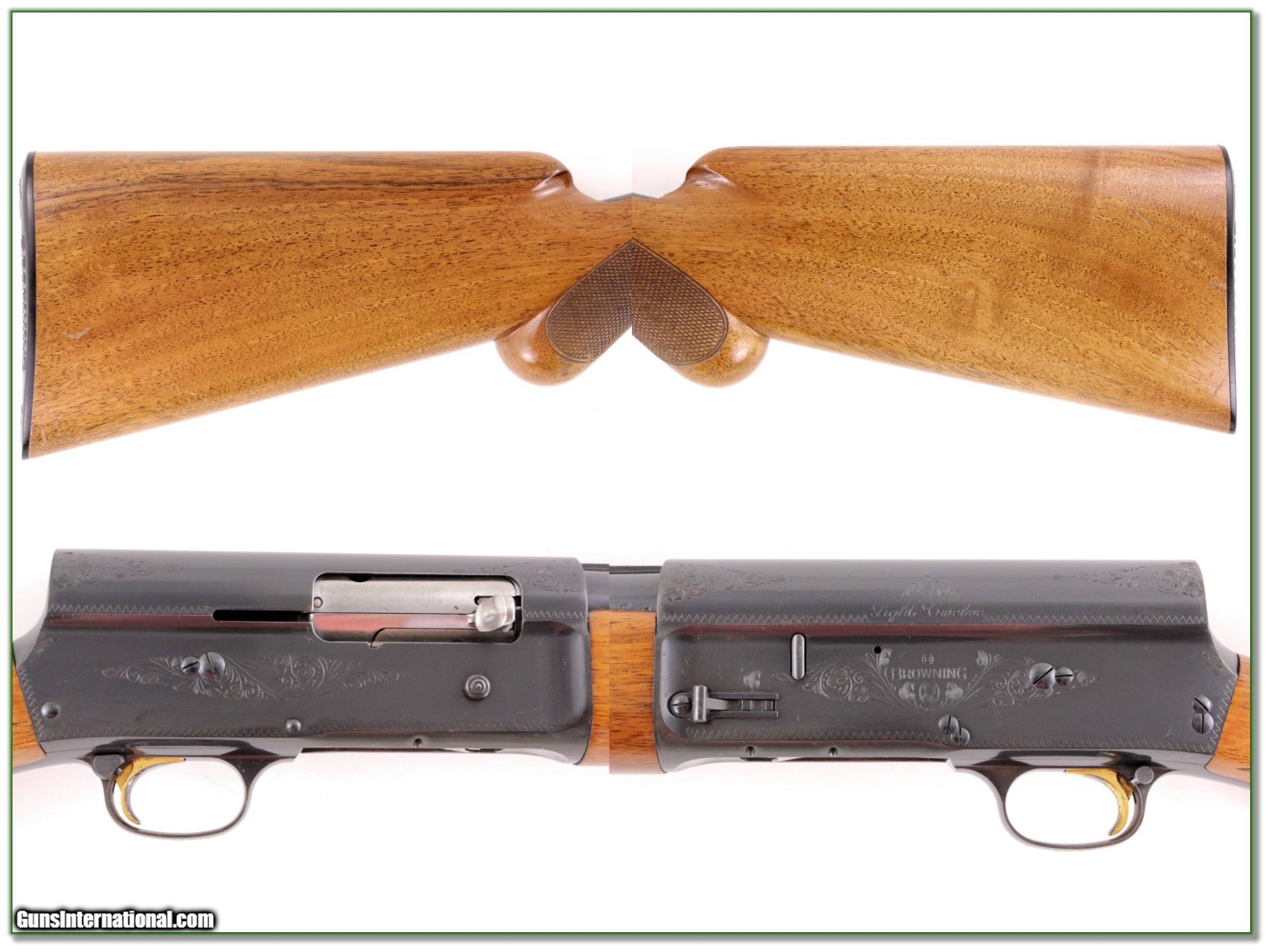 Description: This is a 1966 Belgium made Browning A5 Light 12. It is the last year of the Belgium round knobs. This one has very nice blond wood and a 28in Vent Rib Modified barrel. It is in excellent lightly used condition. I see on edge wear on the receiver and the wood has light scattered handing marks. It will make a classic field gun and they just don’t make them like this anymore! Shipping with insurance is $39. Please email me with any questions or larger pictures. (Consign your quality firearms with Shooting Investments for only 12%! Let me know if you have any you would like to sell!) 18-0863 Payment: Payment is by Money Order, Cashiers Check or Personal Check. I can now also accept MasterCard and Visa with a 3% convenience fee. PayPal can be used for some items but never firearms. Please let us know if you would like to pay via PayPal. Shipping: The shipping charge will be listed in each description. It is $39 for most firearms. Some heavy guns or those insured for over $2000 will be higher. Shipments to Alaska and Hawaii are higher because air shipment is required. Most firearms are shipped on Tuesday and Thursday and usually in 5 days of receipt of payment. We package all shipments carefully and insure them. Optics are shipped Priority Mail and most other non-firearm shipments are shipped First Class. Returns: Our return policy is simple. If for any reason you are not pleased with your purchase, you may return your item for a full refund of purchase price. Ammunition cannot be returned. It is important to us that you are happy. Guns cannot be fired or dissembled before returning them and they must be returned in the same condition as received. Notification of a return must occur with-in 3 days of receipt at your dealer. Shipping, convenience and dealer fees are not refundable and are the responsibility of the buyer. Lay-a-way: If needed, we offer a 60 day lay-a-way option on most firearms. It is 1/3 now, 1/3 in 30 days and 1/3 in 60 days. Lay-a-way firearm sales are final and if not completed the first payment cannot be returned. Consigning your firearms with Shooting Investments: We will help you get top dollar for your firearms. While most local guns shops charge 20% or more, our fee is only 12% with a minimum of $75. At your local gun shop it might take months to sell. Selling on-line provides instant access to thousands of interested buyers. You won’t find any other on-line dealer willing to sell your firearms for only 12% or listing every gun on 3 separate s. Selling through an House typically costs the seller 15% and the buyer an addition 15% (so 30%) and you have to wait several months to sell and longer to receive funds. If properly priced, we will sell your firearms in a few weeks. Send us an email or give us a call and we’ll explain how easy it is for you to get top dollar. Trading: Trading for use is really just buying your gun to re-sell. If you have a gun you want to trade, please email a picture and we will let you know what we can give or it. You will always get more if we sell it for you on consignment. Help for California Buyers: We are happy to ship to California. It is the buyer’s responsibility to make sure any item you buy is legal in your state. We are also happy to help with your purchase of a firearm from someone other than us. If you see a gun you would like to buy but the seller can’t or won’t ship to California they can ship to use and we’ll then ship it to your California dealer. The cost for this service is only $30 + shipping. Let us know if we can help! SOLD |