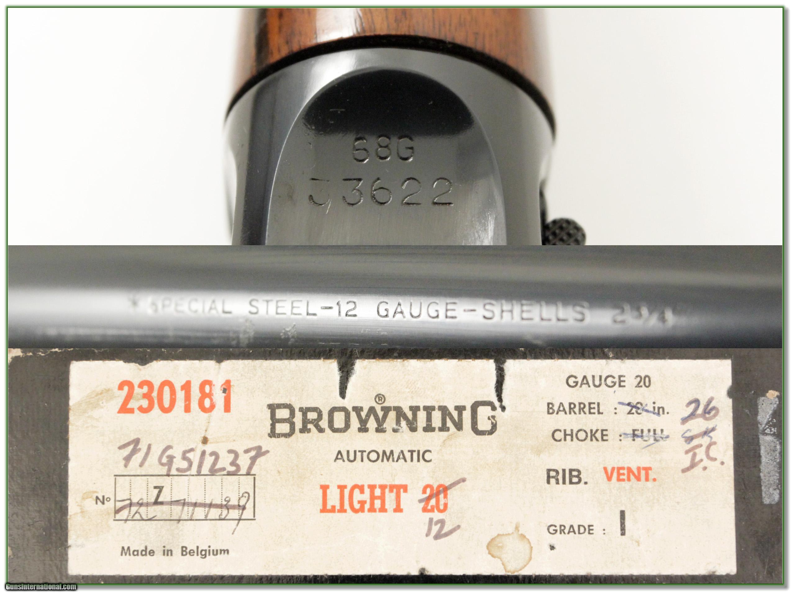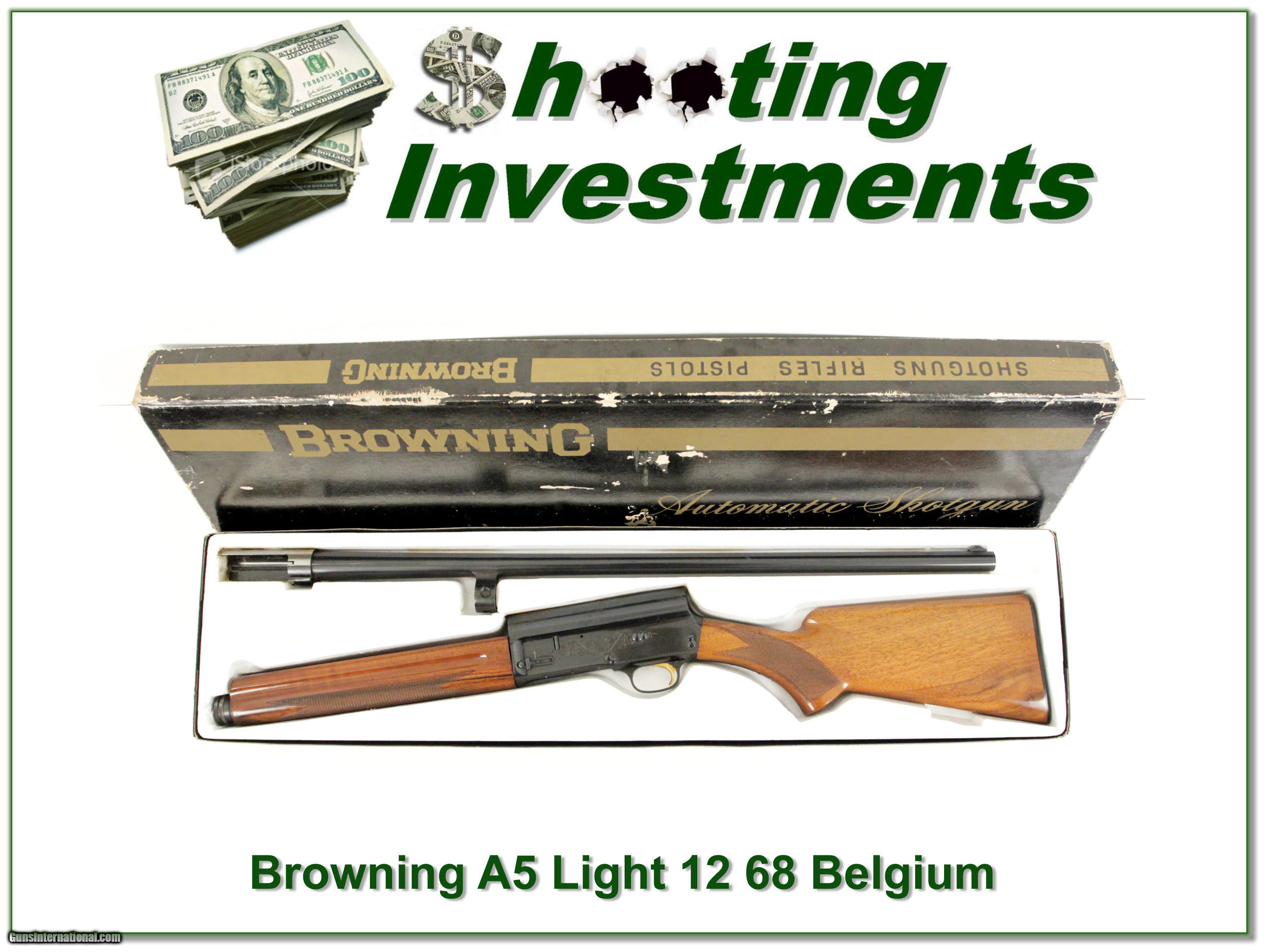 Description: This Browning Light 12 was made in Belgium in 1968. It has nice honey colored wood. The blue is excellent and near new with no edge or recoil wear. The wood has only a few minor marks. It comes in a Belgium Browning box but as seen on label it was for a 20 Gauge. The barrel is a 28in full and looks new. This is one you can use and still expect it to increase in value over time. That makes it a real Shooting Investment! Shipping and insurance is $35 or $15 more if you want it shipped in a new Plano hard case. Please email me with any questions or larger pictures. (I now consign quality firearms only 10%! Let me know if you have any you would like to sell!) 17-0335 Payment: Payment is by Money Order, Cashiers Check or Personal Check. I can now also accept MasterCard and Visa with a 3% convenience fee. PayPal can be used for some items but never firearms. Please let us know if you would like to pay via PayPal. Shipping: The shipping charge will be listed in each description. It is $35 for most guns. Some heavy guns or those insured for over $2000 will be higher. Shipments to Alaska and Hawaii are higher because air shipment is required. Most firearms are shipped within 5 days of receipt of payment. We prefer shipping at the beginning of the week to avoid firearms in transit over weekends. We package all shipments carefully and insure them for the full purchase price, rounded up to the next $100. In the unlikely event that damage occurs, it is important that you save all packaging material for the claims process. Optics are shipped Priority Mail and most other non-firearm shipments are shipped First Class. Returns: Our return policy is simple. If for any reason you are not pleased with your purchase, you may return your item for a refund. The only exception is ammunition, it cannot be returned. It is important to us that you are happy. Guns cannot be fired or dissembled before returning them and must be returned in the same condition as received. Notification of a return must occur with-in 3 days of receipt at your dealer. Shipping, convenience and dealer fees are not refundable and are the responsibility of the buyer. Lay-a-way: If needed, we offer a 60 day lay-a-way option on most firearms. It is 1/3 now, 1/3 in 30 days and 1/3 in 60 days. Lay-a-way firearm sales are final. Consigning your firearms with Shooting Investments: We will help you get top dollar for your firearms. While most local guns shops charge 20% or more, our fee is only 10% with a minimum of $50. At your local gun shop it might take months to sell. Selling on-line provides instant access to thousands of interested buyers. You won’t find any other on-line dealer willing to sell your firearms for only 10% or listing every gun on 4 separate s. Selling through an House typically costs the seller 15% and the buyer an addition 15% (so 30%) and you have to wait several months to sell and longer to receive funds. If properly priced, we will sell your firearms in a week or two. Send us an email or give us a call and we’ll explain how easy it is for you to get top dollar. Trading: We collect guns and usually just trade for guns we want to add to our collections. We often sell guns for others wanting to purchase one of ours. We find this the most fair to both of us. Our Commission is only 10% and we hold the gun you want until yours sells. Please contact us if you want to sell one of yours to buy one of ours. Help for California Buyers: We are happy to ship to California. It is the buyer’s responsibility to make sure any item you buy is legal in your state. We are also happy to help with your purchase of a firearm from someone other than us. If you see a gun you would like to buy but the seller can’t or won’t ship to California we can help. You buy the gun and have it shipped to us. We’ll then ship it to your California dealer. The cost for this service is only $30 + shipping. Let me know if we can help! SOLD |