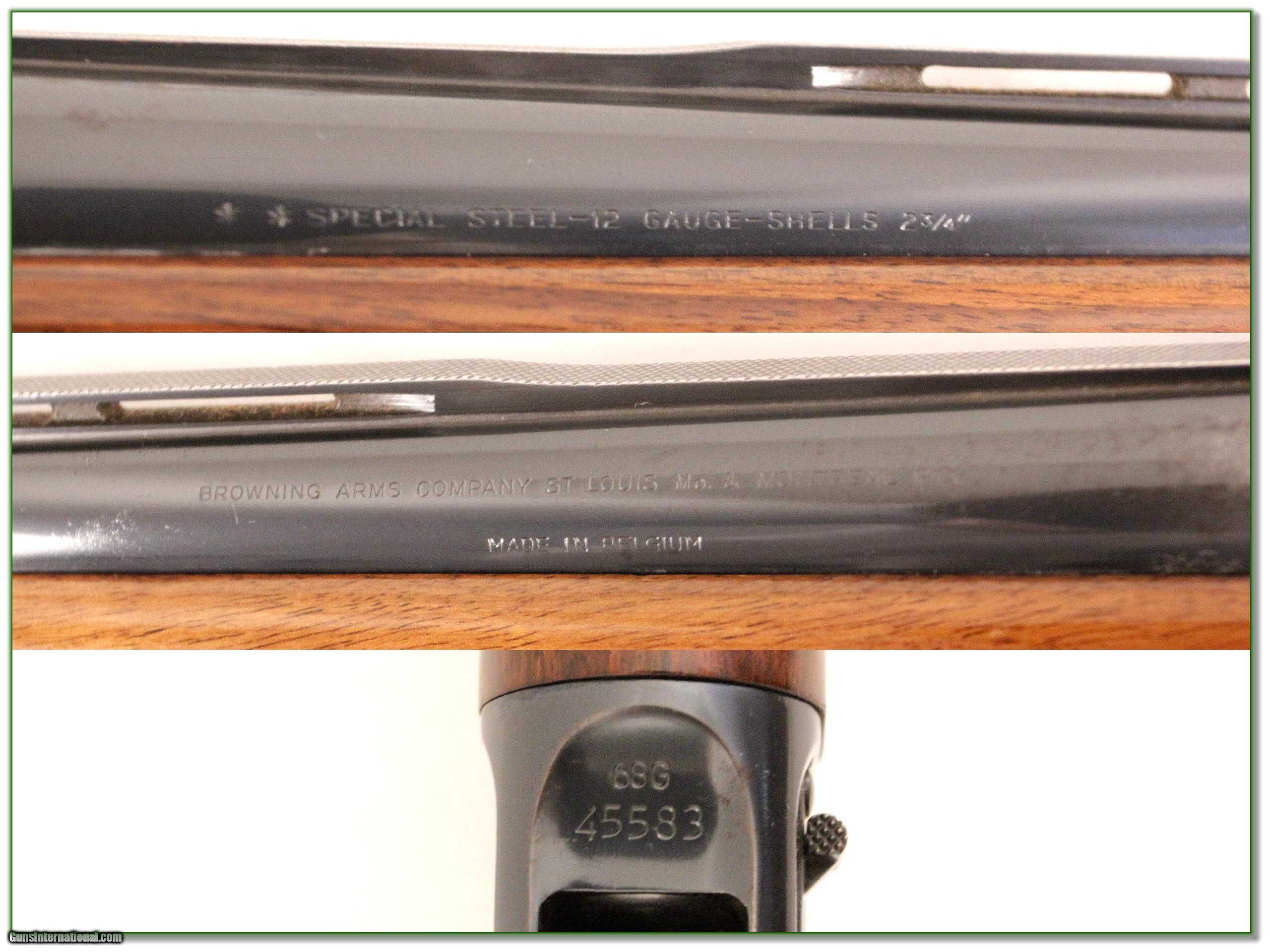 Description: This is a nice 1968 Belgium Made Browning Light 12. The metal is excellent showing only light use. The barrel is a vent rib 38in Modified. The wood has only a few minor marks. It will make a classic hunting gun and is one you can use yet still expect to increase in value over time. That makes it a Shooting Investment! Shipping and insurance is $35 or $15 more if you want it shipped in a new Plano hard case. Please email me with any questions or larger pictures. (I now consign quality firearms only 10%! Let me know if you have any you would like to sell!) [16-1281] Payment: Payment is by Money Order, Cashiers Check or Personal Check. I can now also accept MasterCard and Visa with a 3% convenience fee. PayPal can be used for some items but never firearms. Please let us know if you would like to pay via PayPal. Shipping: The shipping charge will be listed in each description. It is $35 for most guns. Some heavy guns or those insured for over $2000 will be higher. Shipments to Alaska and Hawaii are higher because air shipment is required. Most firearms are shipped within 5 days of receipt of payment. We prefer shipping at the beginning of the week to avoid firearms in transit over weekends. We package all shipments carefully and insure them for the full purchase price, rounded up to the next $100. In the unlikely event that damage occurs, it is important that you save all packaging material for the claims process. Optics are shipped Priority Mail and most other non-firearm shipments are shipped First Class. Returns: Our return policy is simple. If for any reason you are not pleased with your purchase, you may return your item for a refund. The only exception is ammunition, it cannot be returned. It is important to us that you are happy. Guns cannot be fired or dissembled before returning them and must be returned in the same condition as received. Notification of a return must occur with-in 3 days of receipt at your dealer. Shipping, convenience and dealer fees are not refundable and are the responsibility of the buyer. Lay-a-way: If needed, we offer a 60 day lay-a-way option on most firearms. It is 1/3 now, 1/3 in 30 days and 1/3 in 60 days. Lay-a-way firearm sales are final. Consigning your firearms with Shooting Investments: We will help you get top dollar for your firearms. While most local guns shops charge 20% or more, our fee is only 10% with a minimum of $50. At your local gun shop it might take months to sell. Selling on-line provides instant access to thousands of interested buyers. You won’t find any other on-line dealer willing to sell your firearms for only 10% or listing every gun on 4 separate s. Selling through an House typically costs the seller 15% and the buyer an addition 15% (so 30%) and you have to wait several months to sell and longer to receive funds. If properly priced, we will sell your firearms in a week or two. Send us an email or give us a call and we’ll explain how easy it is for you to get top dollar. Trading: We collect guns and usually just trade for guns we want to add to our collections. We often sell guns for others wanting to purchase one of ours. We find this the most fair to both of us. Our Commission is only 10% and we hold the gun you want until yours sells. Please contact us if you want to sell one of yours to buy one of ours. Help for California Buyers: We are happy to ship to California. It is the buyer’s responsibility to make sure any item you buy is legal in your state. We are also happy to help with your purchase of a firearm from someone other than us. If you see a gun you would like to buy but the seller can’t or won’t ship to California we can help. You buy the gun and have it shipped to us. We’ll then ship it to your California dealer. The cost for this service is only $30 + shipping. Let me know if we can help! SOLD |