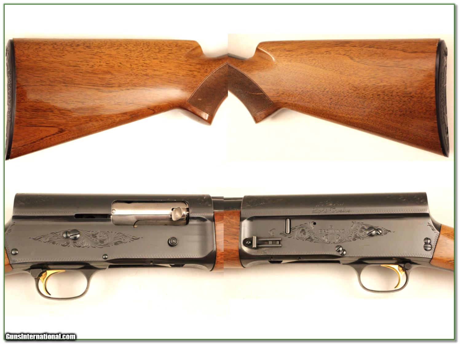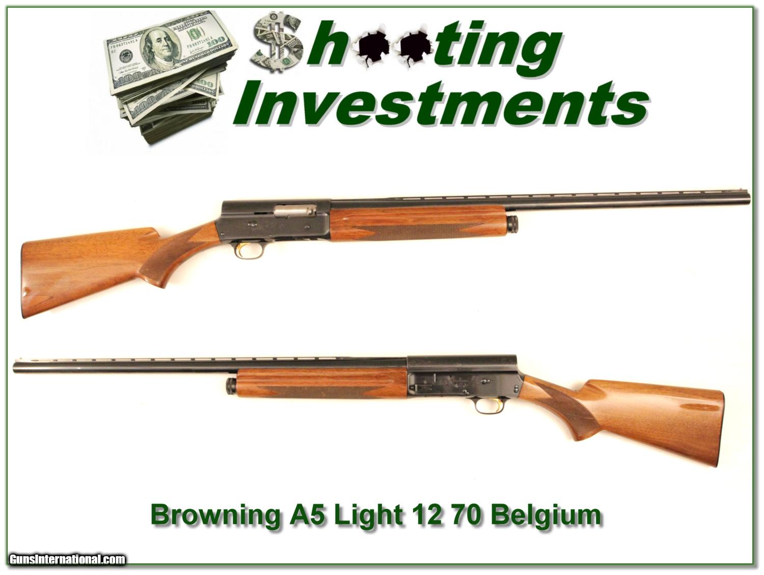 Description: This Browning A5 was made in Belgium in 1970. It has very nice honey colored wood with only a couple minor marks. The blue is also excellent with only very light sharp edge wear under the receiver. It has a 28in Vent Rib full barrel. It will make a classic hunting gun and is one you can use yet still expect to increase in value over time. Shipping and insurance is $30 or $18 more if you want it shipped in a new Plano hard case. Please email me with any questions or larger pictures. (I now consign quality firearms only 10%! Let me know if you have any you would like to sell!) [15-0883] Payment: Payment is by Money Order, Cashiers Check or Personal Check. I can now also accept MasterCard and Visa with a 3% convenience fee. PayPal can be used for some items but never firearms. Please let us know if you would like to pay via PayPal. Shipping: The shipping charge will be listed in each description. It is $30 for most guns. Some heavy guns or those insured for over $2000 may be higher. Shipments to Alaska and Hawaii are higher because air shipment is required. Most firearms are shipped within 5 days of receipt of payment. We prefer shipping at the beginning of the week to avoid firearms in transit over weekends. We package all shipments carefully and insure them for the full purchase price, rounded up to the next $100. In the unlikely event that damage occurs, it is important that you save all packaging material for the claims process. Optics are shipped Priority Mail and most other non-firearm shipments are shipped First Class. Returns: Our return policy is simple. If for any reason you are not pleased with your purchase, you may return your item for a refund. The only exception is ammunition, it cannot be returned. It is important to us that you are happy. Guns cannot be fired or dissembled before returning them and must be returned in the same condition as received. Notification of a return must occur with-in 3 days of receipt at your dealer. Shipping, convenience and dealer fees are not refundable and are the responsibility of the buyer. Lay-a-way: If needed, we offer a 60 day lay-a-way option on most firearms. It is 1/3 now, 1/3 in 30 days and 1/3 in 60 days. Lay-a-way firearm sales are final. Consigning your firearms with Shooting Investments: We will help you get top dollar for your firearms. While most local guns shops charge 20% or more, our fee is only 10% with a minimum of $50. At your local gun shop it might take months to sell. Selling on-line provides instant access to thousands of interested buyers. You won’t find any other on-line dealer willing to sell your firearms for only 10% or listing every gun on 4 separate s. Selling through an House typically costs the seller 15% and the buyer an addition 15% (so 30%) and you have to wait several months to sell and longer to receive funds. If properly priced, we will sell your firearms in a week or two. Send us an email or give us a call and we’ll explain how easy it is for you to get top dollar. Trading: We collect guns and usually just trade for guns we want to add to our collections. We often sell guns for others wanting to purchase one of ours. We find this the most fair to both of us. Our Commission is only 10% and we hold the gun you want until yours sells. Please contact us if you want to sell one of yours to buy one of ours. Help for California Buyers: We are happy to ship to California. It is the buyer’s responsibility to make sure any item you buy is legal in your state. We are also happy to help with your purchase of a firearm from someone other than us. If you see a gun you would like to buy but the seller can’t or won’t ship to California we can help. You buy the gun and have it shipped to us. We’ll then ship it to your California dealer. The cost for this service is only $30 + shipping. Let me know if we can help! SOLD |