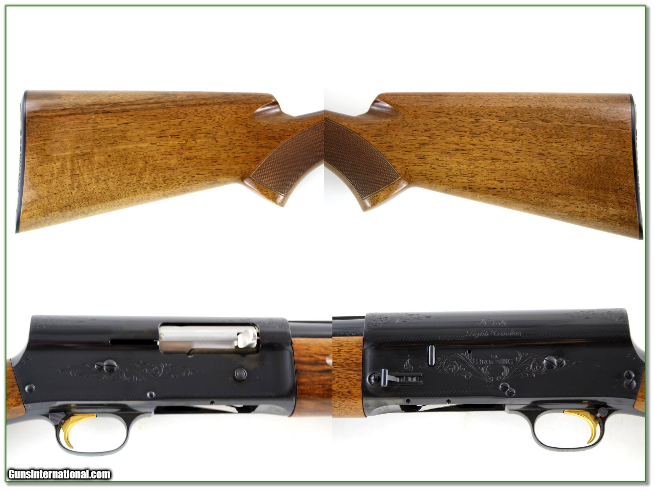 Description: This is a like new condition 1970 Belgium made Browning A5 Light 12. Frm the bolt face it looks to be unfired. It has a Vent Rib 28in Modifed barrel. I see no marks or signs if use! I am selling this one on consignment and as such lay-a-way can’t be used. It does of course have the standard 3-day inspection. Shipping and insurance is $39. Please email me with any questions or larger pictures. (Consign your quality firearms with Shooting Investments for only 12%! Let me know if you have any you would like to sell!) 20-0085 Payment: Payment is by Money Order, Cashiers Check or Personal Check. I can now also accept MasterCard and Visa with a 3% convenience fee. PayPal can be used for some items but never firearms. Please let us know if you would like to pay via PayPal. Shipping: The shipping charge will be listed in each description. It is $39 for most guns. Some heavy guns or those insured for over $2000 will be higher. Shipments to Alaska and Hawaii are higher because air shipment is required. Most firearms are shipped on Tuesday and Thursday and usually in 5 days of receipt of payment. We package all shipments carefully and insure them. Returns: Our return policy is simple. If for any reason you are not pleased with your purchase, you may return your item for a full refund of purchase price. Ammunition cannot be returned. It is important to us that you are happy. Guns cannot be fired or dissembled before returning them and they must be returned in the same condition as received. Notification of a return must occur with-in 3 days of receipt at your dealer. Shipping, convenience and dealer fees are not refundable and are the responsibility of the buyer. Lay-a-way: If needed, we offer a 60 day lay-a-way option on most firearms. It is 1/3 now, 1/3 in 30 days and 1/3 in 60 days. Lay-a-way firearm sales are final and if not completed the first payment cannot be returned. Consigning your firearms with Shooting Investments: We will help you get top dollar for your firearms. While most local guns shops charge 20% or more, our fee is only 12% with a minimum of $75. At your local gun shop it might take months to sell. Selling on-line provides instant access to thousands of interested buyers. You won’t find any other on-line dealer willing to sell your firearms for only 12% or listing every gun on 3 separate s. Selling through an House typically costs the seller 15% and the buyer an addition 15% (so 30%) and you have to wait several months to sell and longer to receive funds. If properly priced, we will sell your firearms in a few weeks. Send us an email or give us a call and we’ll explain how easy it is for you to get top dollar. Trading: Trading for use is really just buying your gun to re-sell. If you have a gun you want to trade, please email a picture and we will let you know what we can give or it. You will always get more if we sell it for you on consignment. Help for California Buyers: We are happy to ship to California. It is the buyer’s responsibility to make sure any item you buy is legal in your state. We are also happy to help with your purchase of a firearm from someone other than us. If you see a gun you would like to buy but the seller can’t or won’t ship to California they can ship to use and we’ll then ship it to your California dealer. The cost for this service is only $30 + shipping. Let us know if we can help! SOLD |